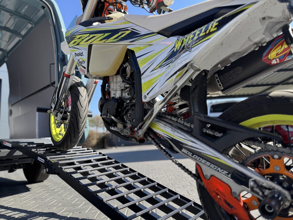 Zabudowa została zaprojektowana z myślą o intensywnym użytkowaniu oraz bezpiecznym transporcie motocykla. Postawiliśmy na trwałość, funkcjonalność i łatwość utrzymania czystości.