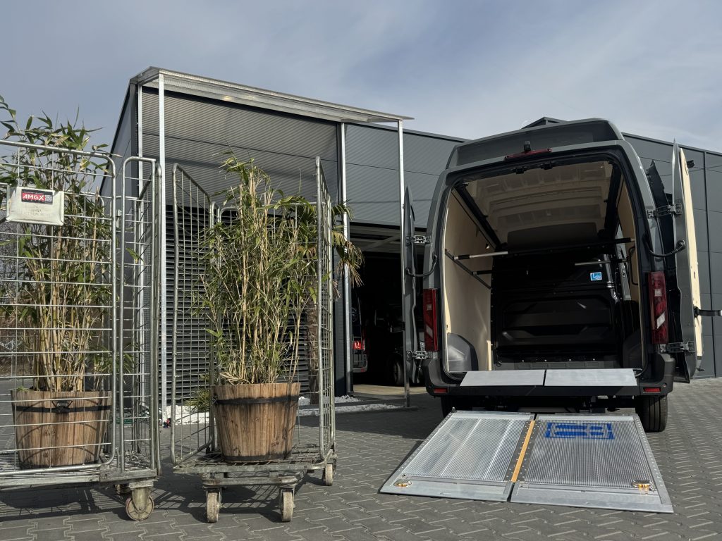 Zabudowa Renault Master L3H2 przystosowana do przewozu kwiatów. Solidna podłoga, oświetlenie LED, listwy airline oraz rampa załadunkowa ułatwiająca transport wózków.