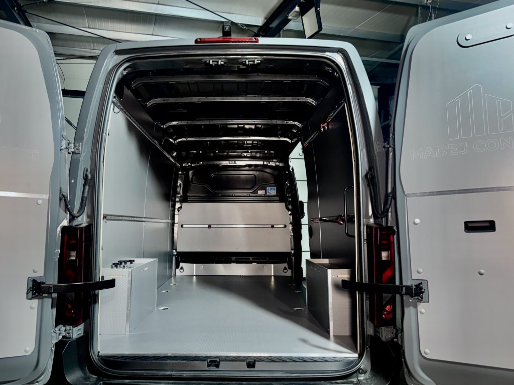 Zabudowa została zaprojektowana tak, aby w pełni wykorzystać przestrzeń oraz skutecznie zabezpieczyć karoserię. Całość pokrywa wnętrze pojazdu od podłogi aż po sufit.