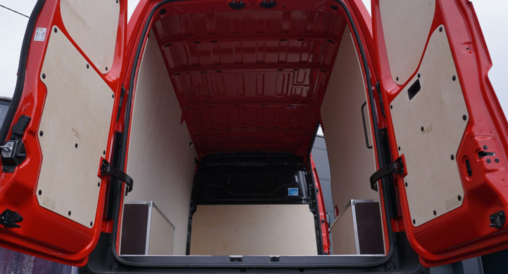 Zcezpieczona przestrzeń ładunkowa dzięki zabudowie z ekologicznej sklejki liściastej. Zabezpieczone ściany i wzmocnione nadkola z aluminiowymi okuciami to niezawodne rozwiązanie dla Renault Master L3H2.