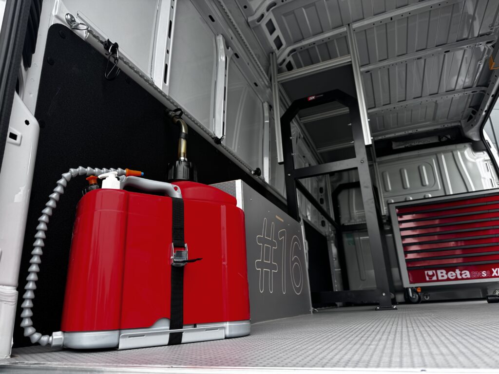 Samochód został wyposażony w zaawansowany system mocowania ładunku. Listwy mocujące zamontowane na ścianach bocznych oraz grodziowej, wykonane z wzmocnionego aluminium AIRLINE WISTRA, zapewniają stabilność ładunku podczas transportu. Specjalny stojak w podłodze umożliwia bezpieczny przewóz motocykla, eliminując ryzyko przesunięcia się pojazdu podczas jazdy.