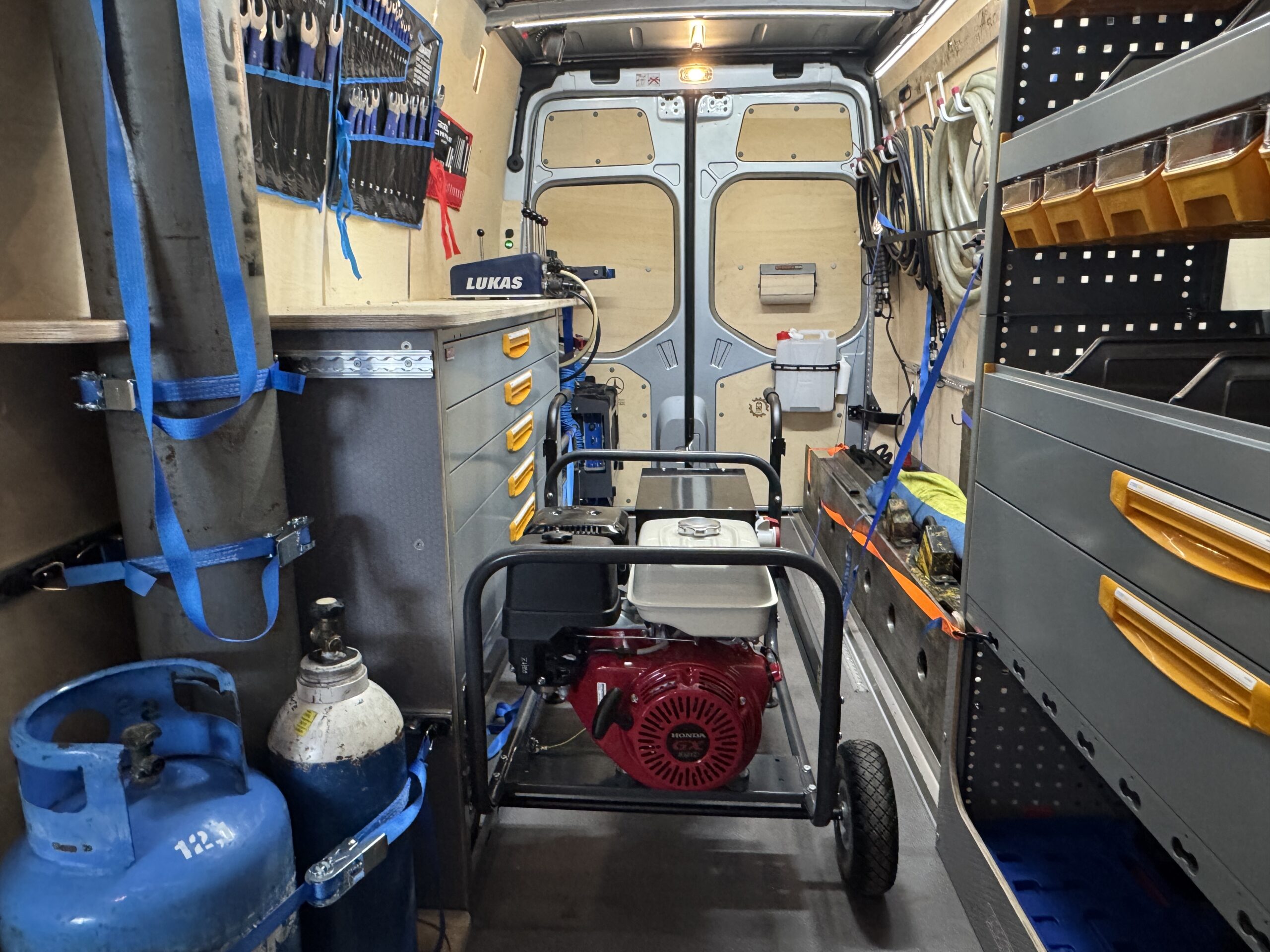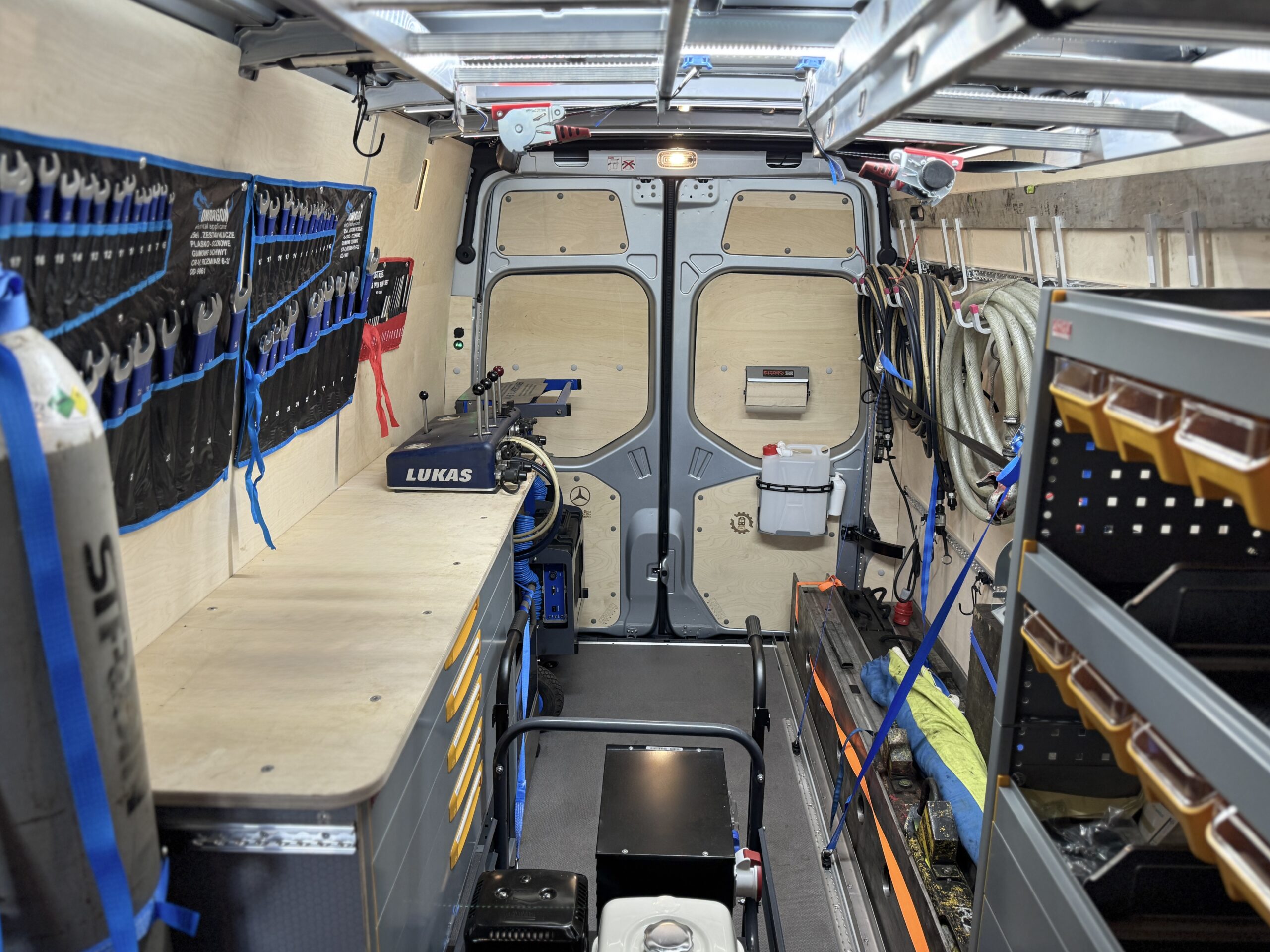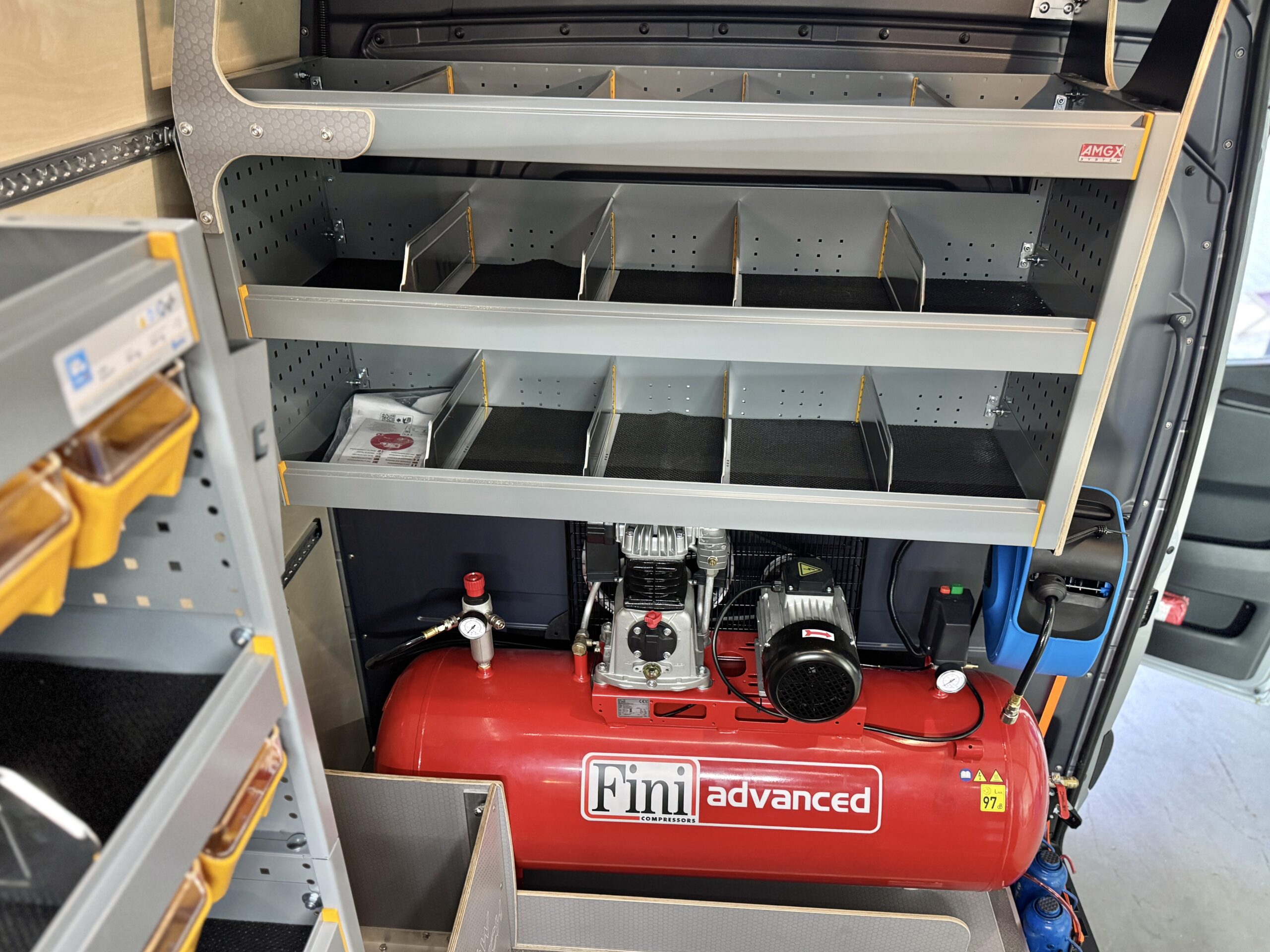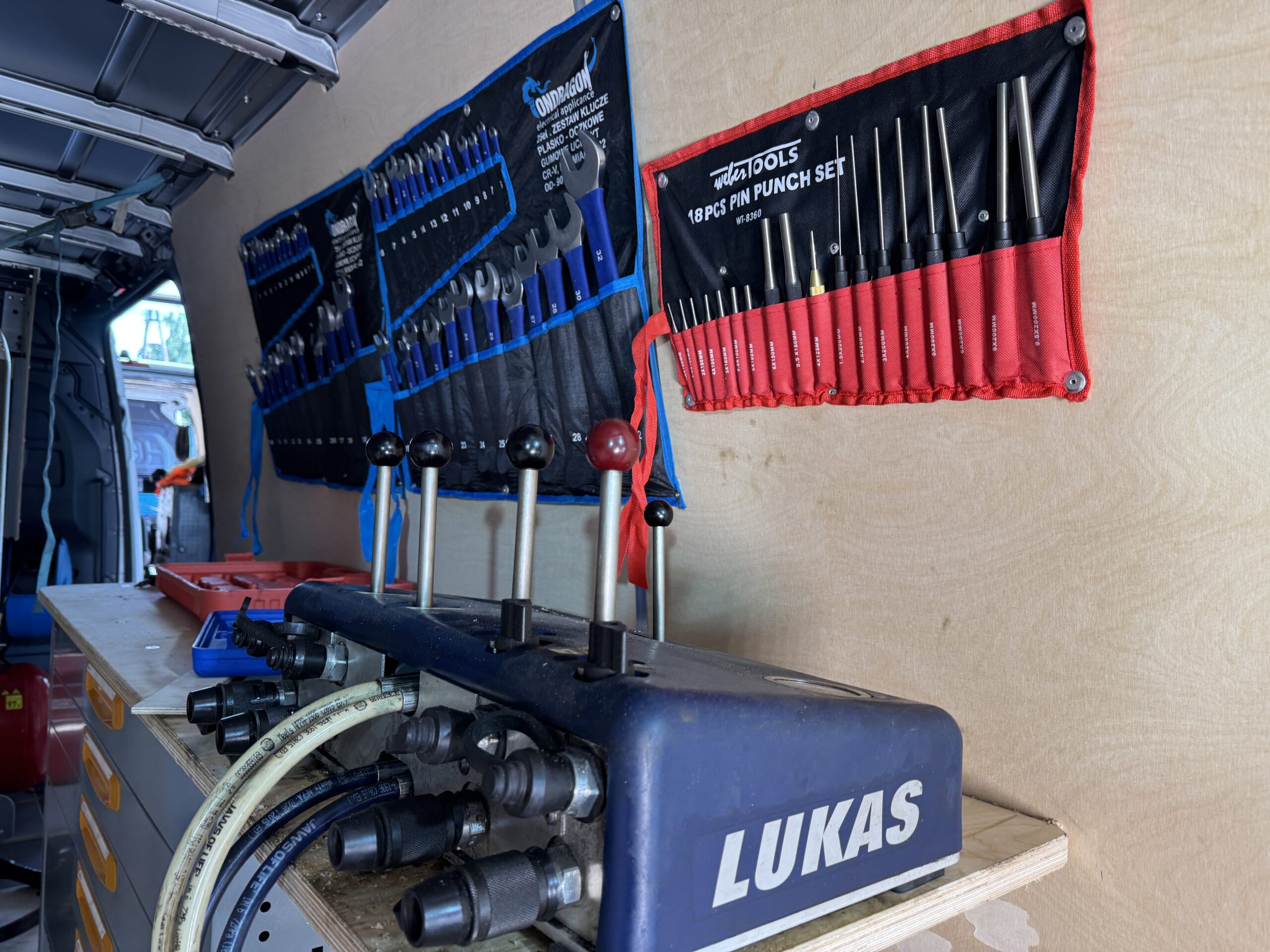 Zamontowaliśmy regały oraz blat roboczy renomowanej firmy StoreVan, które wyróżniają się wysoką jakością wykonania i funkcjonalnością. Dzięki nim możliwe jest wygodne zorganizowanie różnego rodzaju narzędzi.