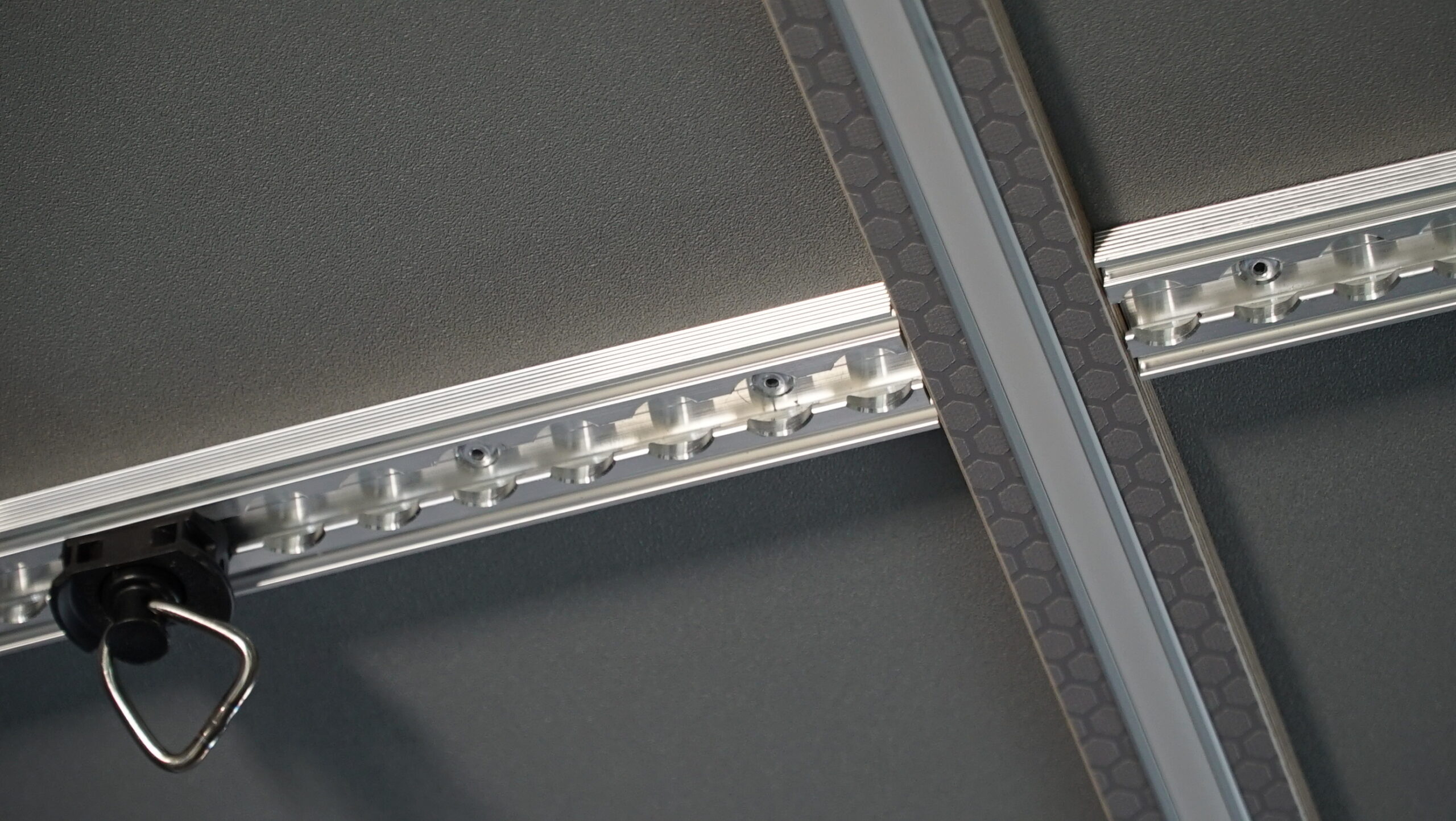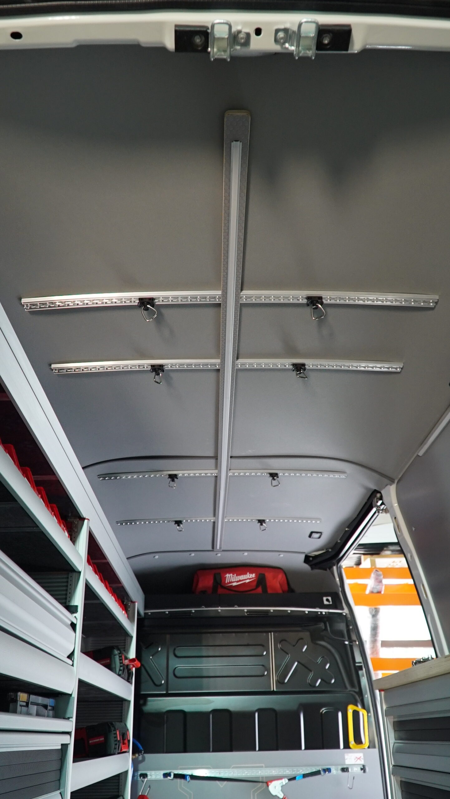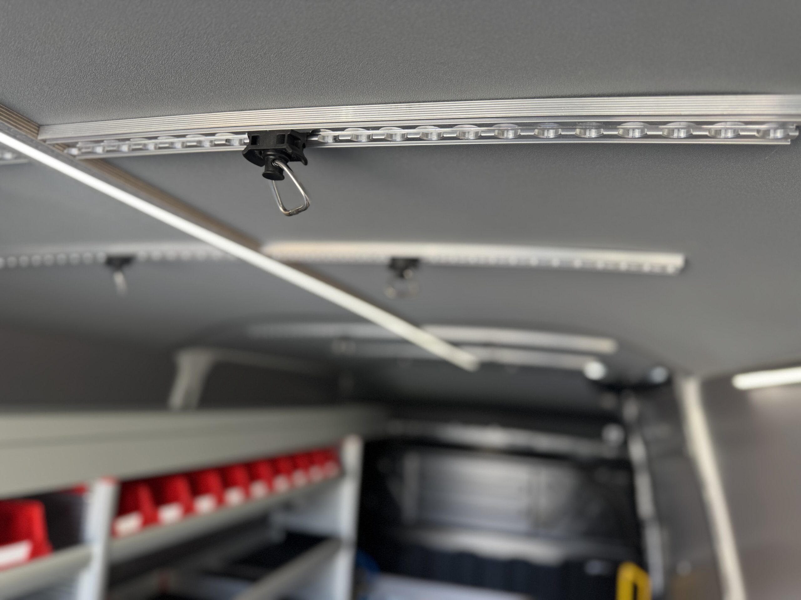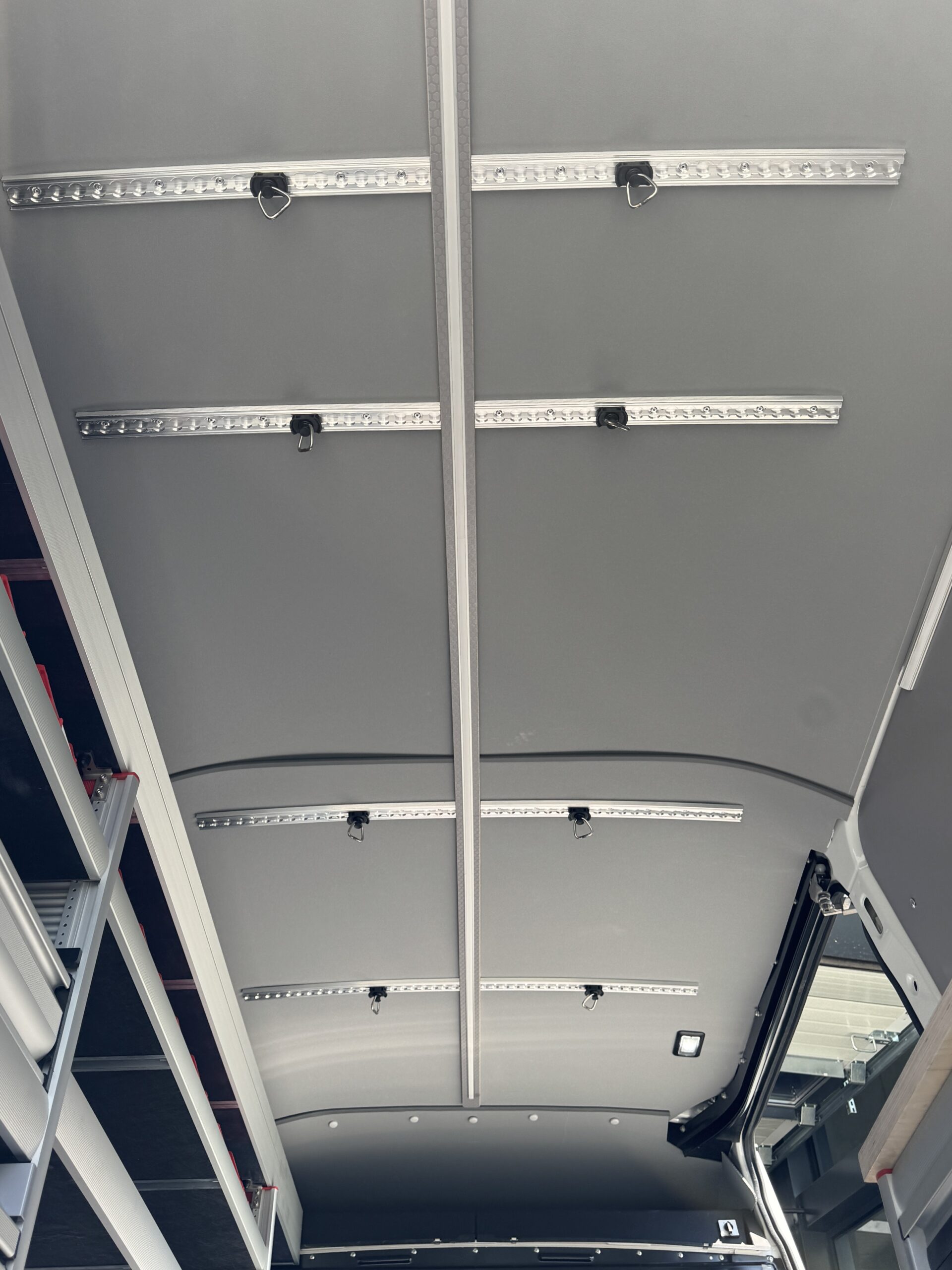 W suficie zamontowaliśmy oświetlenie LED oraz 4 listwy airline z certyfikowanymi uchwytami WISTRA. Dodatkowa listwa została zamontowana na ścianie grodziowej. W zestawie znajduje się także pas automatyczny wpinany w listwę airline. Zamontowaliśmy również 2 haki na ubrania – praktyczne rozwiązanie na odzież roboczą.