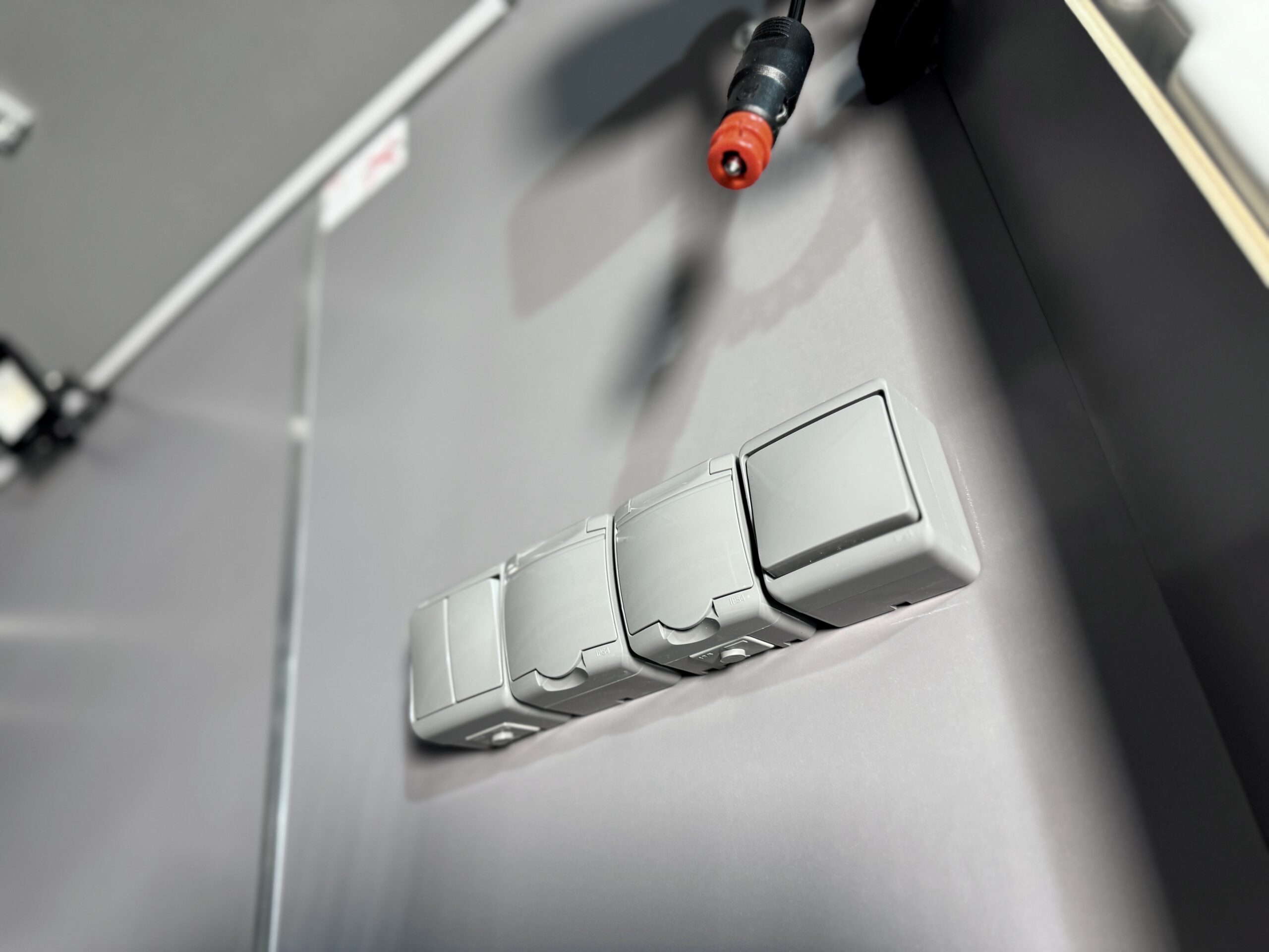 2 włączniki oraz 2 gniazda zasilania 230V nad blatem roboczym