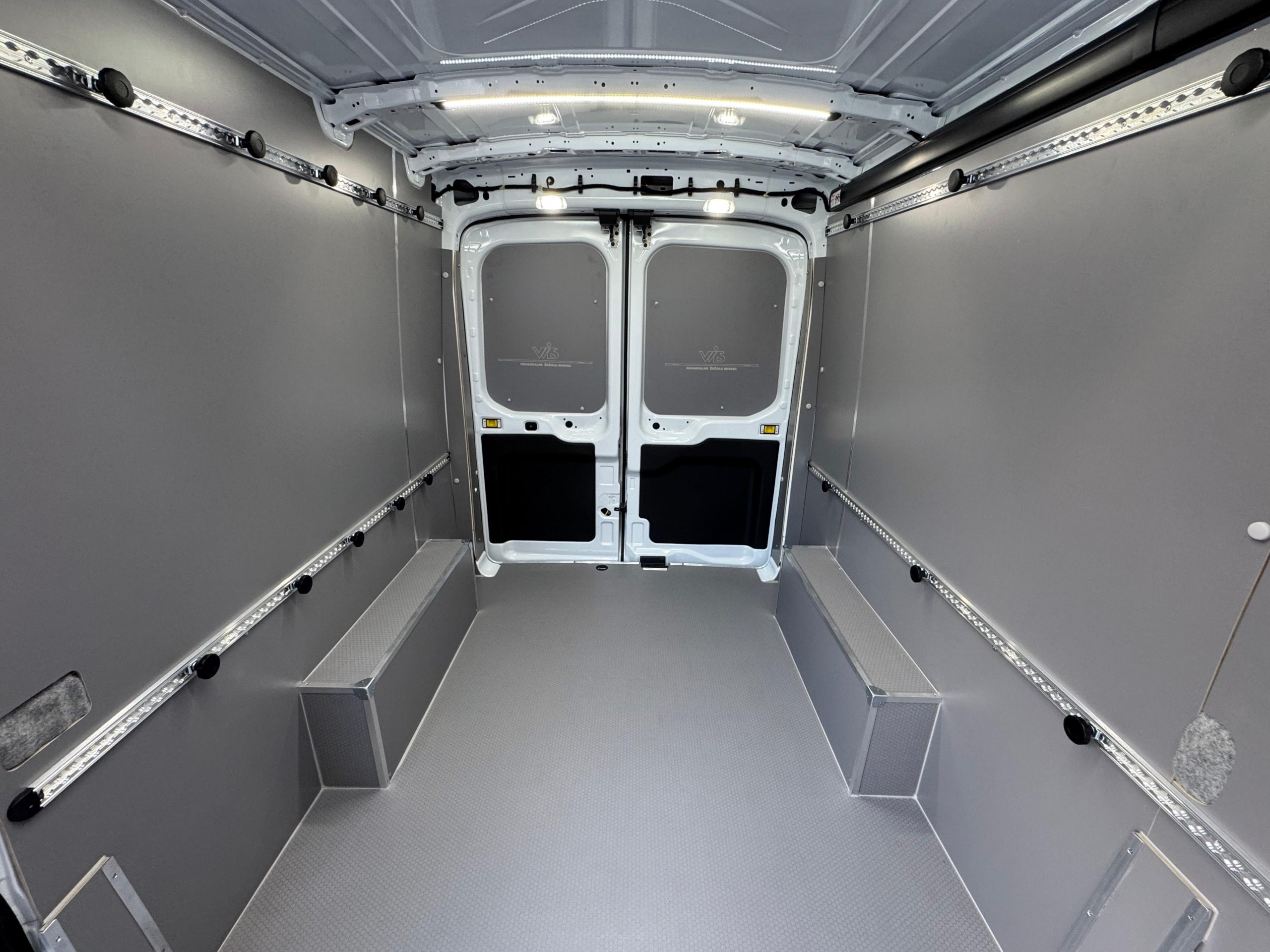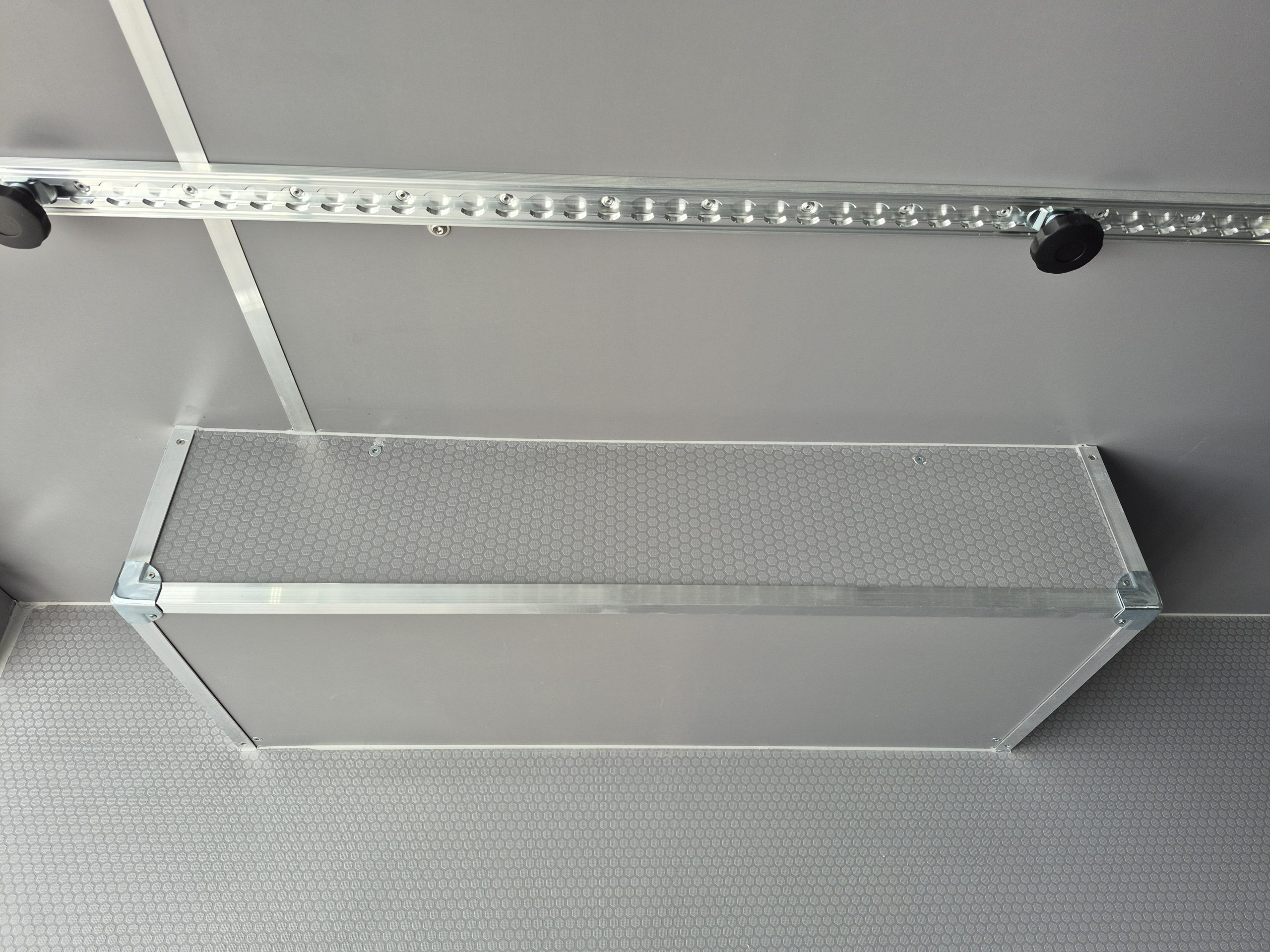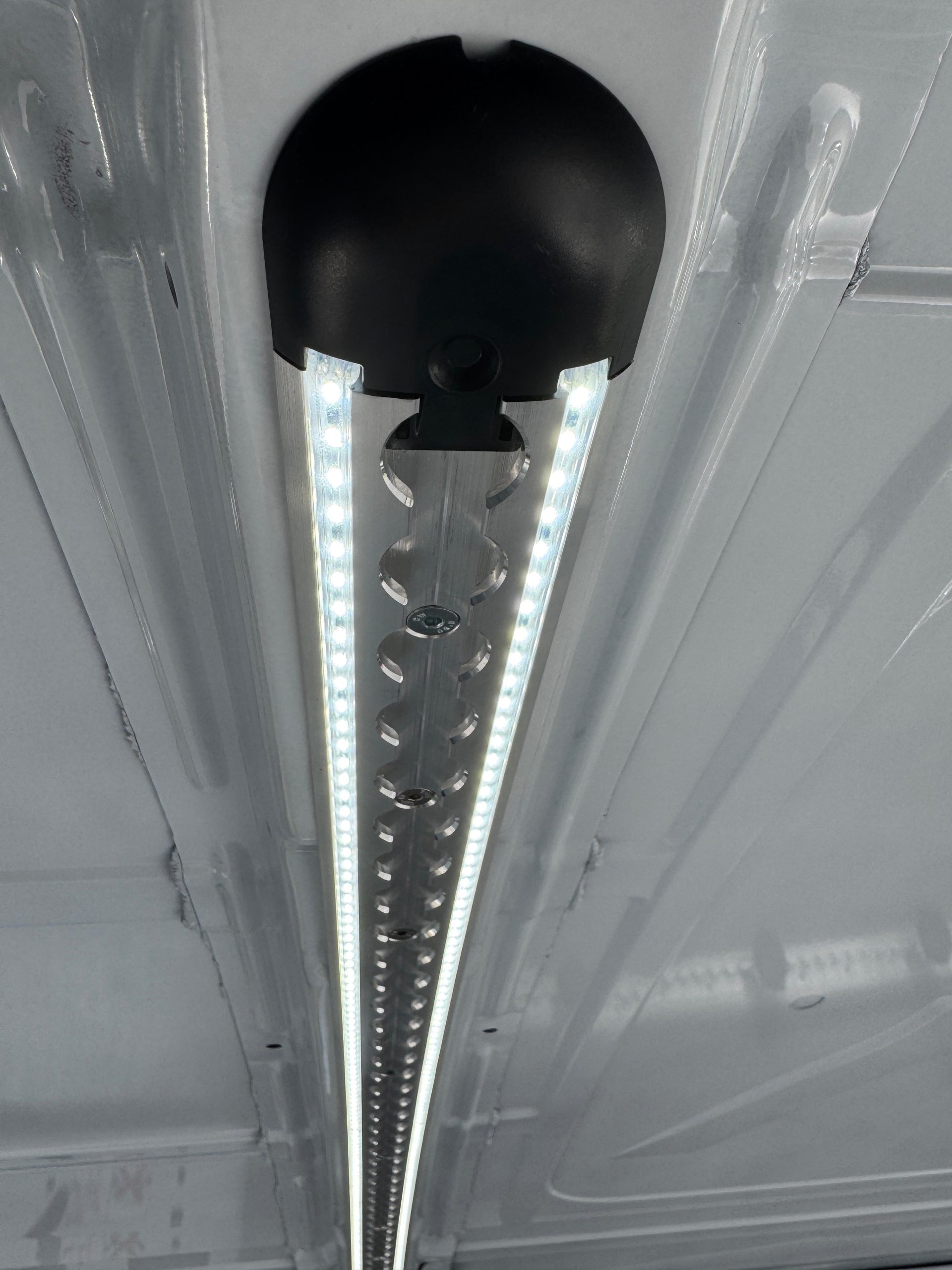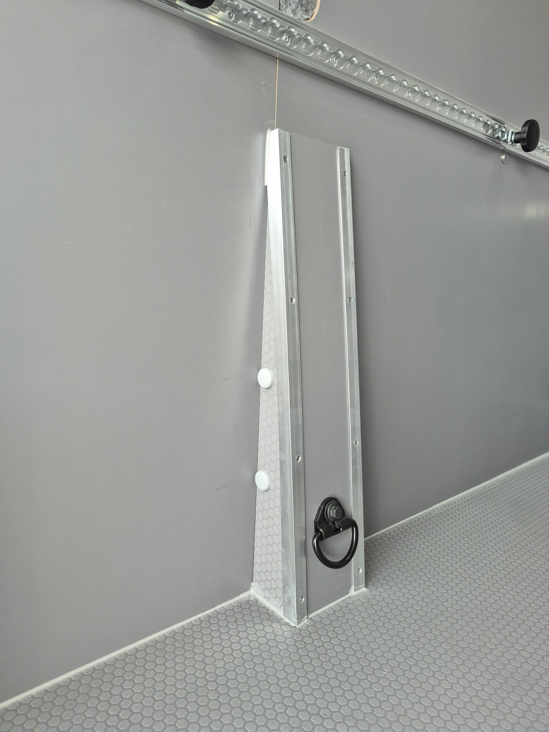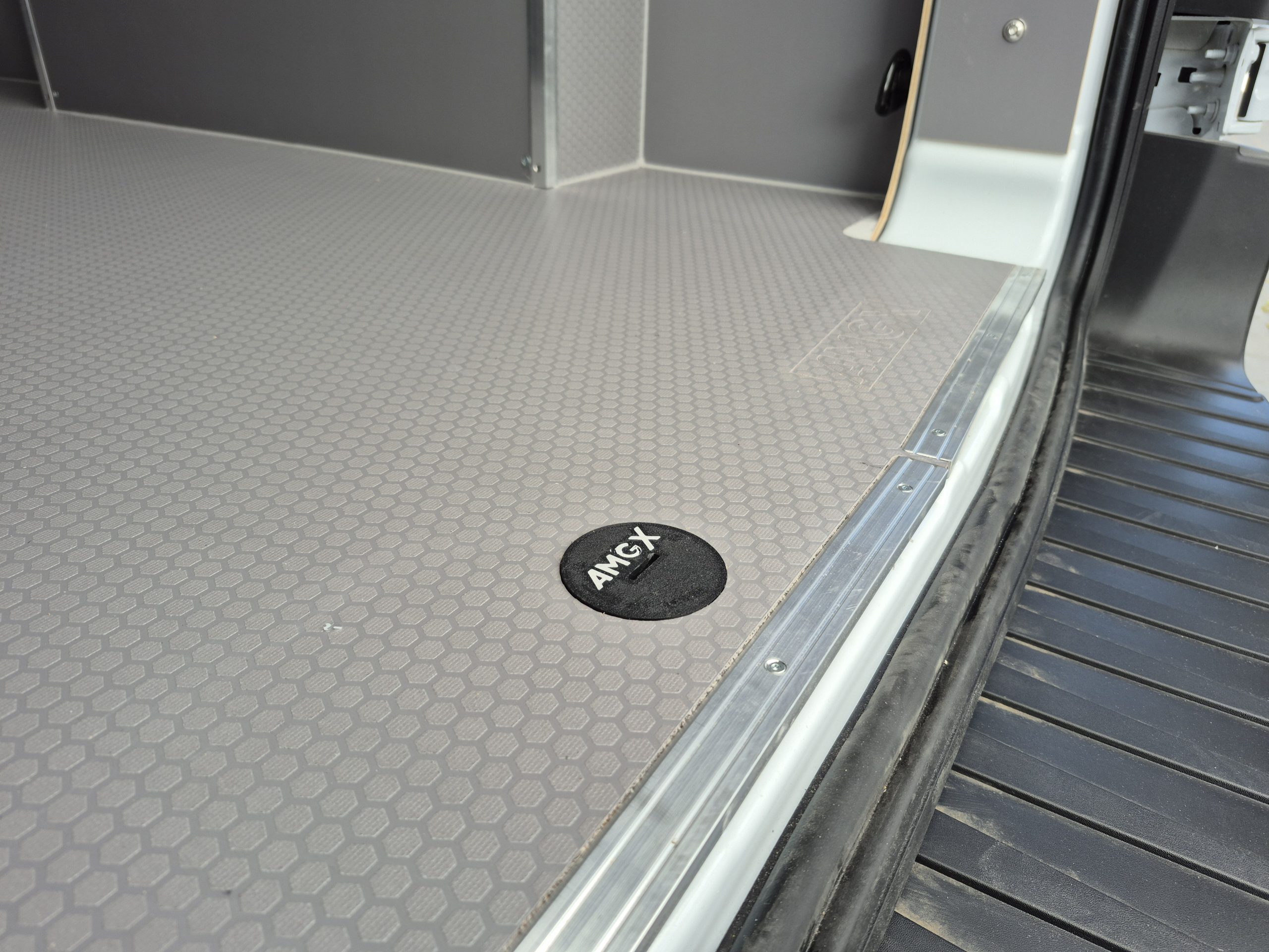 Na suficie zamontowano specjalne listwy LED, które zapewniają dobre oświetlenie przestrzeni ładunkowej. Na ścianach bocznych oraz ścianie grodziowej, na dwóch poziomach, zamontowaliśmy listwy mocujące ładunek typu Airline oraz specjalistyczne uchwyty motylkowe z możliwością przesuwania, ponieważ klient planuje w tym miejscu montaż własnych regałów.