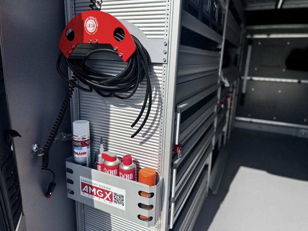 Zabudowa warsztatowa GEMA została zaprojektowana z myślą o maksymalnej funkcjonalności i wygodzie użytkowania, a do jej wykonania użyto anodyzowanego aluminium, co gwarantuje jej trwałość i odporność na korozję. Anodyzowane aluminium zapewnia również estetyczny wygląd i łatwość utrzymania w czystości.