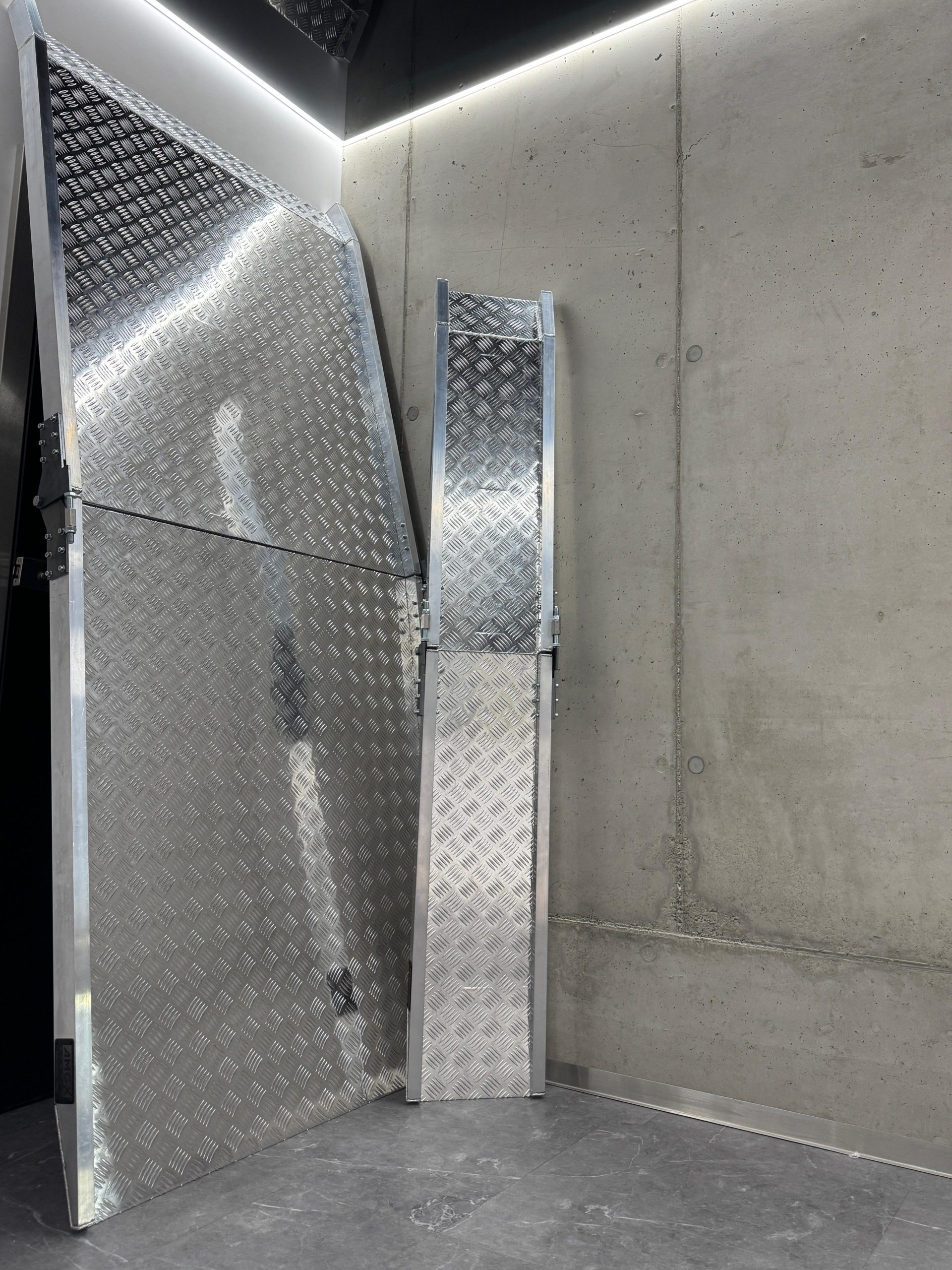 Rampy załadunkowe AMGX to połączenie trwałości, funkcjonalności i bezpieczeństwa. Wykonane z wysokiej jakości aluminium, posiadają ryflowaną powierzchnię, która zapewnia doskonałą przyczepność nawet w trudnych warunkach. Maksymalna nośność –  aż do 350 kg.