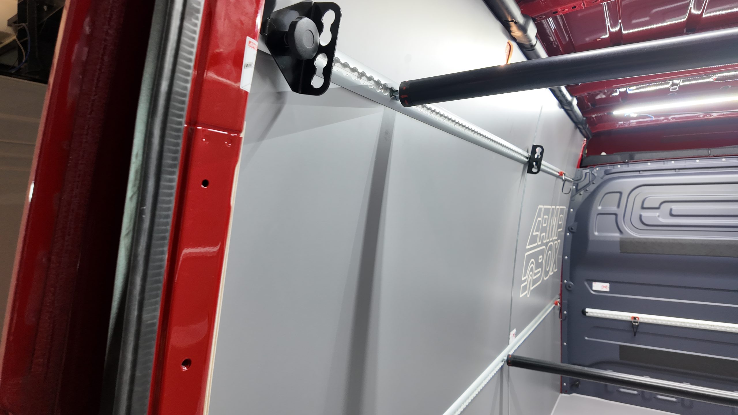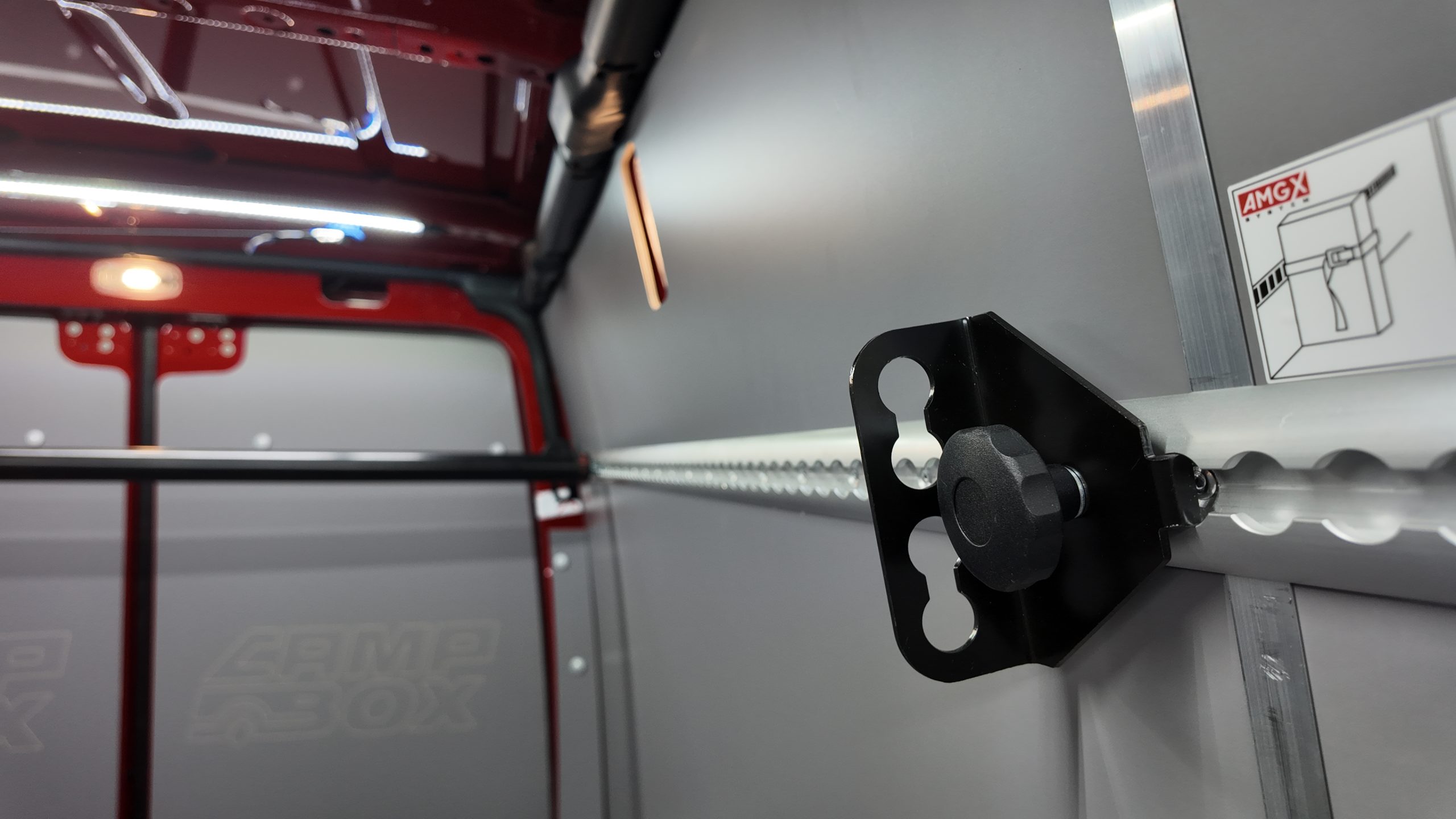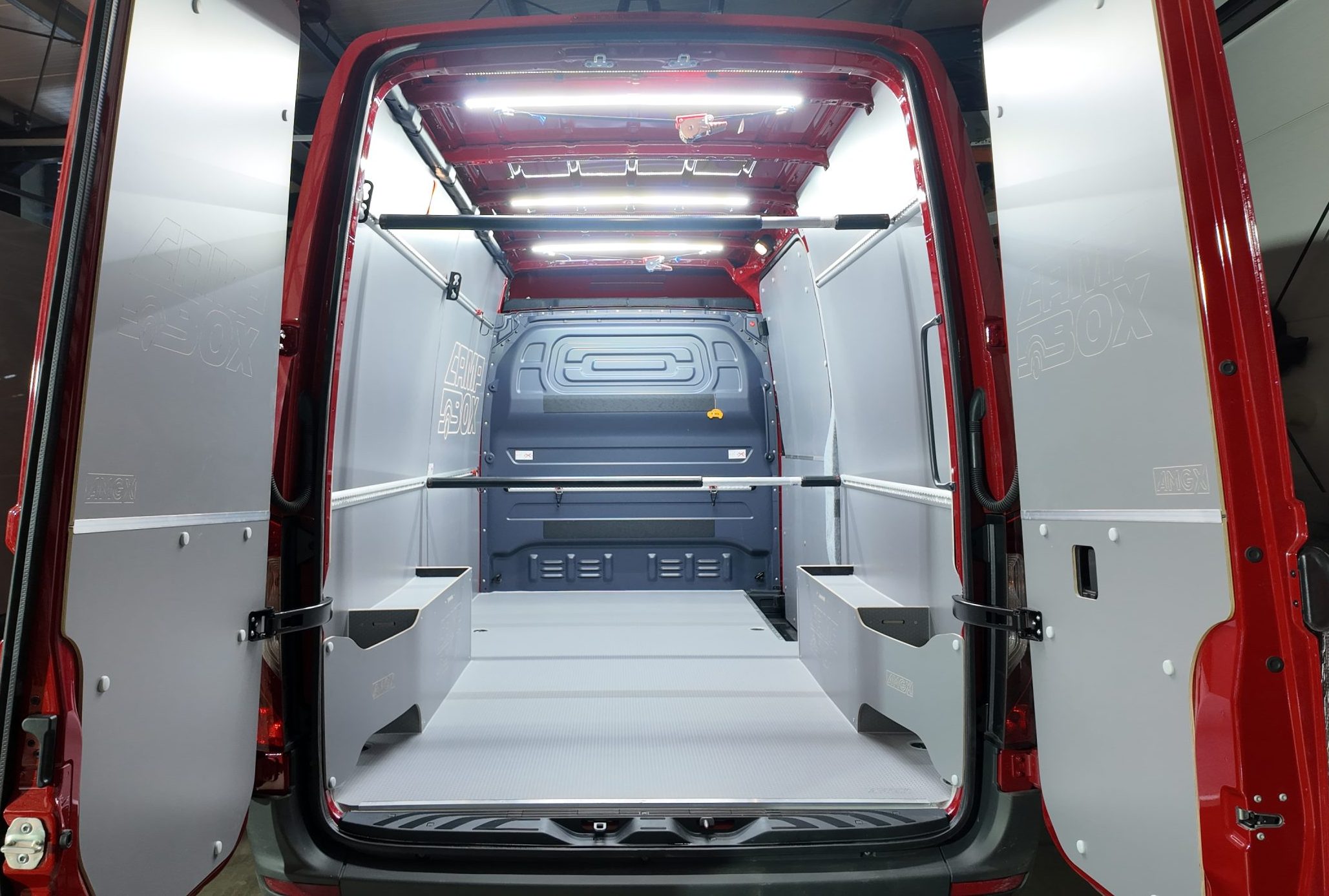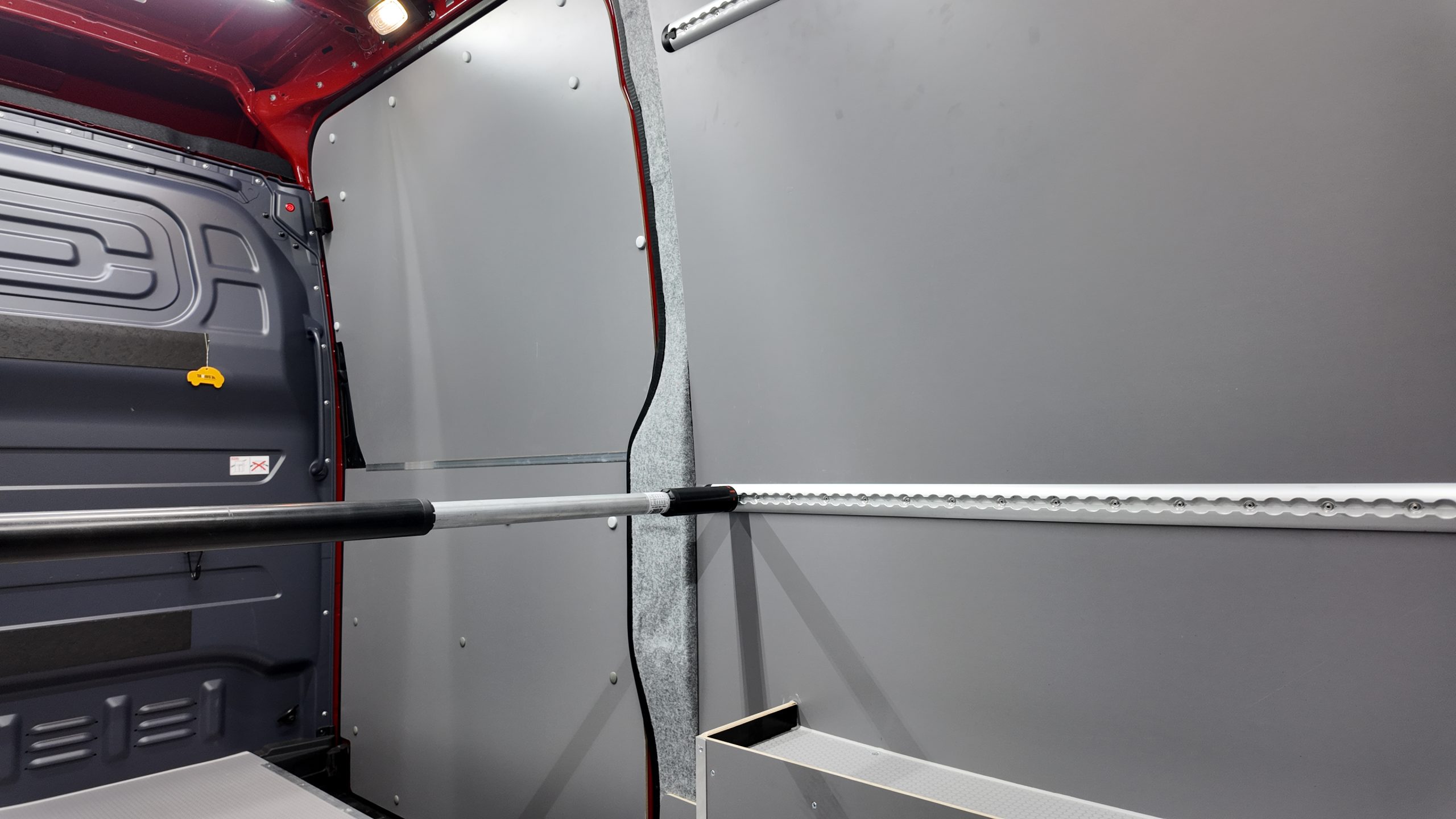 Kluczowym elementem realizacji był profesjonalny system zabezpieczania ładunku oparty o listwy Airline, który znacząco zwiększa bezpieczeństwo transportu. Listwy mocowania ładunku Airline zamontowaliśmy na ściankach bocznych i na suficie z dodatkowym oświetleniem LED na suficie.