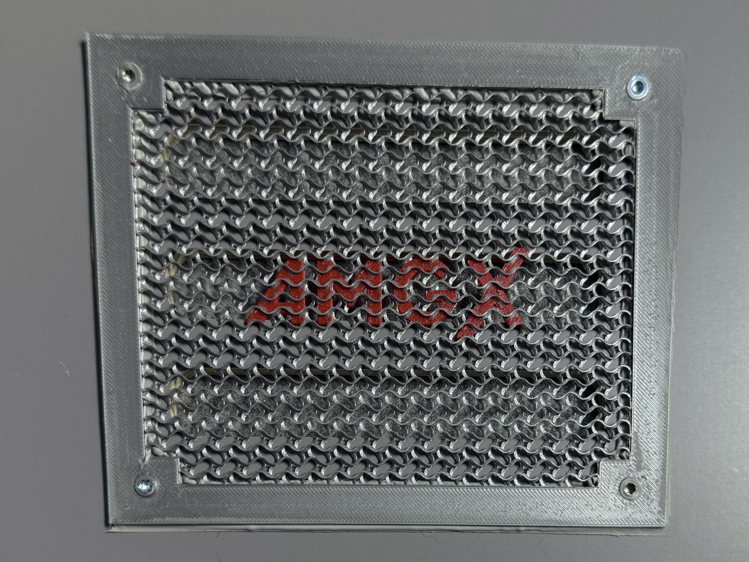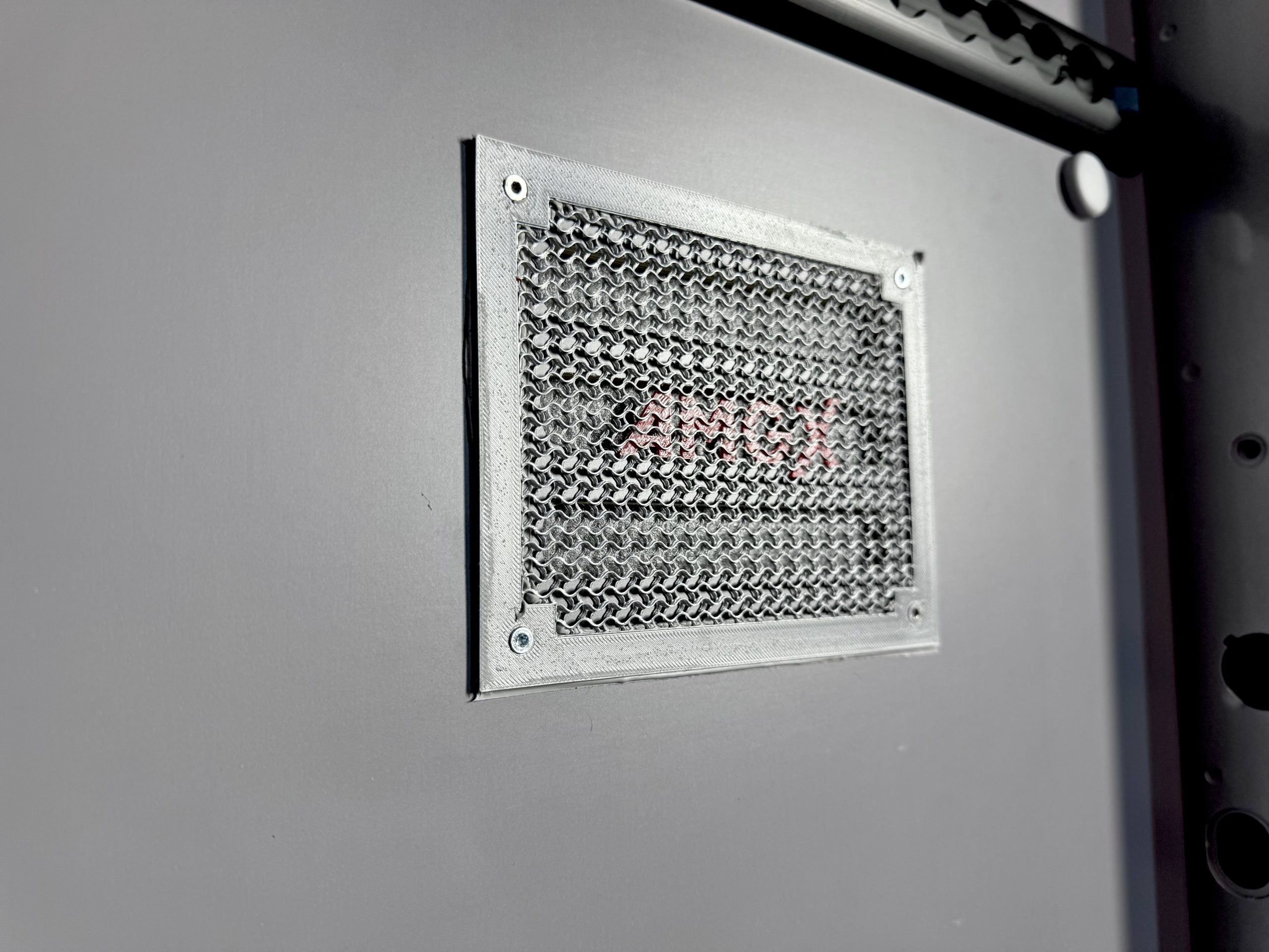 Zamontowaliśmy kratki wykonane technologią 3D (technologia FDM/FFF) z  naszym logo na otworach wentylacyjnych.