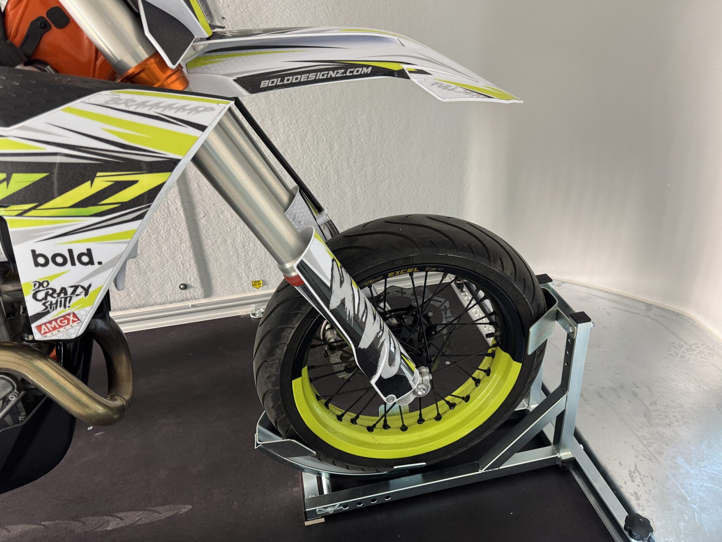 Stojak został zaprojektowany z myślą o wygodzie, mobilności i maksymalnym bezpieczeństwie motocykla. Dzięki zastosowaniu wysokiej jakości materiałów i przemyślanej konstrukcji świetnie sprawdza się w każdych warunkach transportowych.