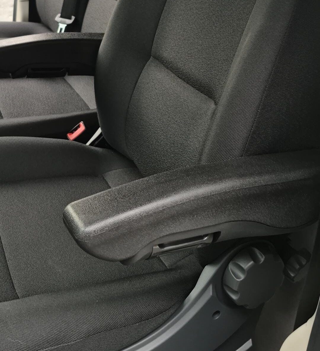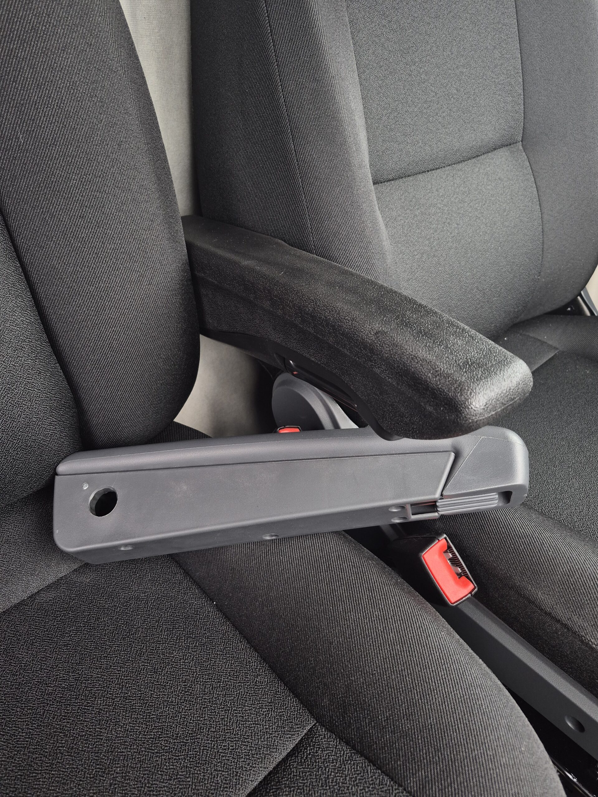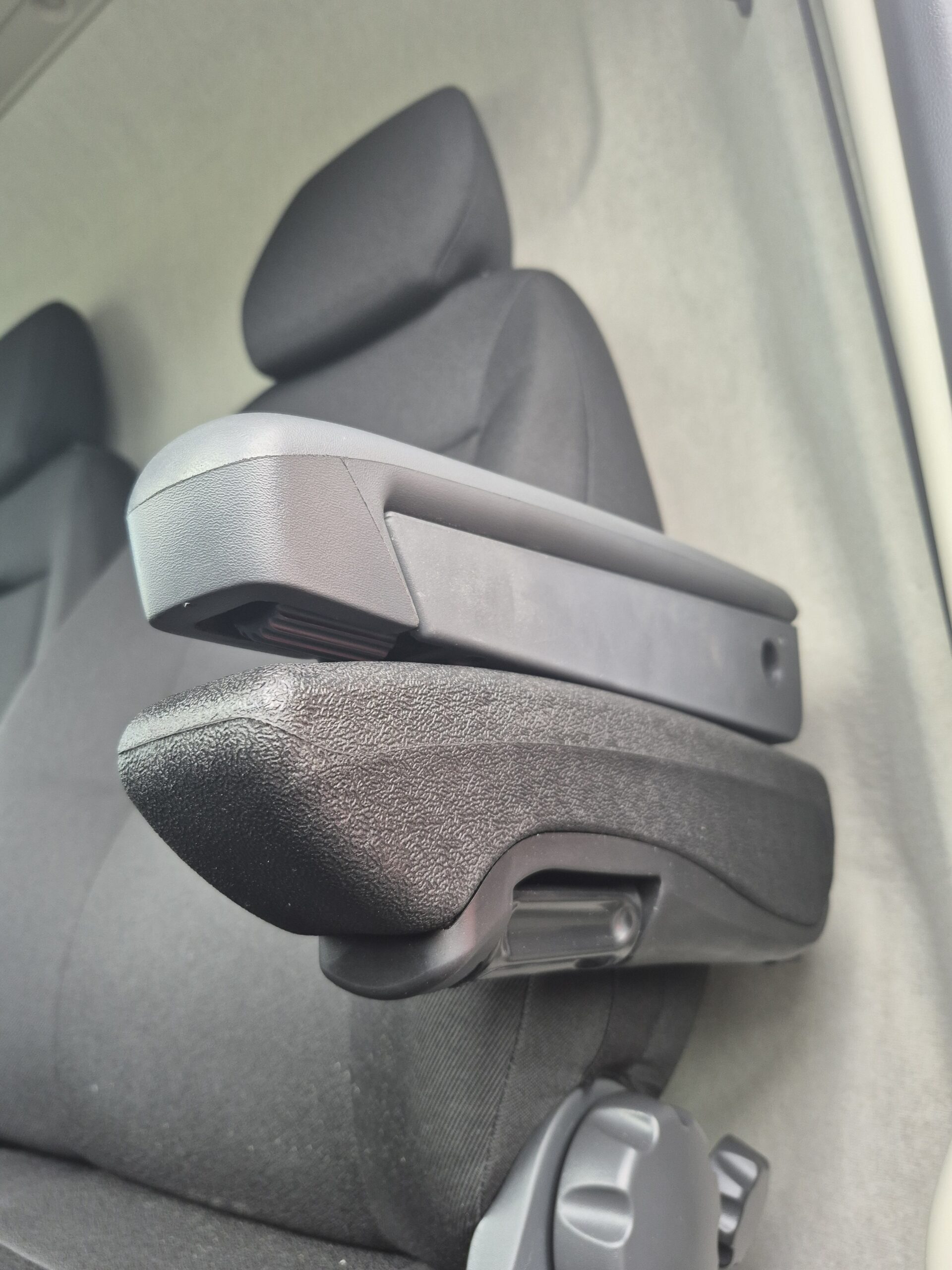 Wykonany z trwałego tworzywa sztucznego w połączeniu z metalem, podłokietnik cechuje się wysoką odpornością na uszkodzenia mechaniczne i długowiecznością. Dodatkowo posiada regulację kąta nachylenia, co pozwala dostosować jego pozycję do indywidualnych preferencji kierowcy.