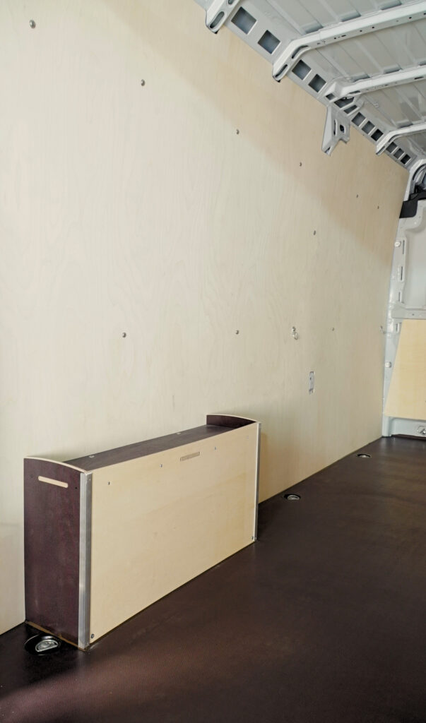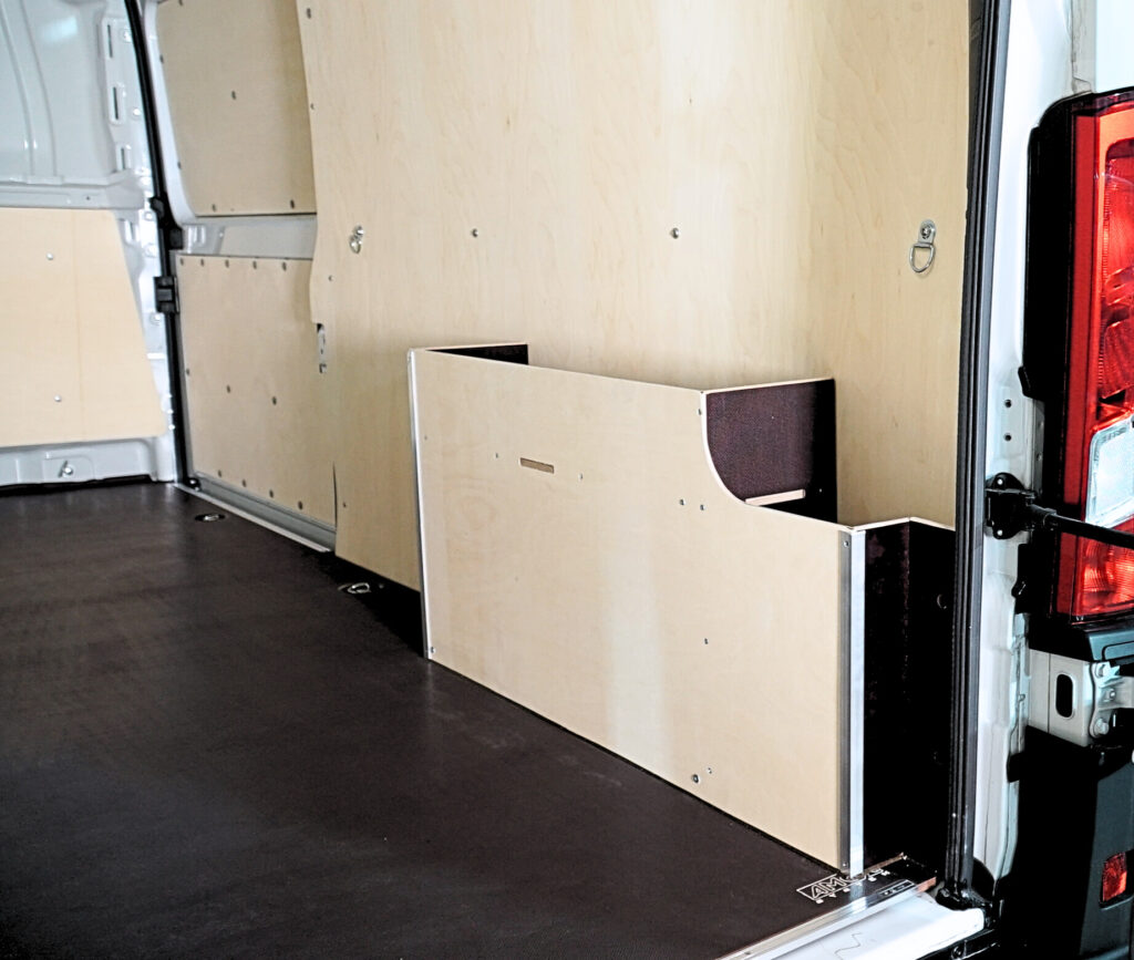 Zabudowa wnętrza Citroena jest nie tylko funkcjonalna i wytrzymała, ale także to znacząco ulepsza organizację przestrzeni roboczej i zapewnia wygodę podczas codziennego użytkowania pojazdu. Na zabudowę wykorzystano sklejkę o grubości 12 mm w kolorze brązowym. Podłoga gwarantuje wytrzymałość i odporność na ścieranie, a właściwości antypoślizgowe zwiększają bezpieczeństwo podczas załadunku i rozładunku. Panele boczne i ścianę grodziową wykonano z sklejki liściastej 6,5 mm, która jest gwarancją niezawodności i wytrzymałości.