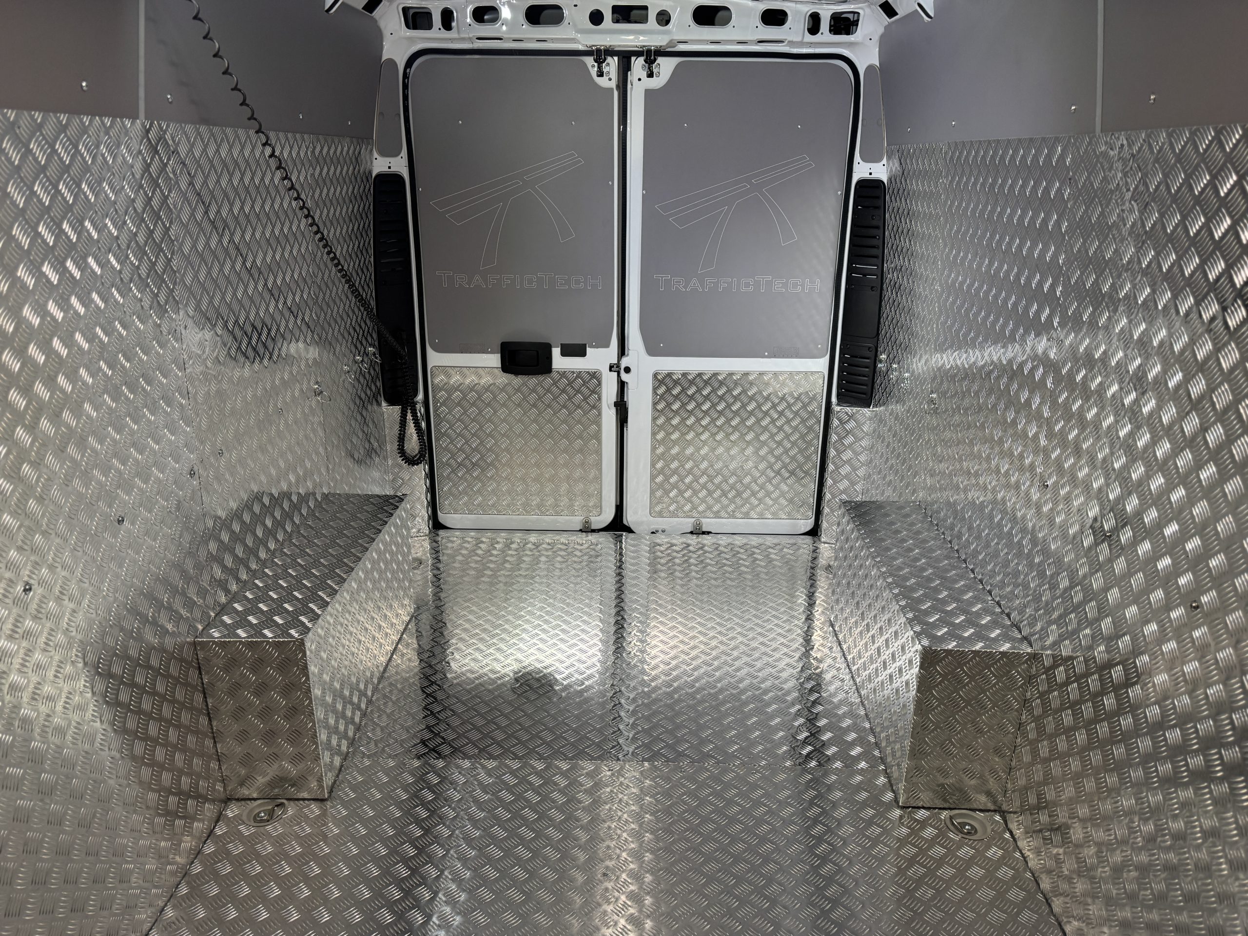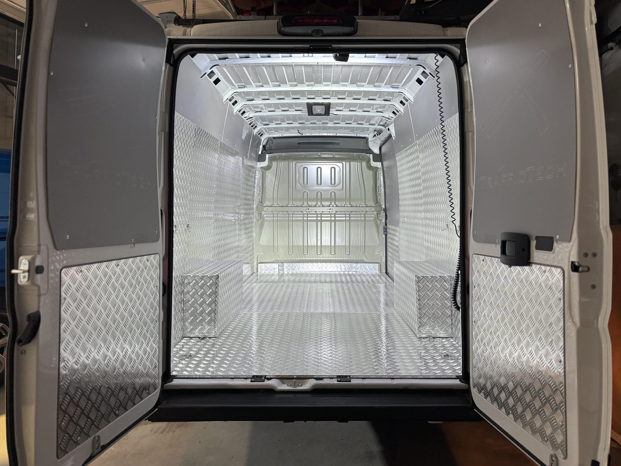 Zrealizowaliśmy solidną zabudowę przestrzeni ładunkowej w Fiacie Ducato L4H2 dla firmy Traffic Tech, specjalizującej się w oznakowaniu drogowym. Głównym materiałem jest blacha ryflowana 2 mm, co gwarantuje wysoką odporność na uszkodzenia mechaniczne oraz długą żywotność podczas codziennej pracy.