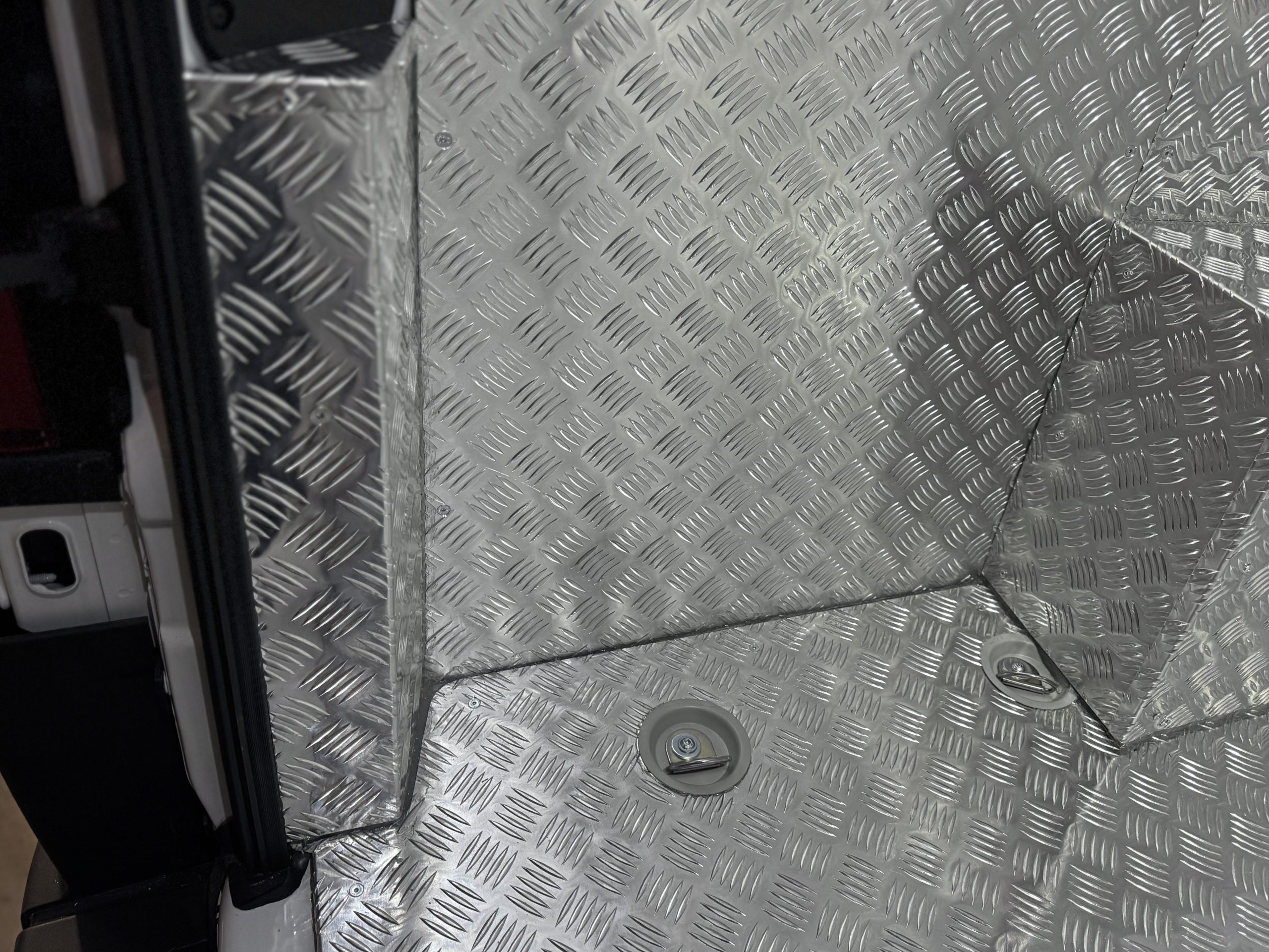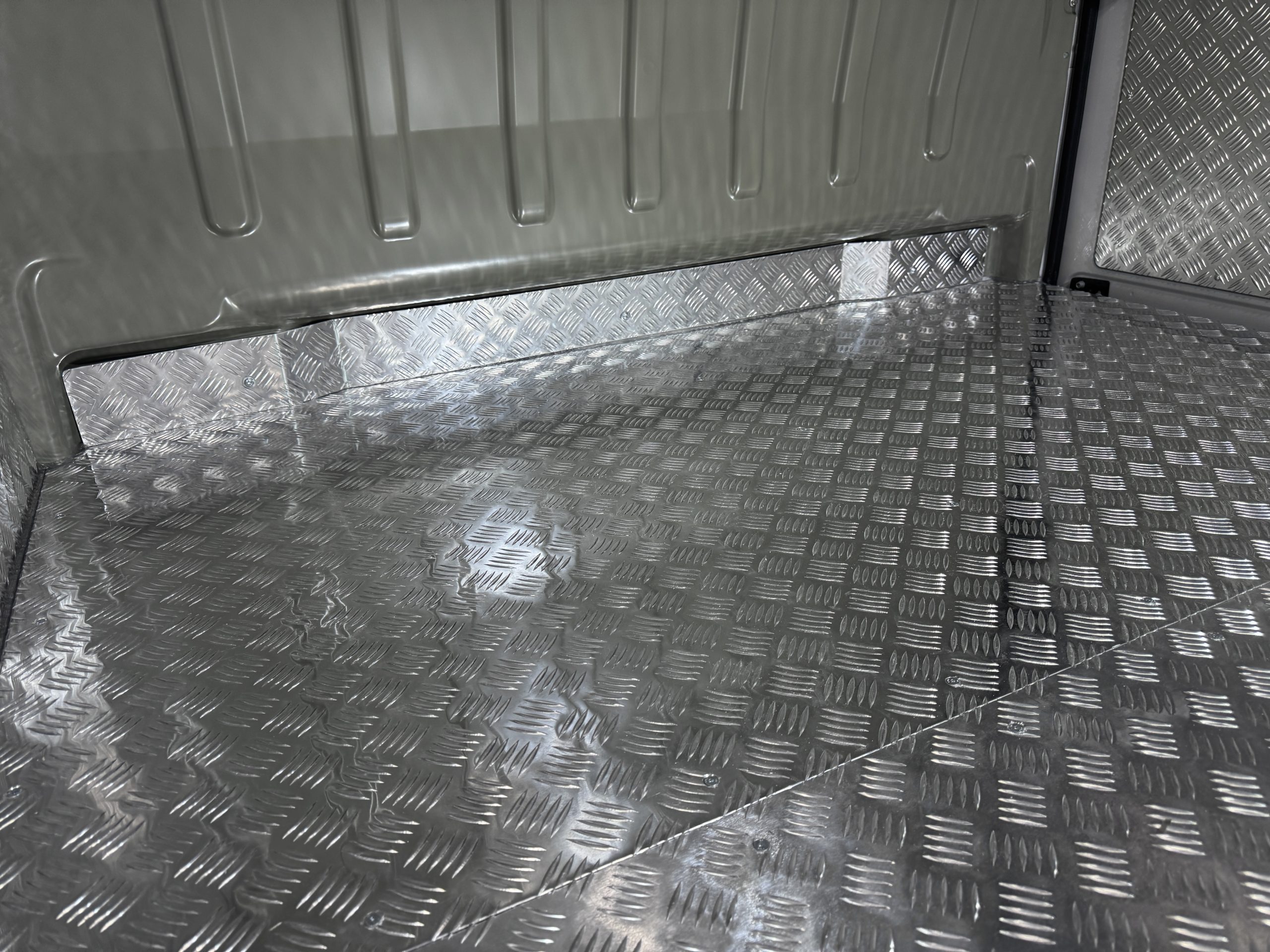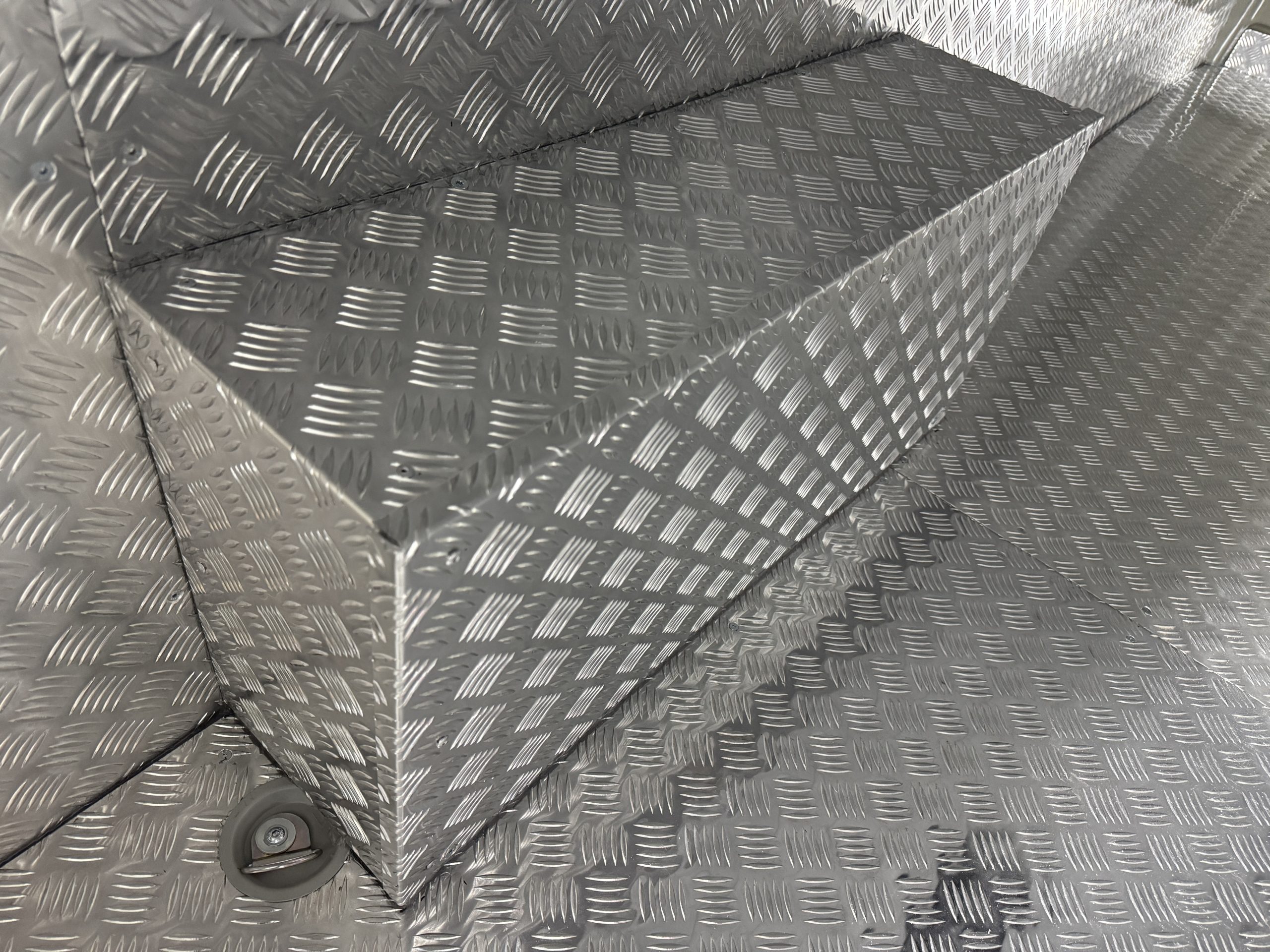 - Podłogę wykonaną ze sklejki 12 mm, pokrytą wytrzymałą blachą ryflowaną.