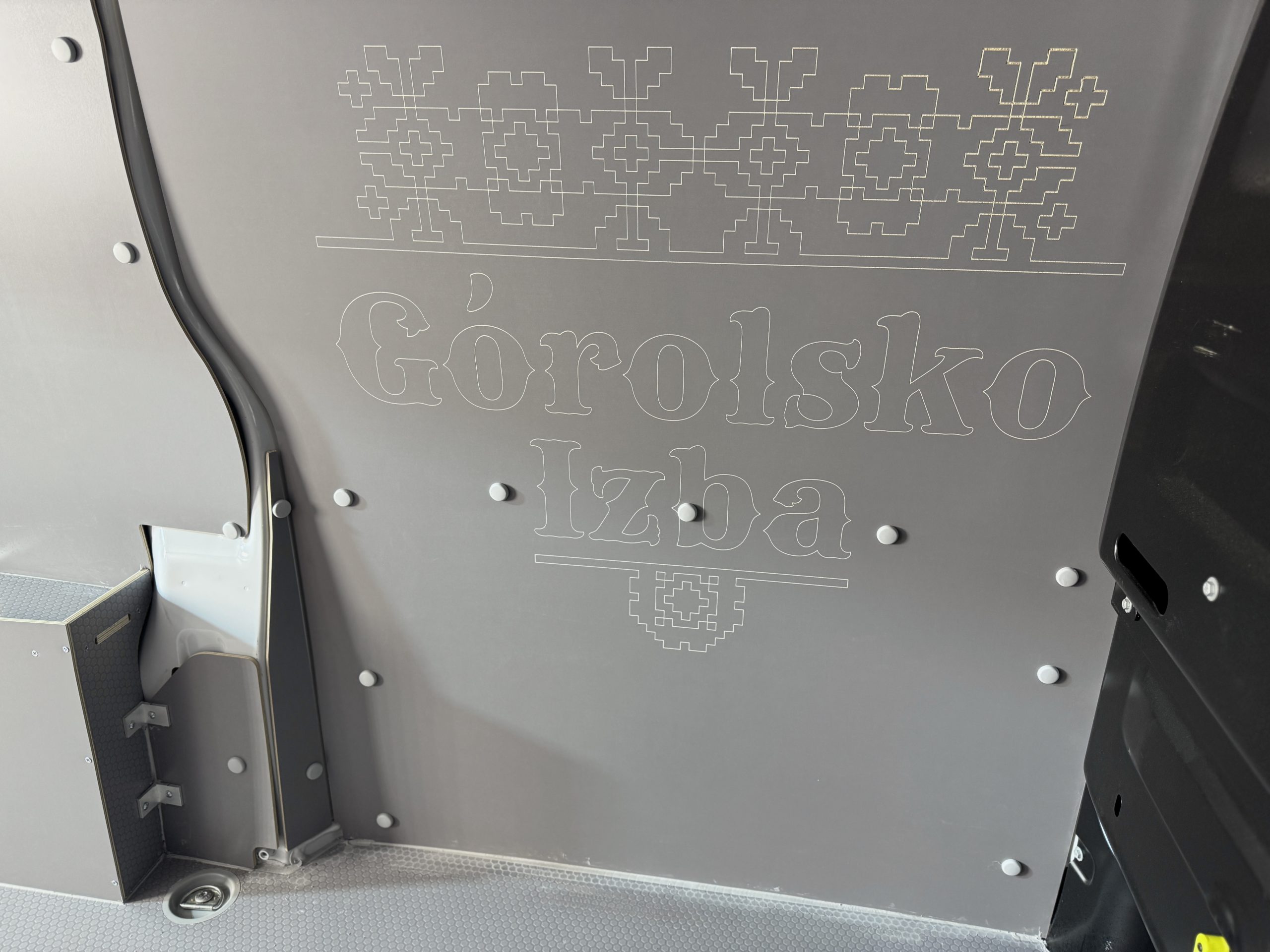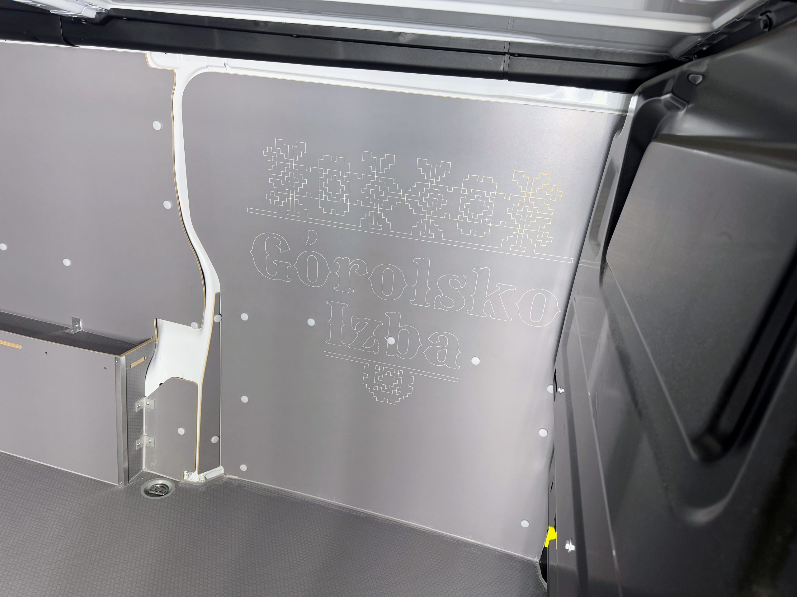 Dla Restauracji Górolska Izba przygotowaliśmy nową zabudowę w modelu Opel Vivaro L2H1. Wnętrze wykonane zostało z wodoodpornych sklejek premium: hexa 12 mm oraz obustronnie laminowanej 6,5 mm. Materiały są trwałe, higieniczne i zgodne z wymaganiami transportu żywności. Podłoga w strefie drzwi została dodatkowo zabezpieczona listwą aluminiową, co chroni ją przed uszkodzeniami.