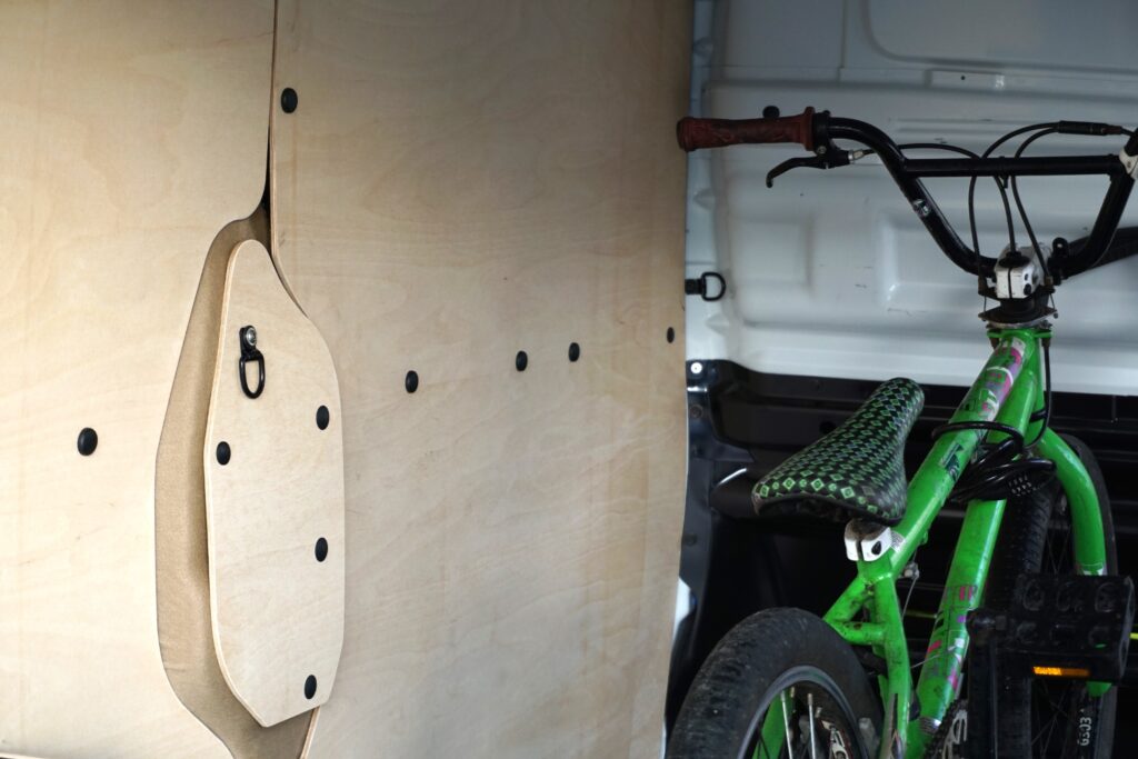 Nasza zabudowa jest wykonana z 12 mm podłogi HEXA, która jest antypoślizgowa, wodoodporna i zapewnia wytrzymałą bazę, idealną do intensywnego użytkowania. Wszystkie elementy, które nie mogą zostać osłonięte sklejką są zabezpieczone filcem technicyzm przed uszkodzeniami. Nadkola są wzmocnione aluminiowymi okuciami i wykorzystane jako półka.