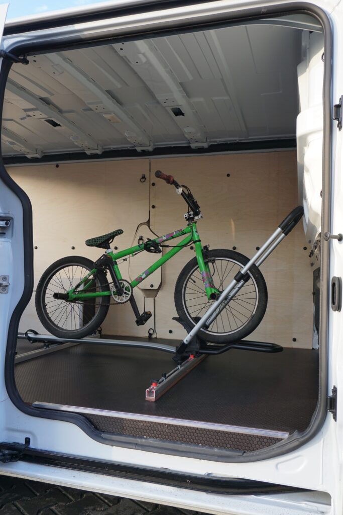 Najnowsza realizacja zabudowy do Renault Trafic L2H1 łączy nowoczesne rozwiązania z solidnym wykonaniem, a jej kluczowym atutem jest możliwość zamontowania stojaka rowerowego. Dzięki przesuwnemu systemowi mocowania na aluminiowych relingach, montaż i demontaż to kwestia chwili, zapewniając maksymalny komfort i łatwość obsługi.