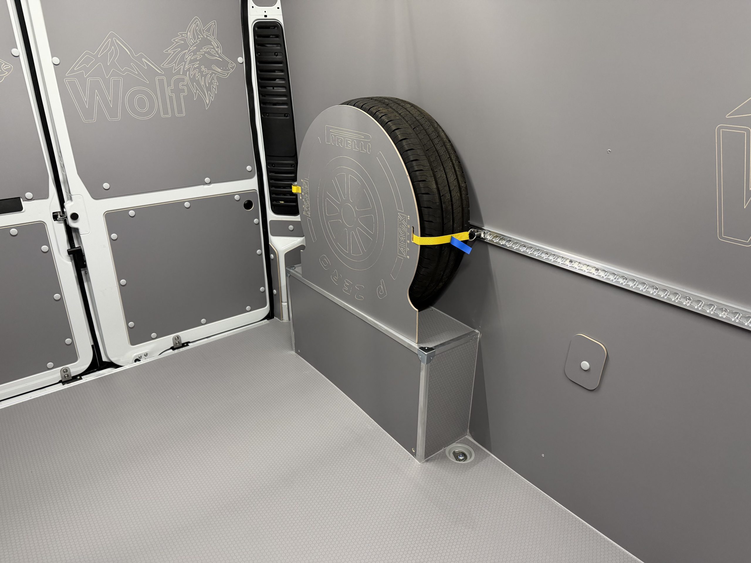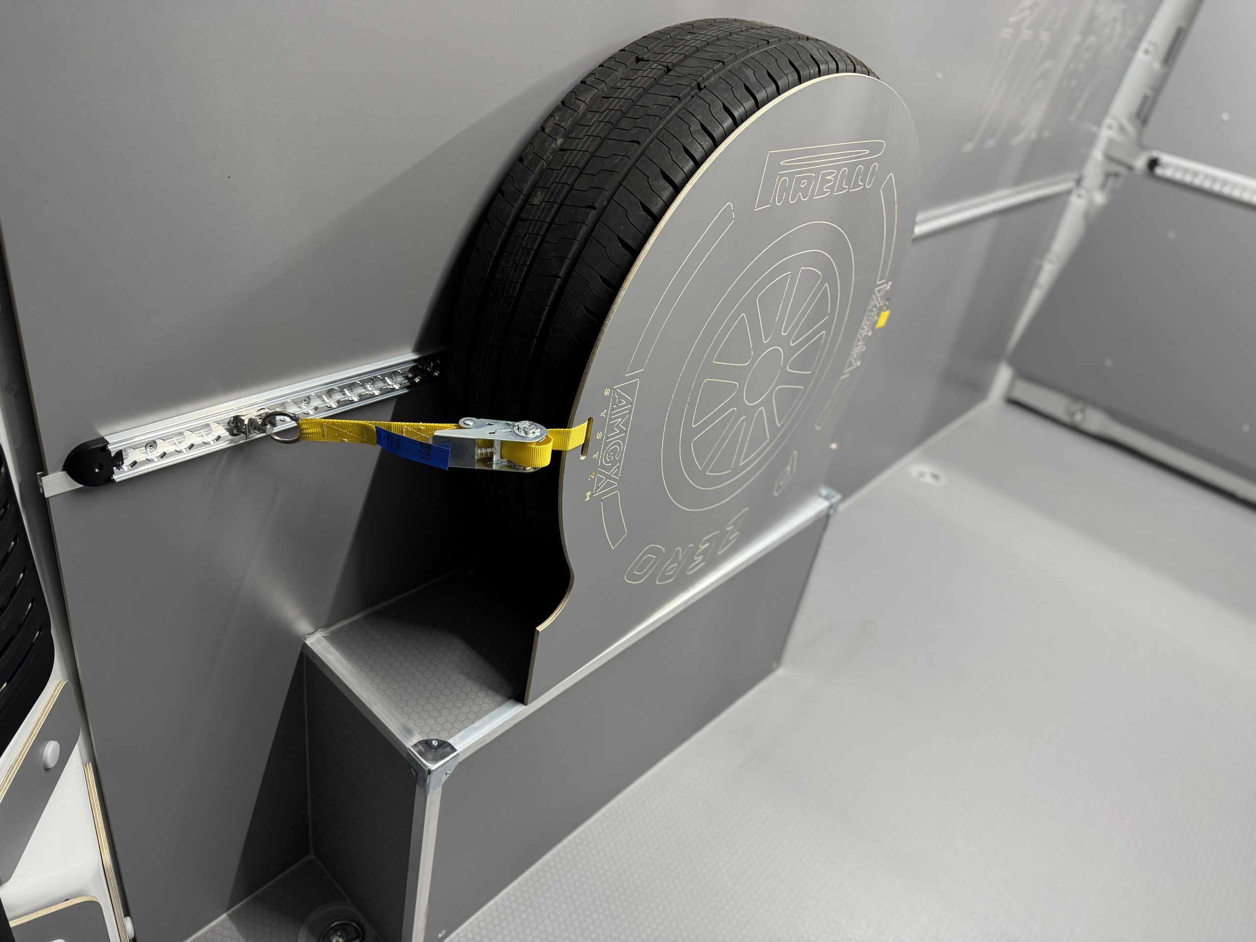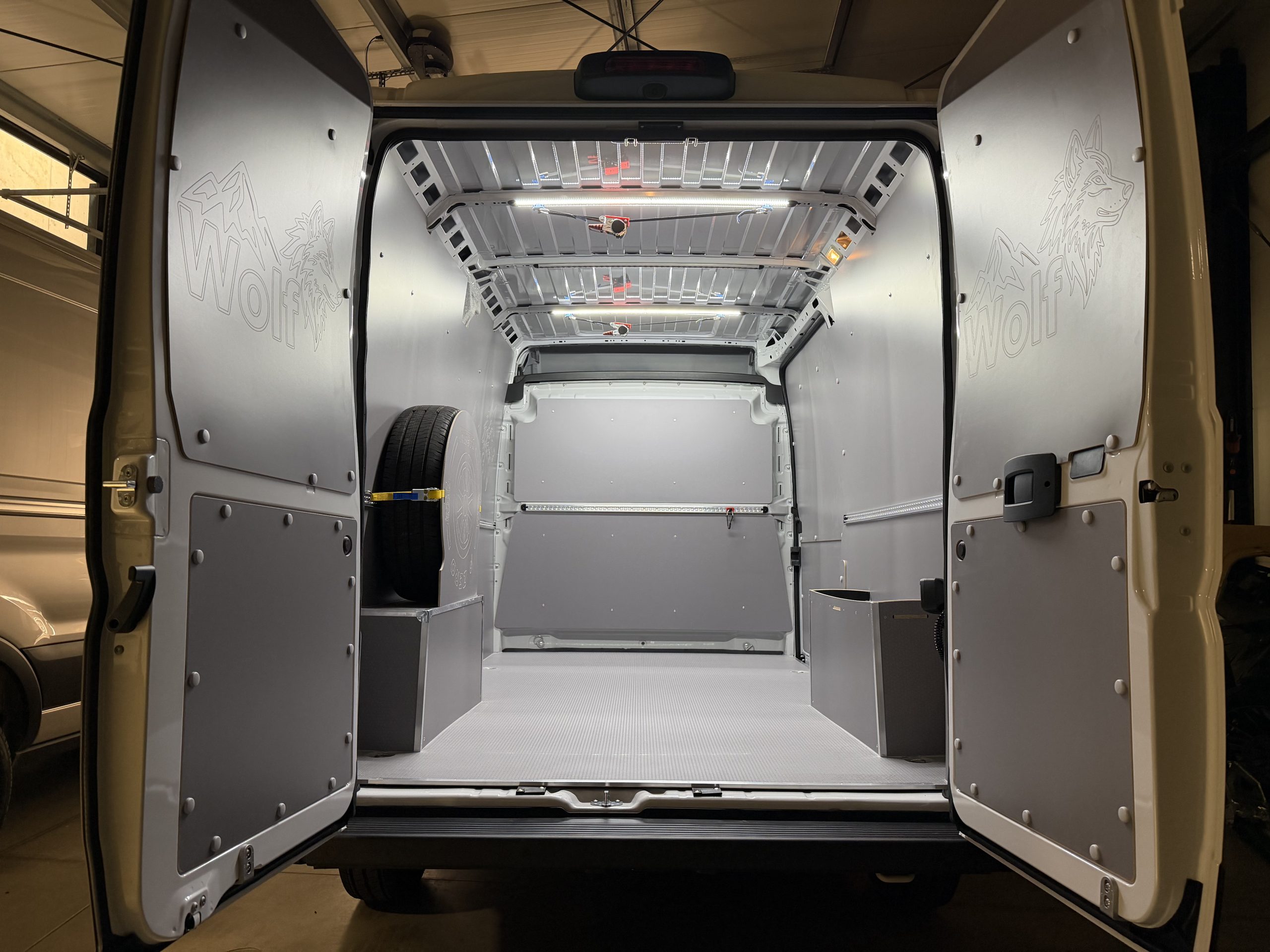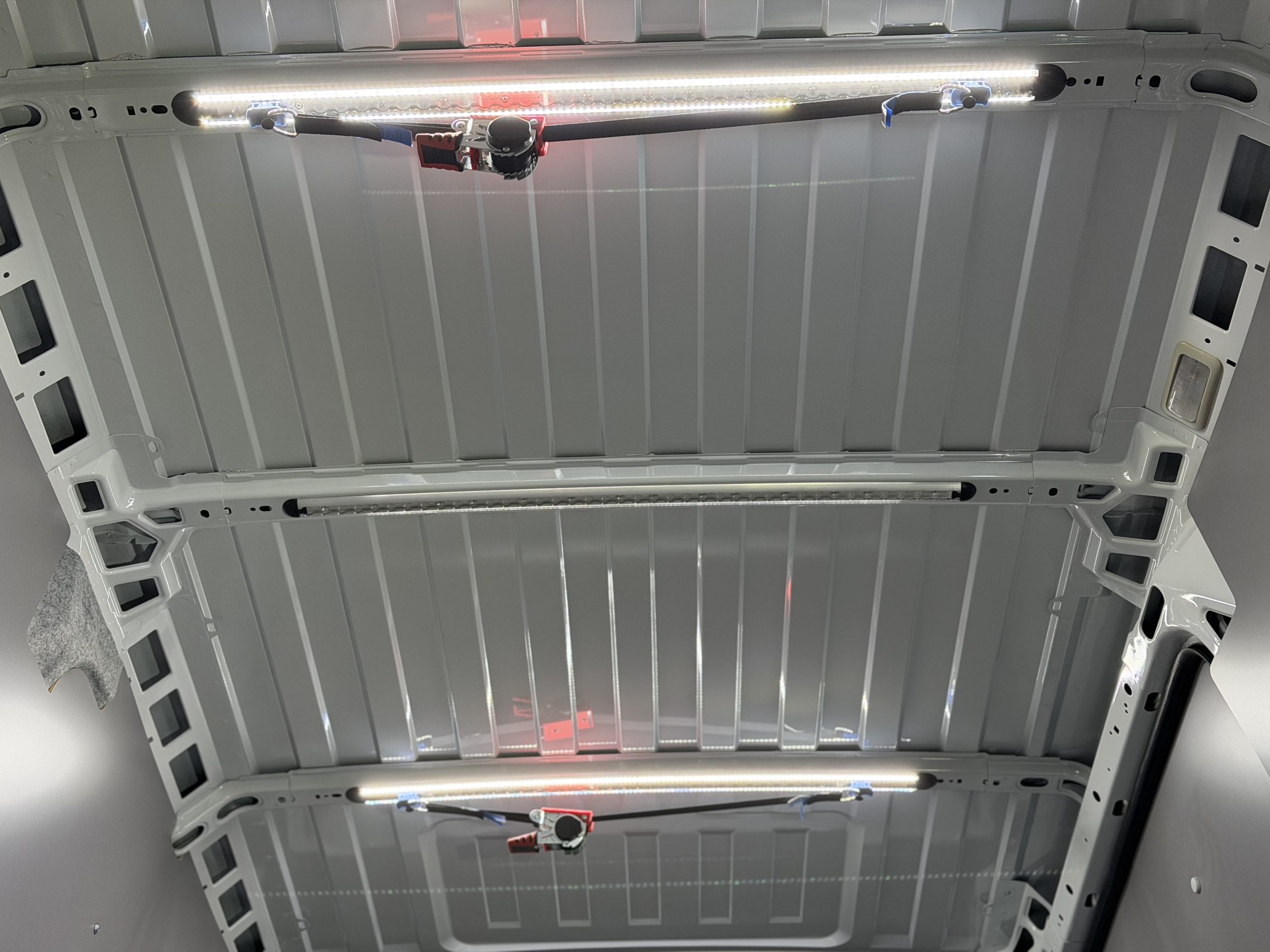 W pojeździe zastosowaliśmy listwy Airline renomowanej niemieckiej marki WISTRA, które umożliwiają bezpieczne i elastyczne mocowanie ładunku w dowolnym miejscu. Dodatkowo listwy Airline z LED zamontowaliśmy również na suficie, wraz z zintegrowaną lampka kontrolna w kabinie kierowcy. Szperacz LED na magnesie, zasilany z gniazda zapalniczki, idealny do pracy po zmroku.