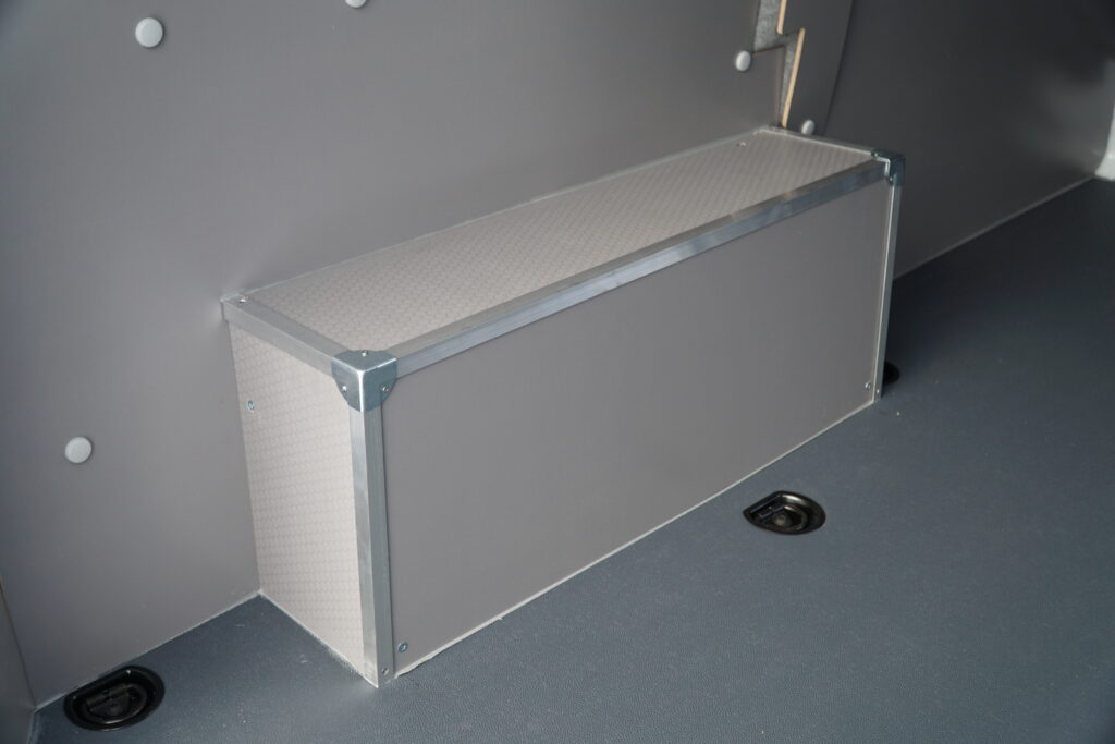 Zabudowa wnętrza Mercedesa Vito to doskonały sposób na zabezpieczenie samochodu przed uszkodzeniami oraz nadanie mu estetycznego i profesjonalnego wyglądu. Całe wnętrze pojazdu pokryte jest wytrzymałą sklejką, która chroni przed zarysowaniami i wgnieceniami. Zabudowa montowana jest bez ingerencji w strukturę karoserii – nie wiercimy nowych otworów, dzięki czemu konstrukcja pojazdu pozostaje nienaruszona. Elementy sklejki są precyzyjnie dopasowane, w tym do linii sufitu, co zapewnia spójny i estetyczny efekt.