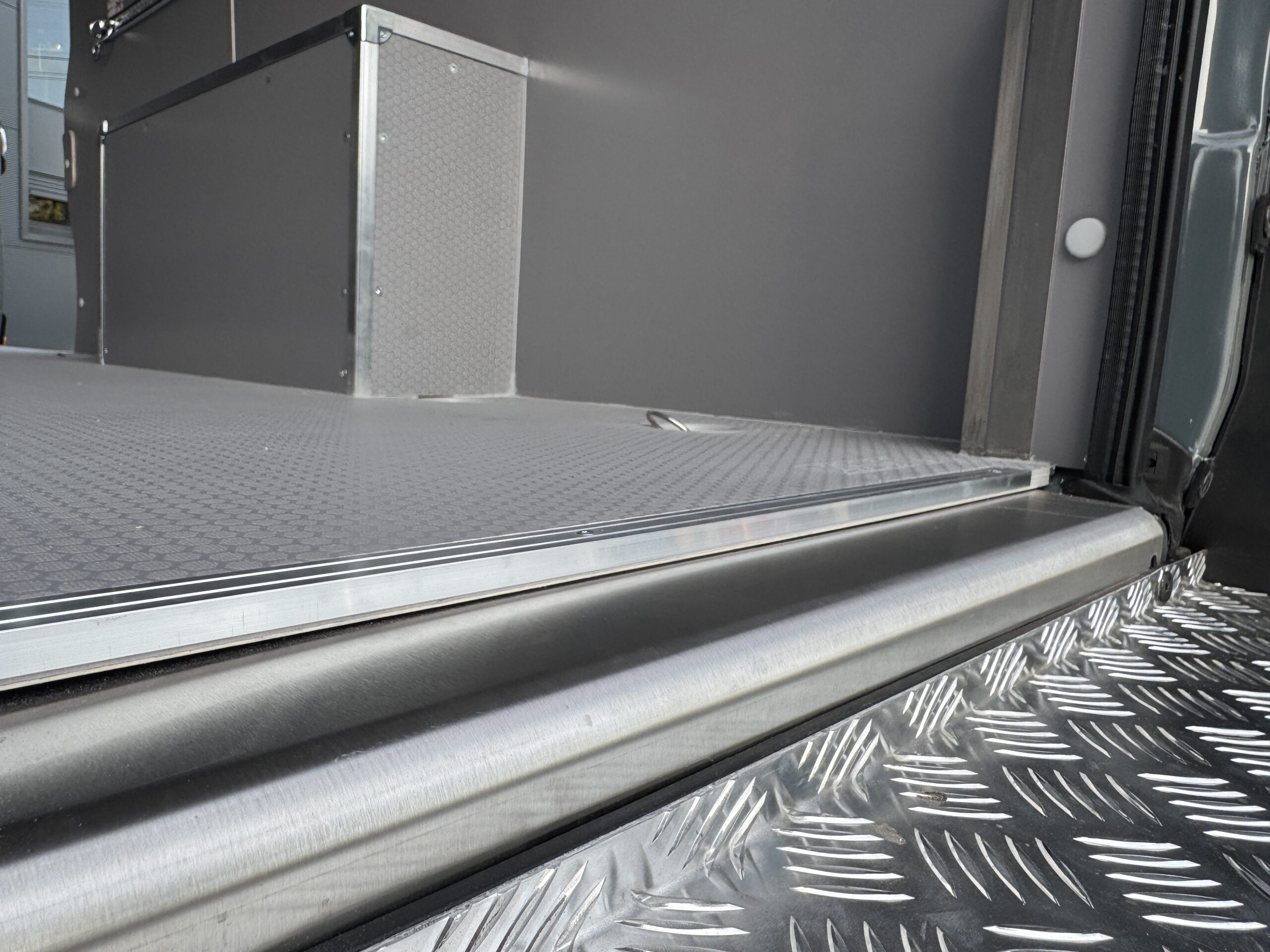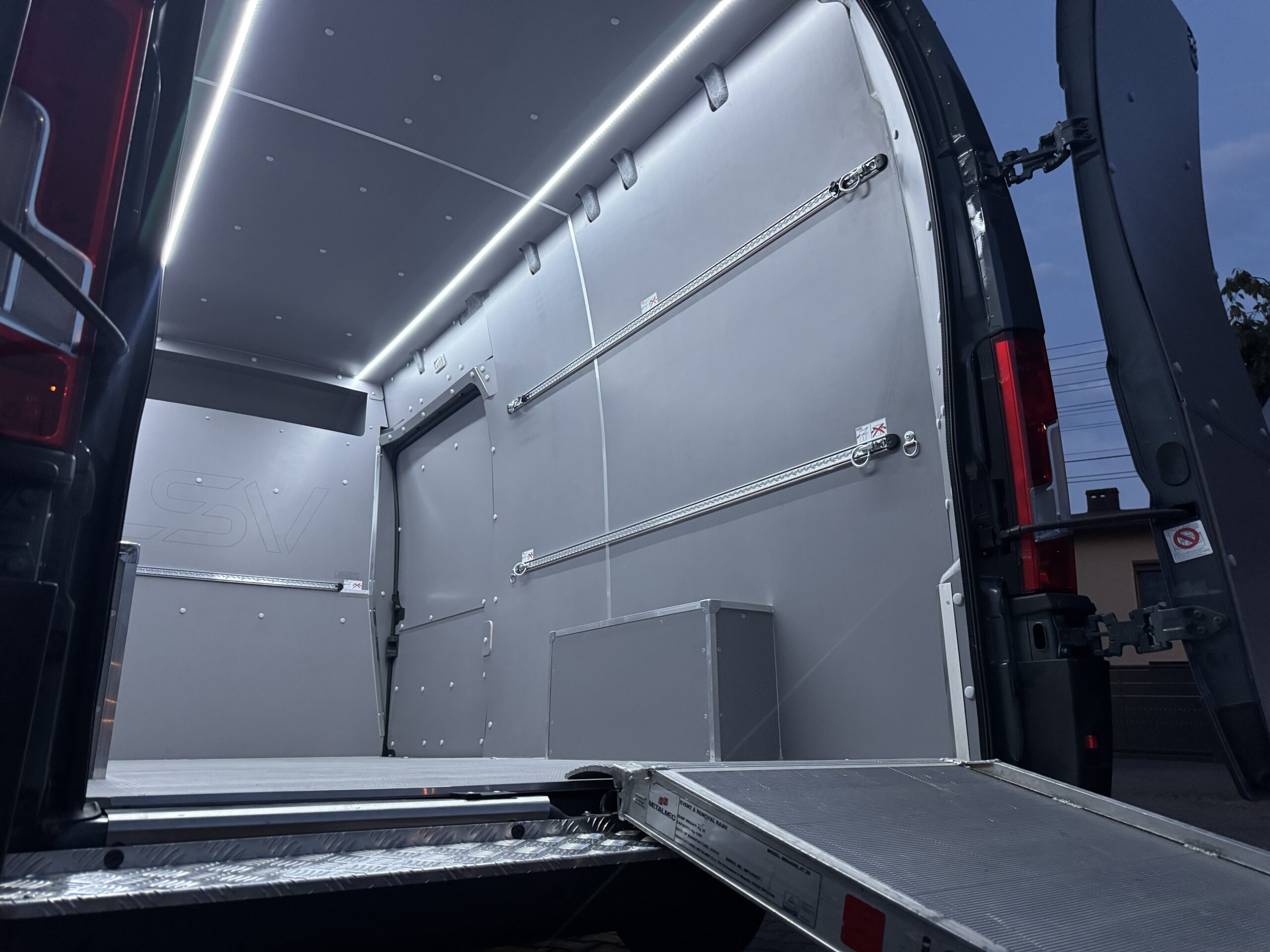 Dla maksymalnej ochrony pojazdu zastosowaliśmy nakładki na zderzak z aluminium ryflowanego oraz ochronną progową wewnętrzną ze stali nierdzewnej. Samochód jest również wyposażony w rampę załadunkową, co ułatwia wnoszenie i wynoszenie ciężkich przedmiotów, zwiększając komfort i bezpieczeństwo pracy. Dodatkowym zamontowaliśmy kamerę samochodową 4K 70mai.