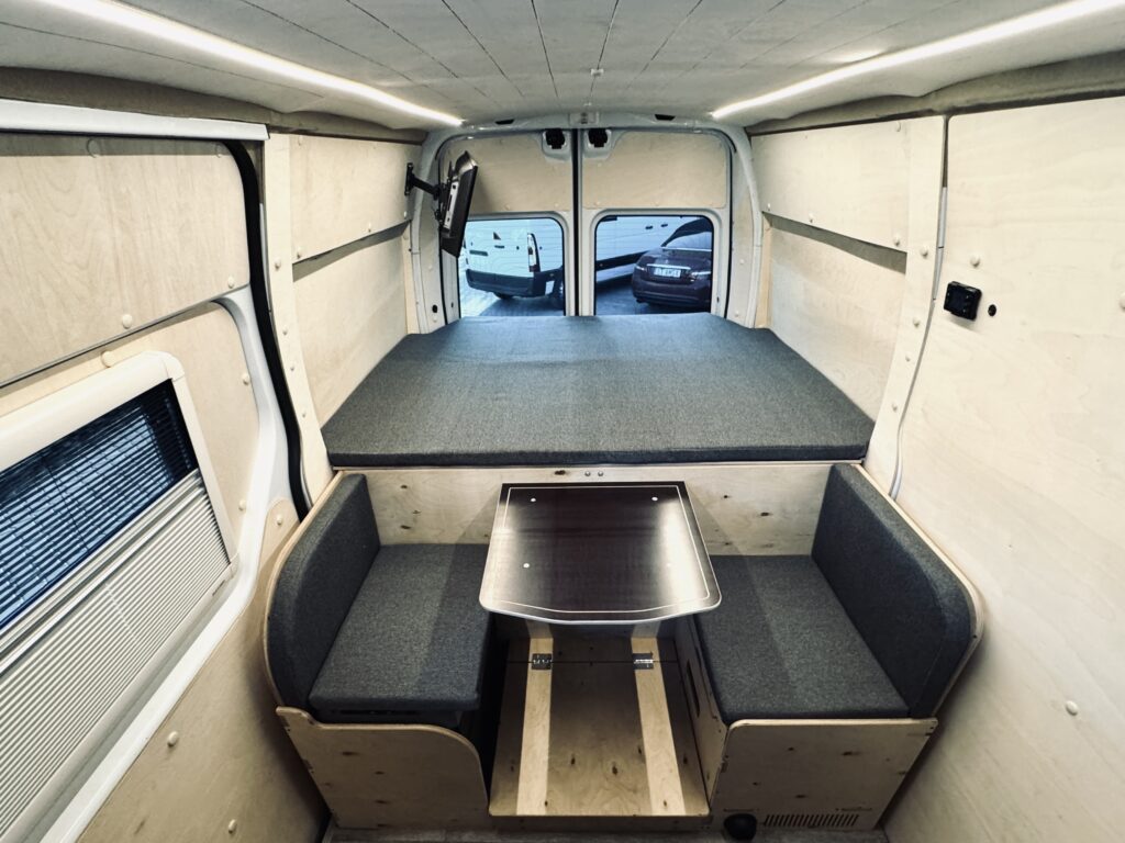 Zabudowa Renault Master L2H2 to doskonała opcja zarówno na weekendowe wypady, jak i długie podróże. Wnętrze zostało wykonane z ekologicznych materiałów, które spełniają najwyższe standardy i służą przez długie lata.