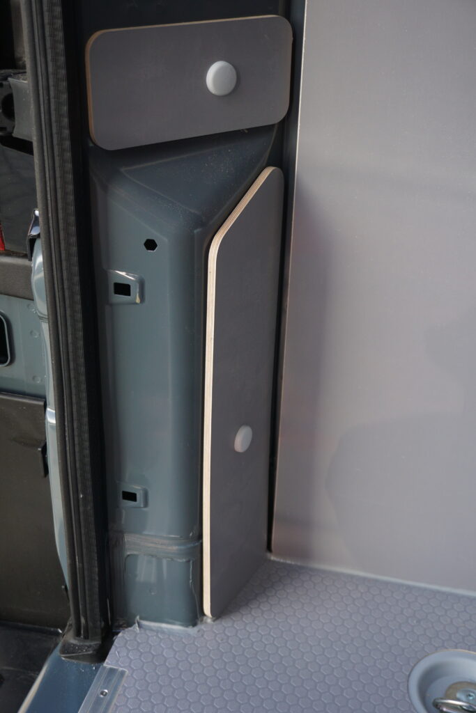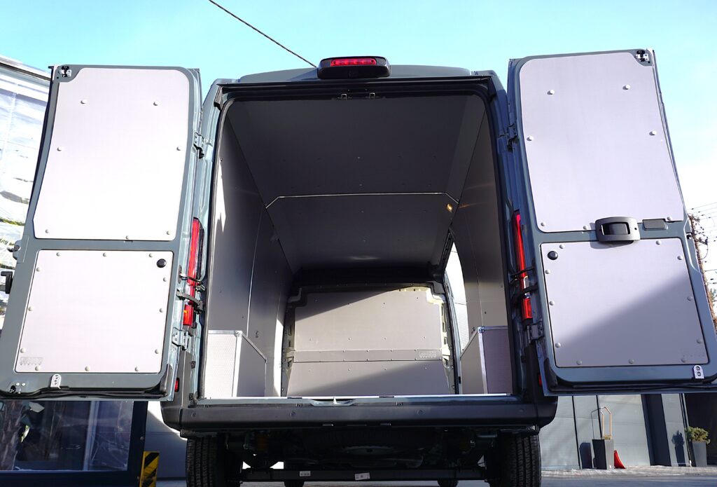 Dodatkowym atutem zabudowy jest solidna konstrukcja ściany grodziowej, wykonanej ze sklejki wodoodpornej ilaminowanej obustronnie. Jest odporna na uszkodzenia i skutecznie chroni przestrzeń ładunkową. Nadkola również zostały zabezpieczone wodoodporną sklejką i wzmocnione aluminiowymi okuciami. Takie rozwiązanie sprawia, że Opel Movano z tą zabudową staje się idealnym pojazdem dla branży spożywczej.