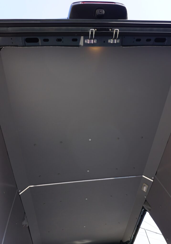 Sufitu w Oplu Movano to wysokiej klasy tworzywo sztuczne, które jest lekkie, trwałe i łatwe w czyszczeniu. Sufit został także zaizolowany matą bitumiczną z folią aluminiową, co poprawiło komfort termiczny i akustyczny wewnątrz pojazdu. Takie rozwiązanie jest szczególnie ważne przypadku branży spożywczej, która często pracuje w zmiennych warunkach pogodowych. Dodatkowo uszczelki w zabudowie są specjalnie zaprojektowane i wykonane pod konstrukcje, co zapewnia perfekcyjne dopasowanie.