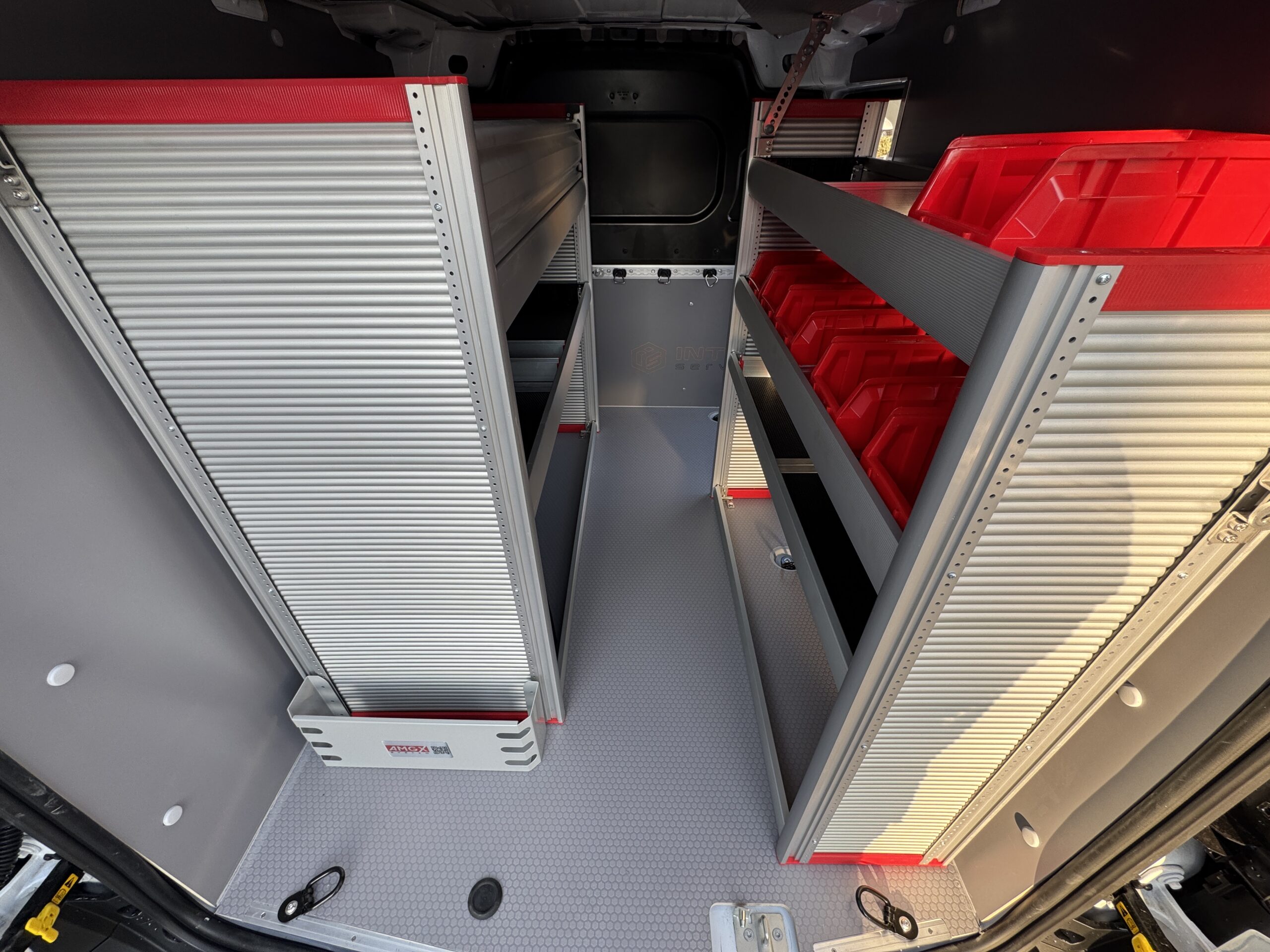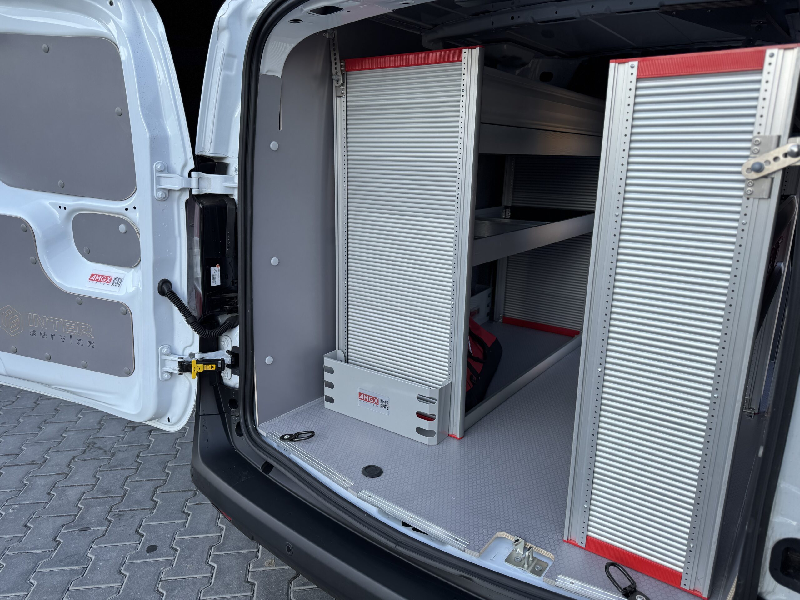Całość samochodu została specjalnie zeskanowana, dzięki czemu zabudowa idealnie dopasowuje się do kształtu pojazdu, a wolna przestrzeń z łatwością mieści 40 cm pojemniki Keeeper. Zabudowa Forda Transit Courier spełnia wszystkie wymagania firmy Inter Service. Mimo kompaktowych rozmiarów ten mały samochód świetnie sprawdza się w codziennej pracy, będąc niezawodnym narzędziem.