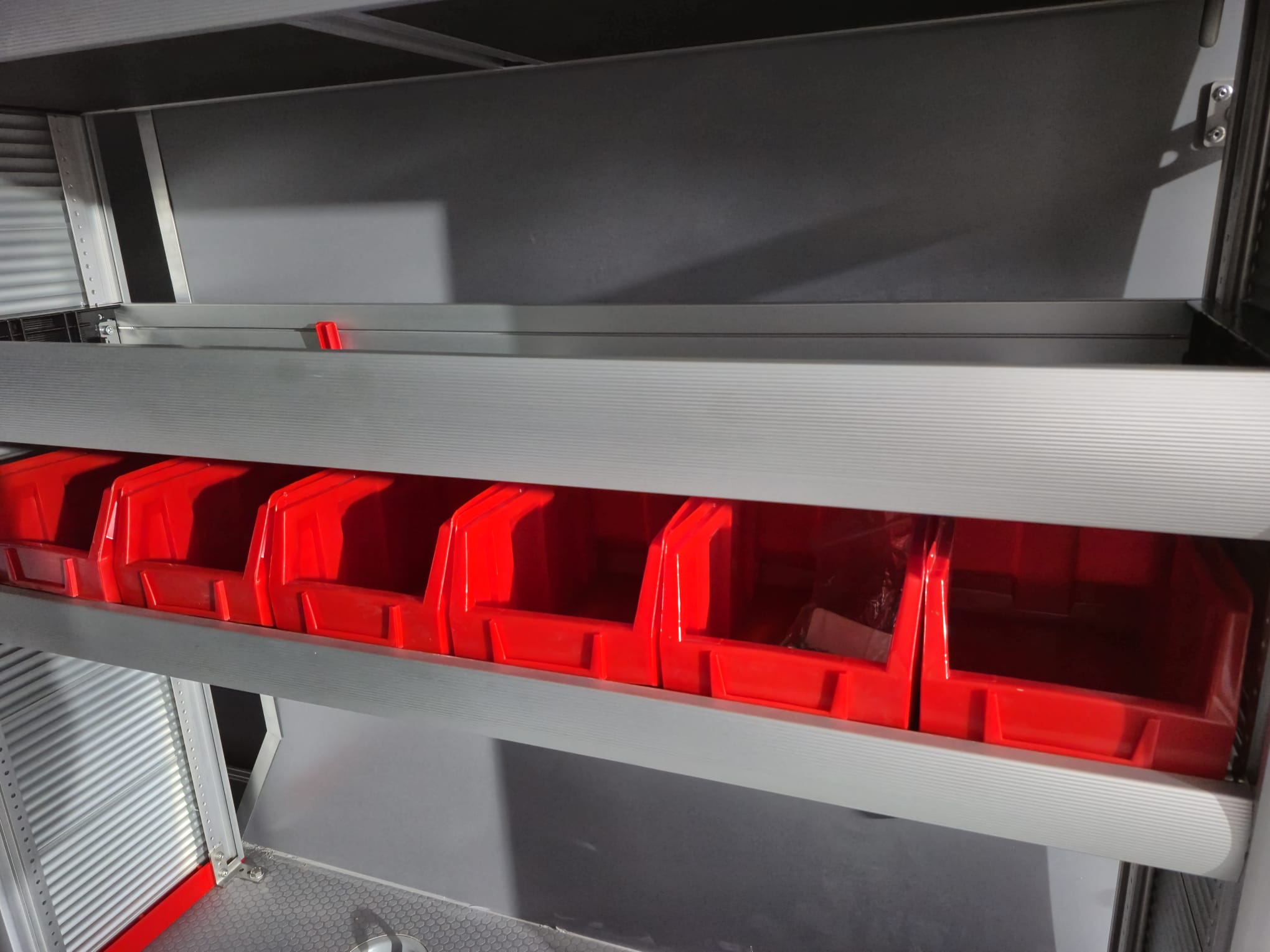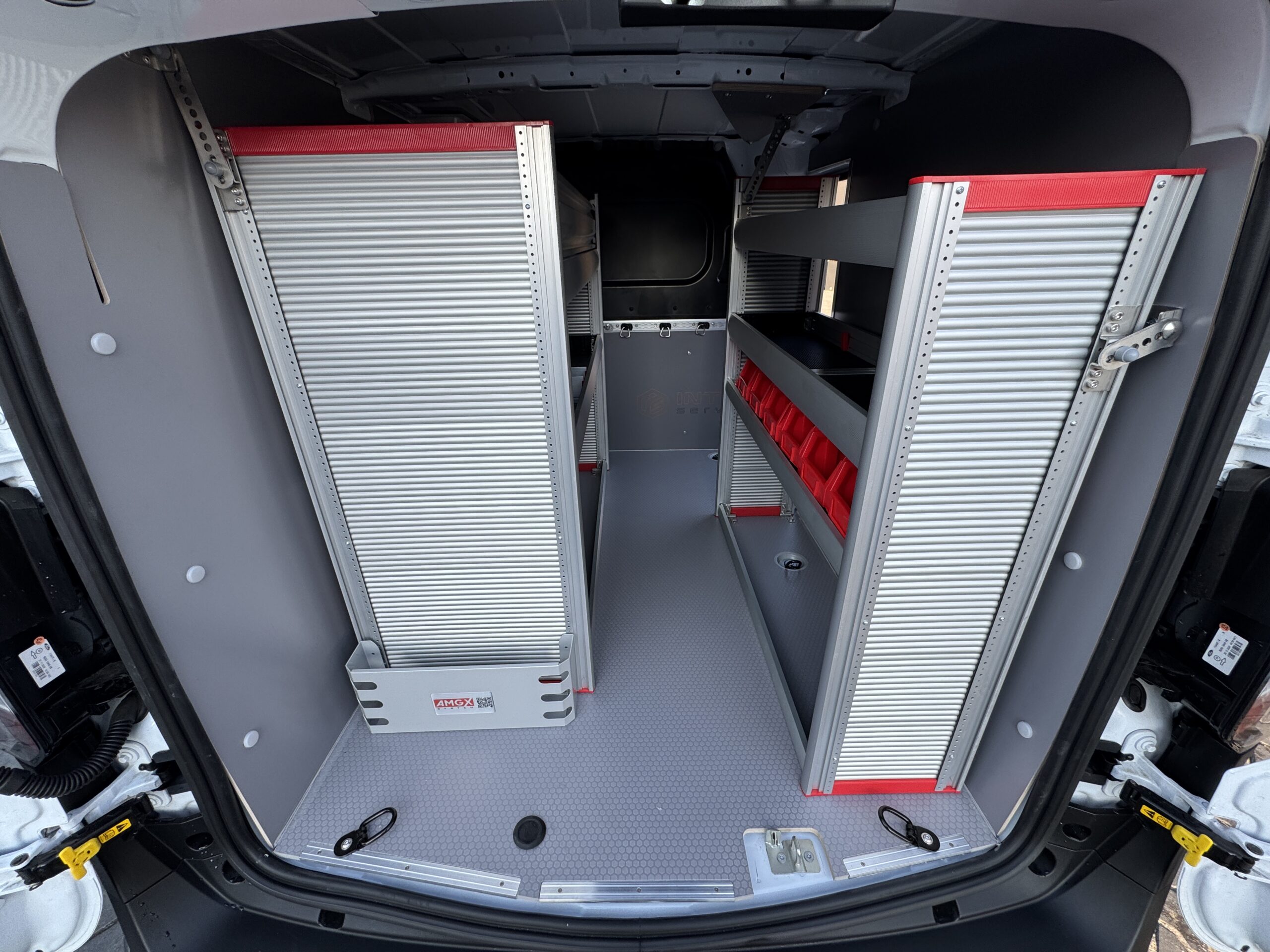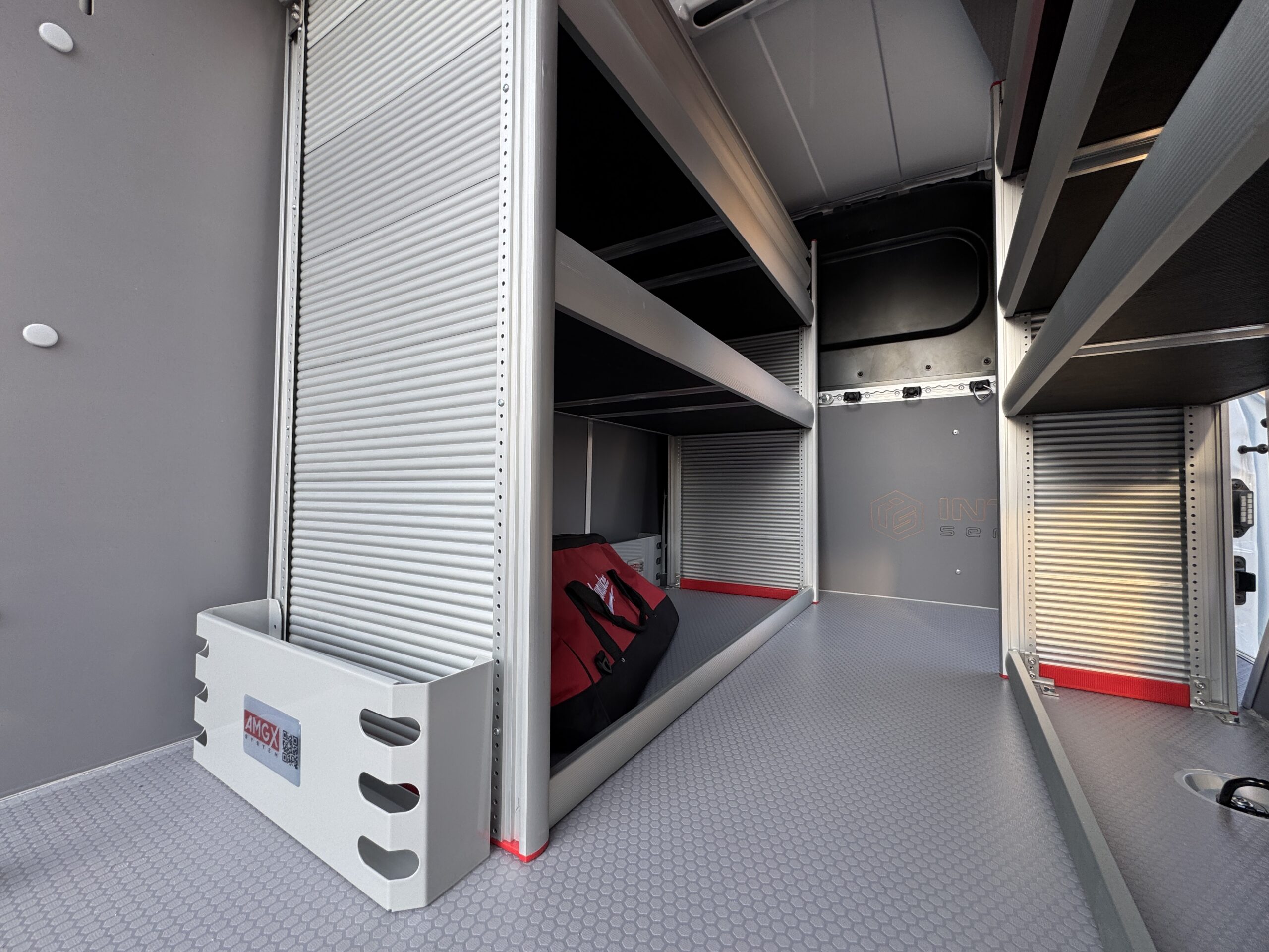 Zabudowa została wyposażona w regały renomowanej włoskiej firmy GEMA. Wykonane z wysokiej jakości aluminium, charakteryzują się modułową konstrukcją, co pozwala na elastyczne dostosowanie przestrzeni ładunkowej do indywidualnych potrzeb. Dzięki temu, mimo kompaktowych rozmiarów pojazdu, możliwe jest efektywne wykorzystanie dostępnej przestrzeni.