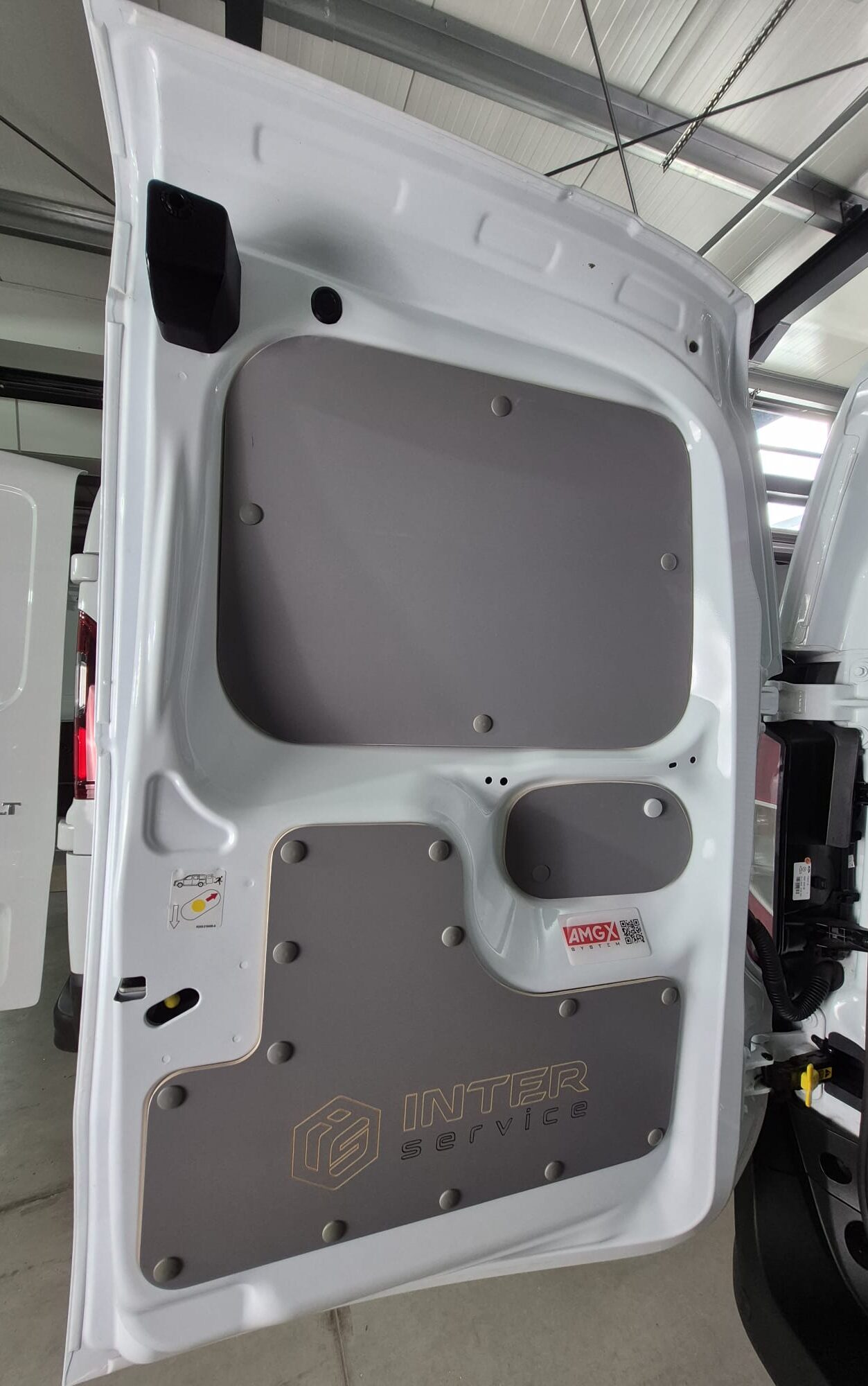 Wnętrze pojazdu zostało wyłożone obustronnie laminowaną sklejką o grubości 6,5 mm. Taki materiał zapewnia wysoki poziom ochrony, charakteryzując się odpornością na wilgoć oraz uszkodzenia mechaniczne. Laminowana powierzchnia skutecznie przeciwdziała powstawaniu trwałych śladów po uderzeniach, a jej wytrzymałość pomaga zapobiegać wgnieceniom i zarysowaniom. To idealne rozwiązanie dla użytkowników, którzy oczekują niezawodności w każdych warunkach.