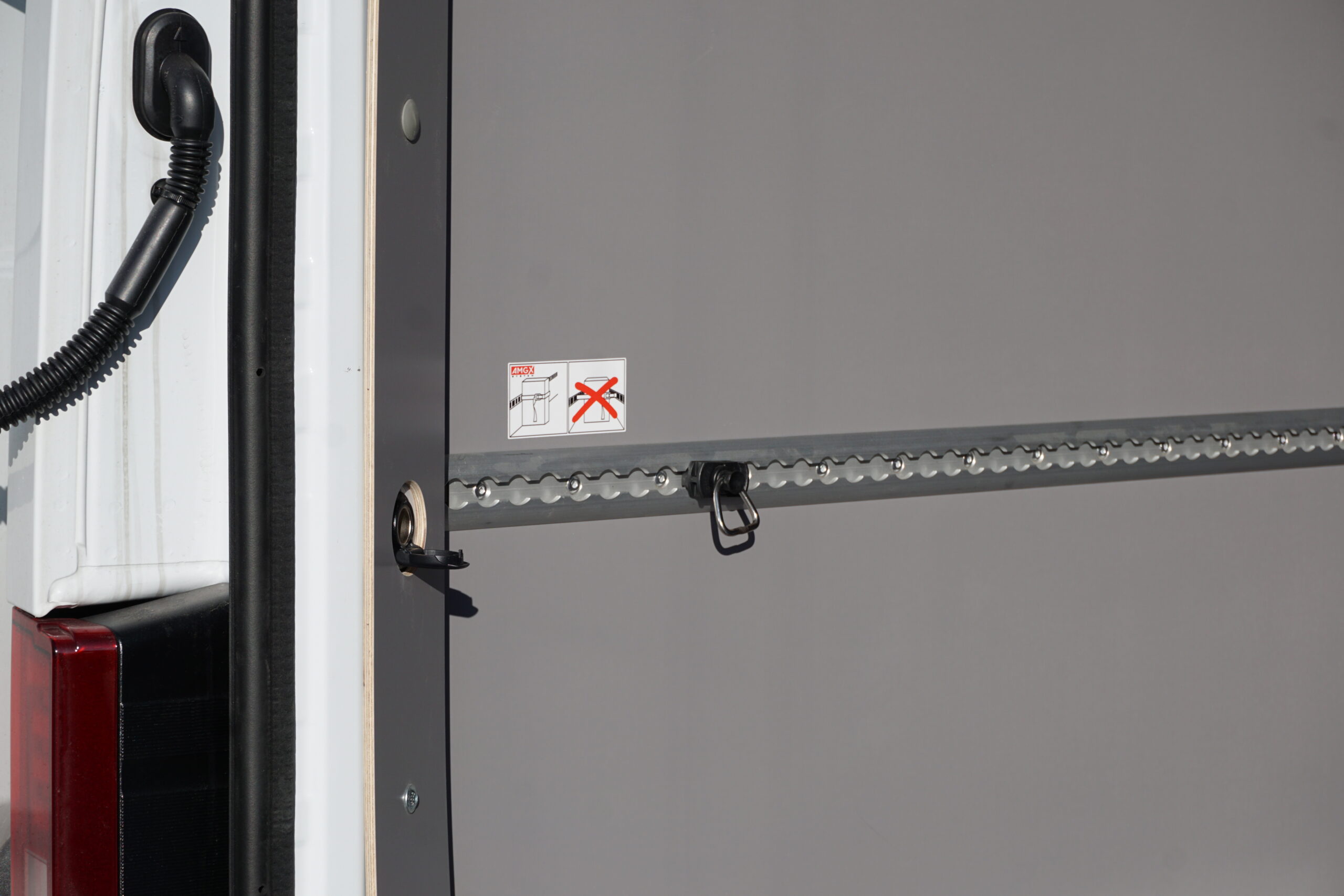 Ściana grodziowa została zamontowana na systemie listew AIRLINE, co umożliwia jej przesuwanie. Regulacja odbywa się za pomocą śrub z plastikowymi pokrętłami, które dają możliwość szybkiego i wygodnego dostosowanie przestrzeni ładunkowej.