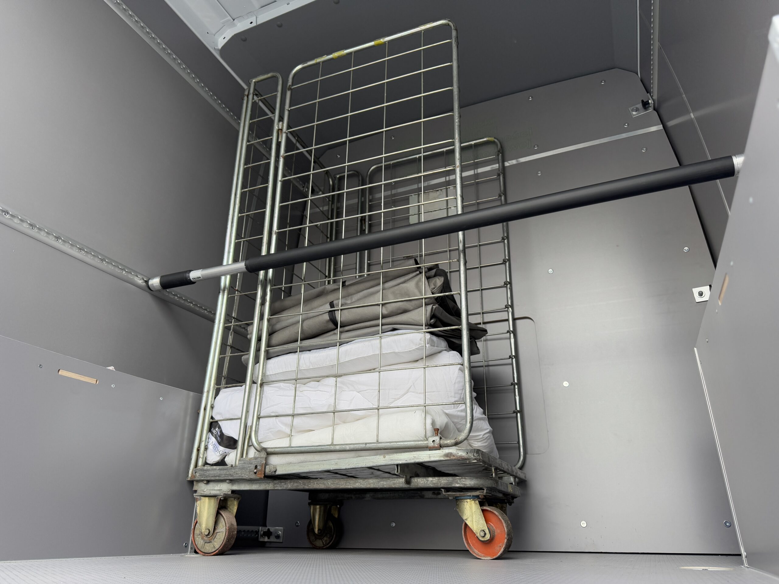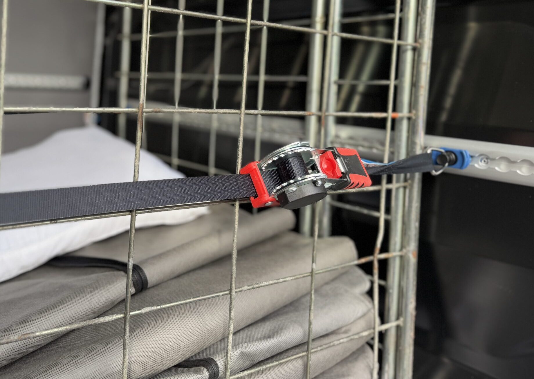 • W przedniej część zastosowaliśmy system automatycznych pasów Airline, które skutecznie zabezpieczają wózki transportowe przed przesuwaniem się w trakcie jazdy.