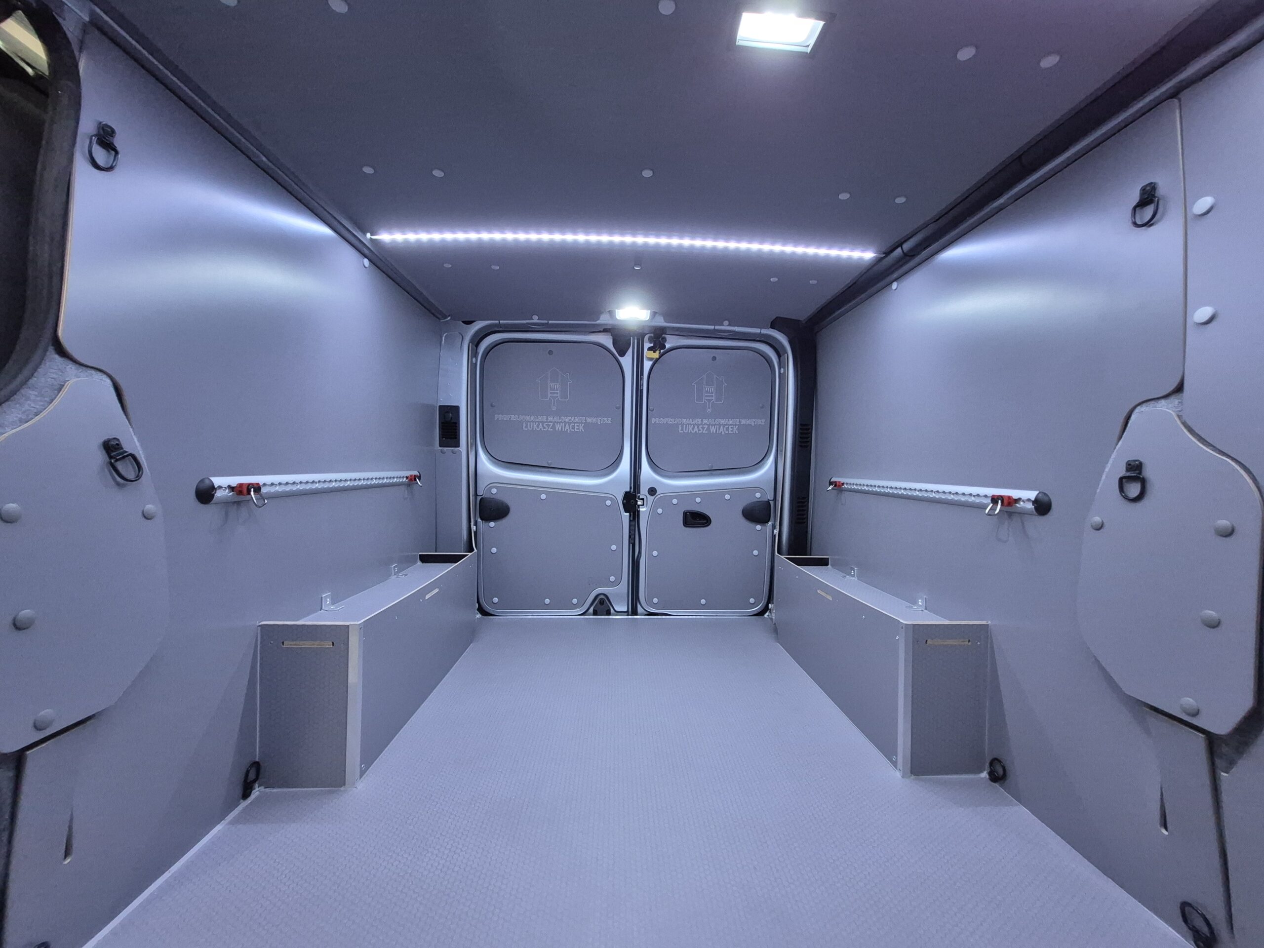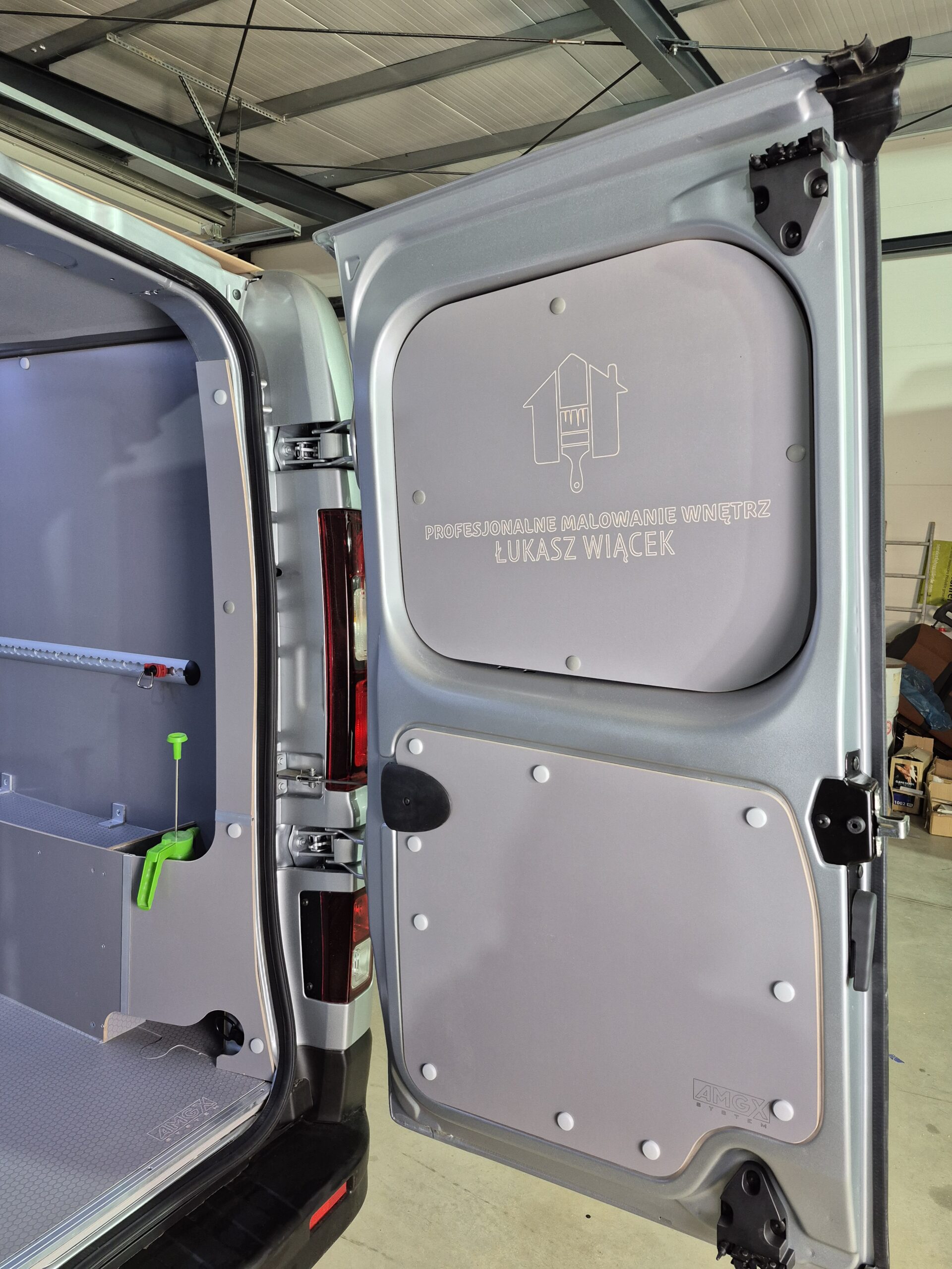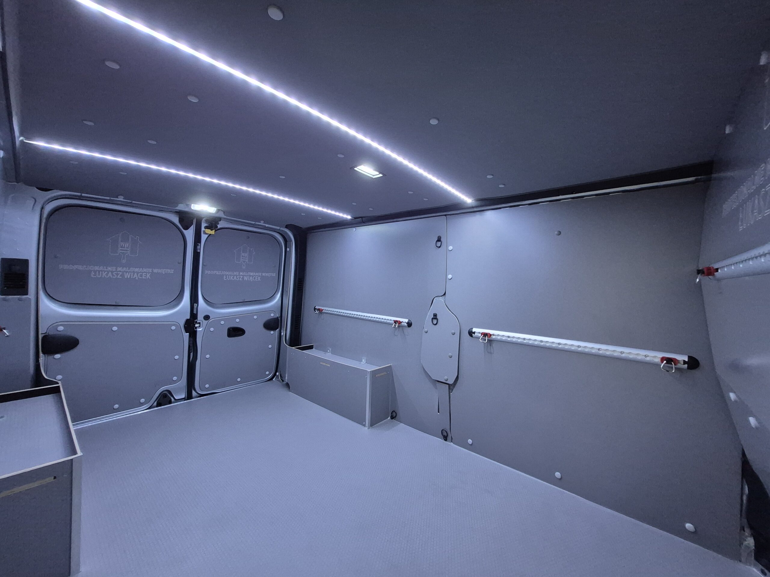 Zabudowę do Renault Trafic L2H1 przygotowaliśmy specjalnie dla firmy Profesjonalne Malowanie Wnętrz – Łukasz Wiącek, dostosowując ją do specyfiki pracy malarskiej. Postawiliśmy na trwałość, funkcjonalność i estetykę – wszystko, co ułatwia codzienne użytkowanie.