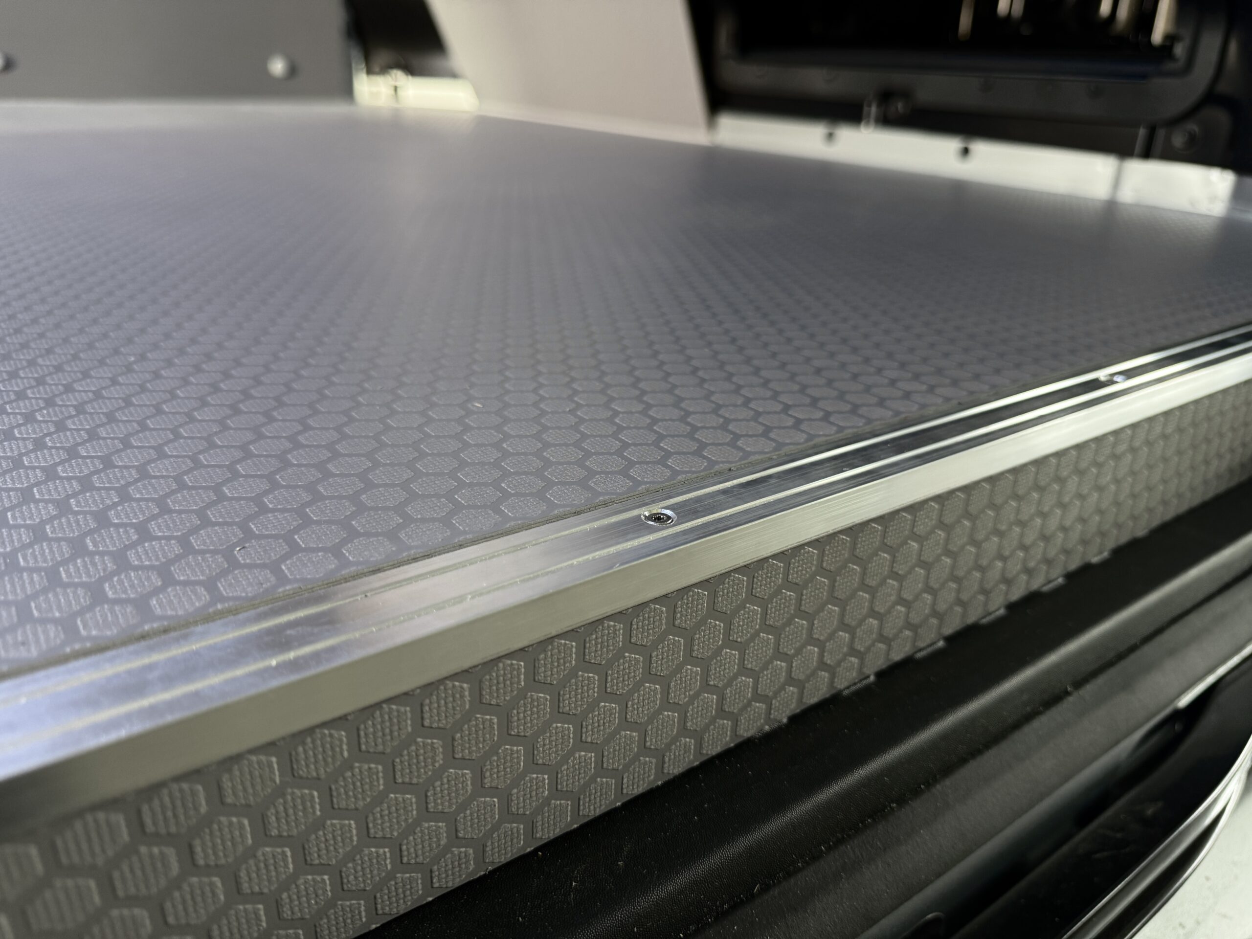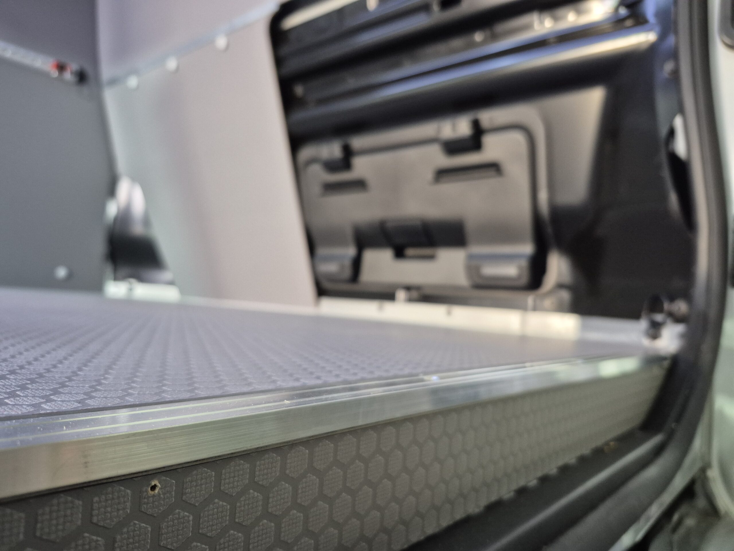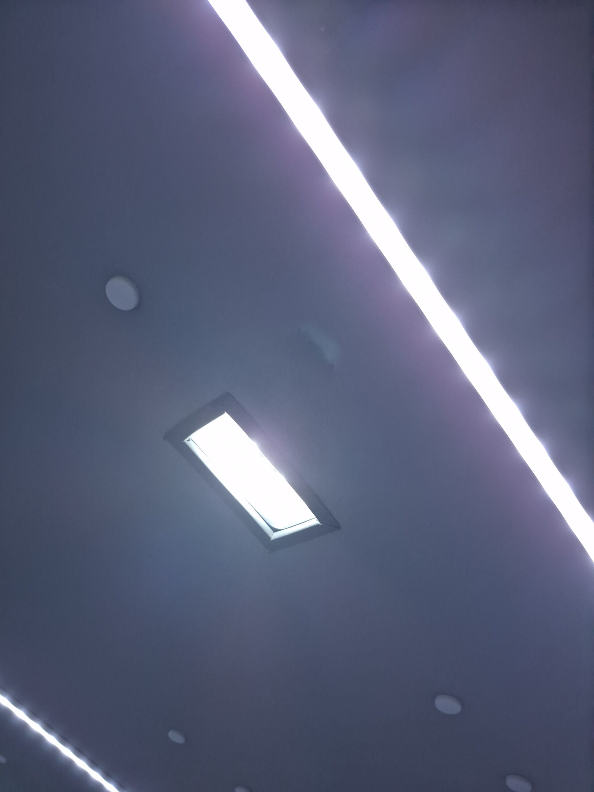 Sufit wykonaliśmy został z odpornego na uszkodzenia PCV i zaizolowany matą bitumiczną z folią aluminiową, co poprawia izolację termiczną i odporność na wilgoć. Dwa rzędy LED-ów zapewniają równomierne oświetlenie. Otwór na lampkę zabezpieczyliśmy uszczelką, zwiększając trwałość i ochronę przed wilgocią.