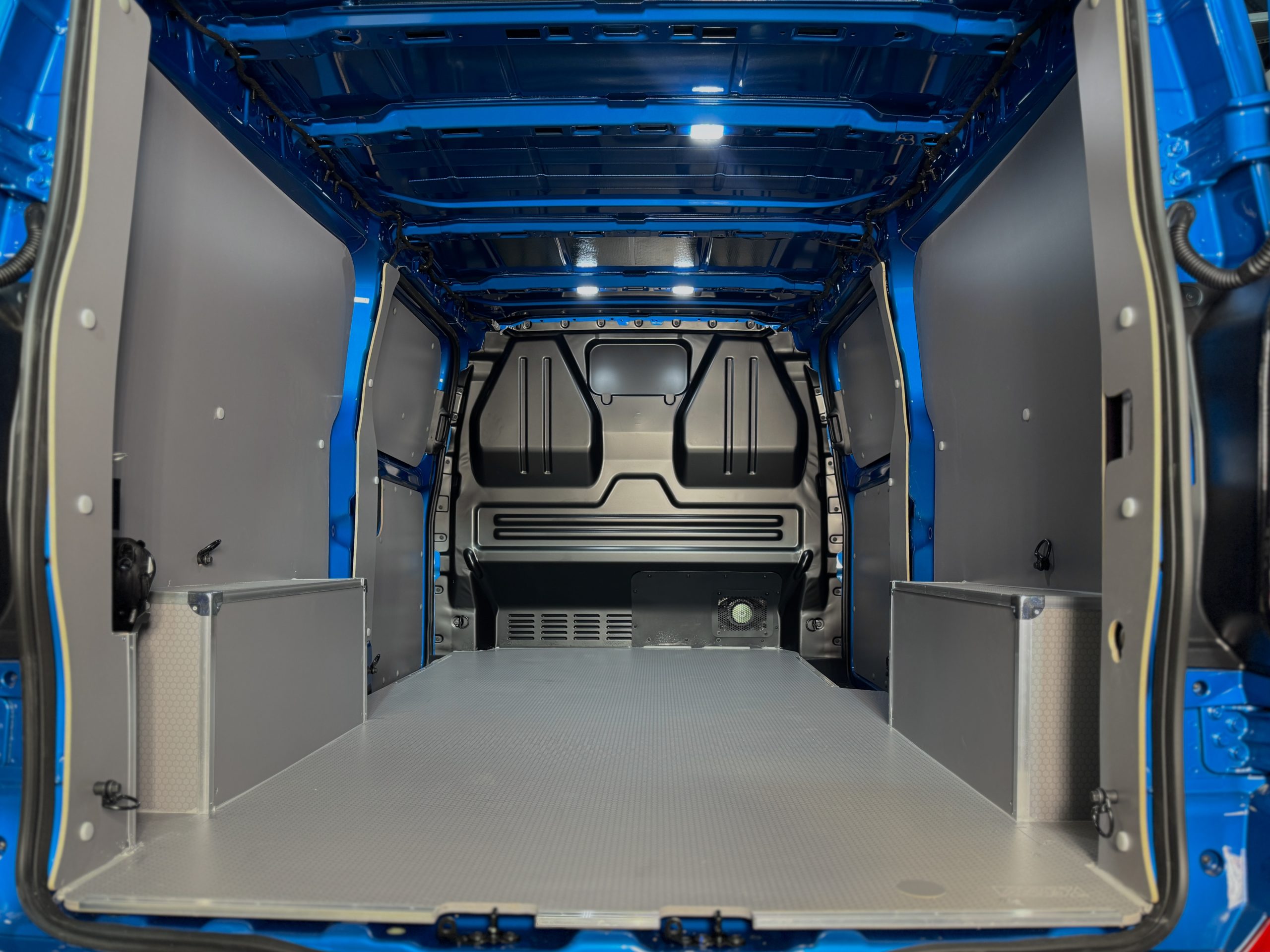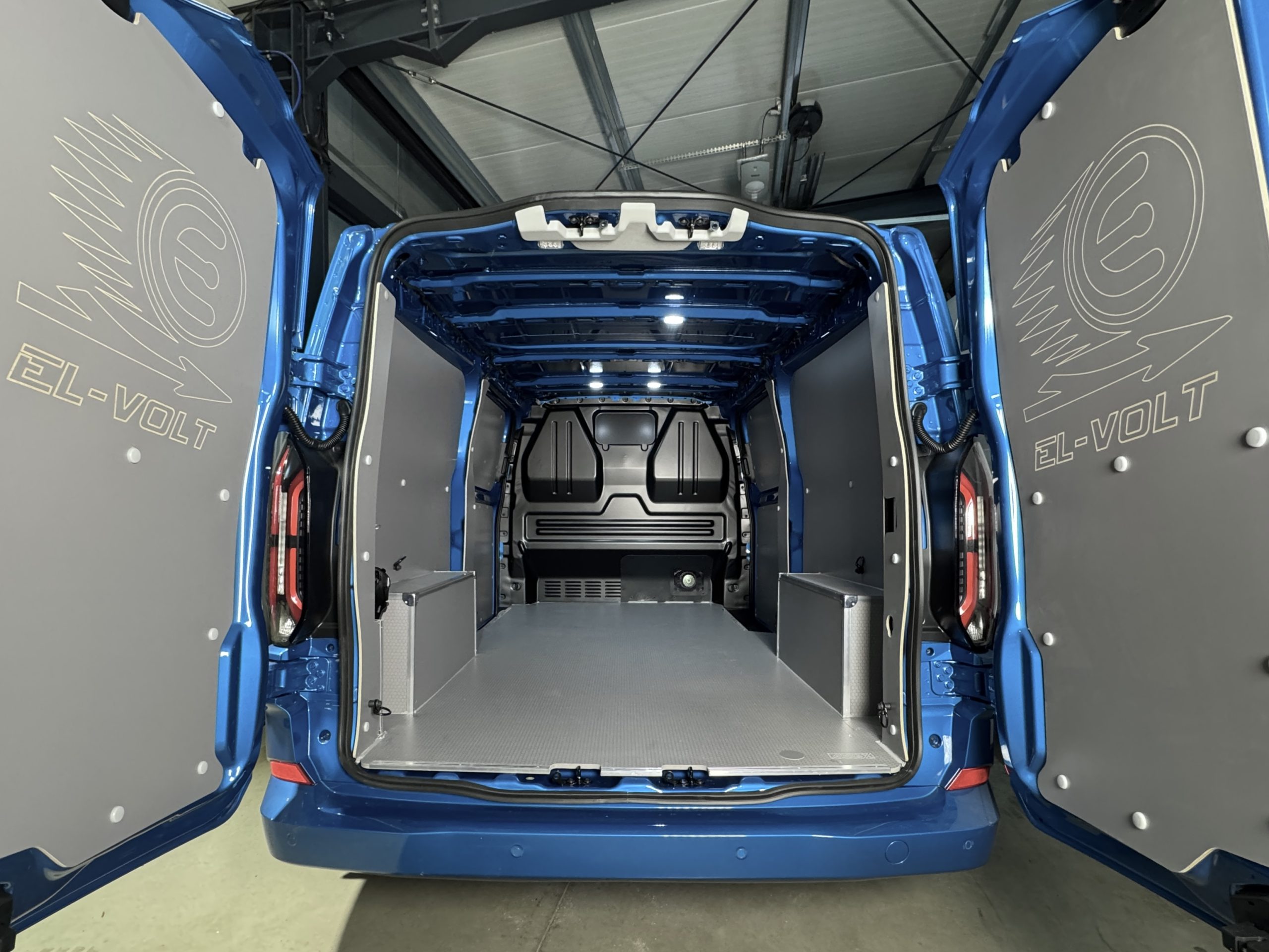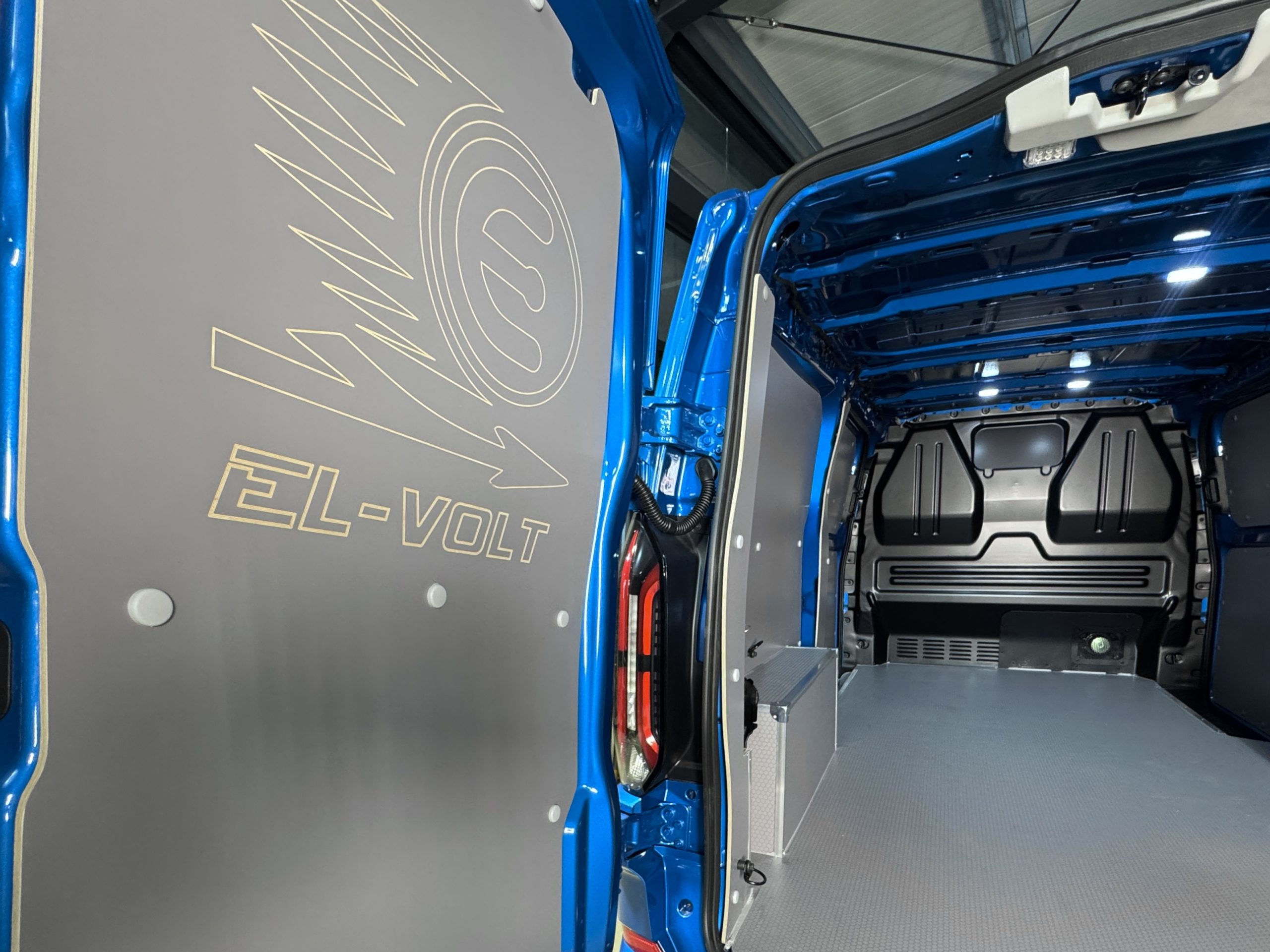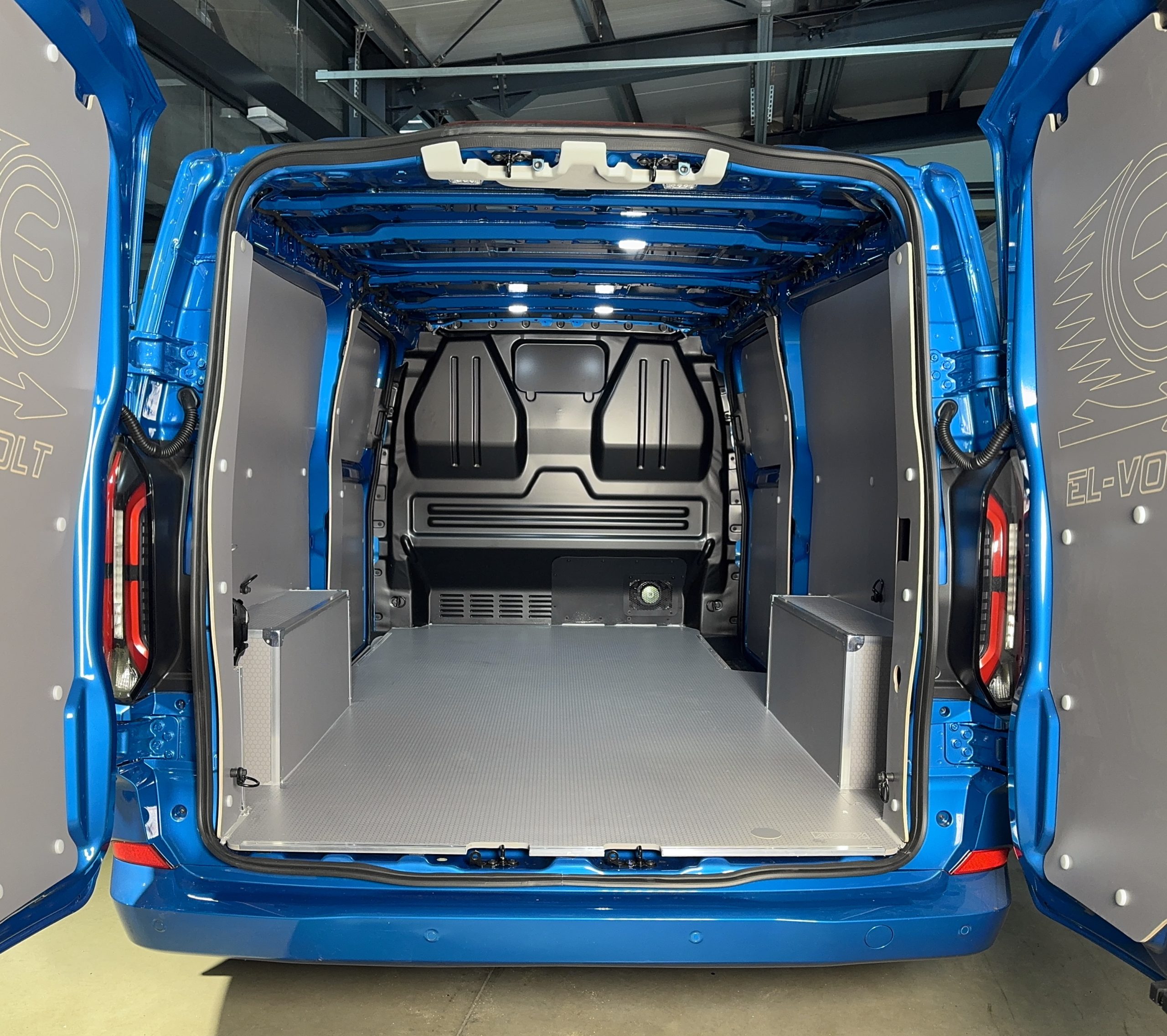 Dla firmy EL-VOLT przygotowaliśmy funkcjonalną i trwałą zabudowę do samochodu Ford Transit Custom L2H1. Podłoga została wykonana z wodoodpornej sklejki typu HEXA o grubości 12 mm, co zapewnia łatwe czyszczenie i długą żywotność.