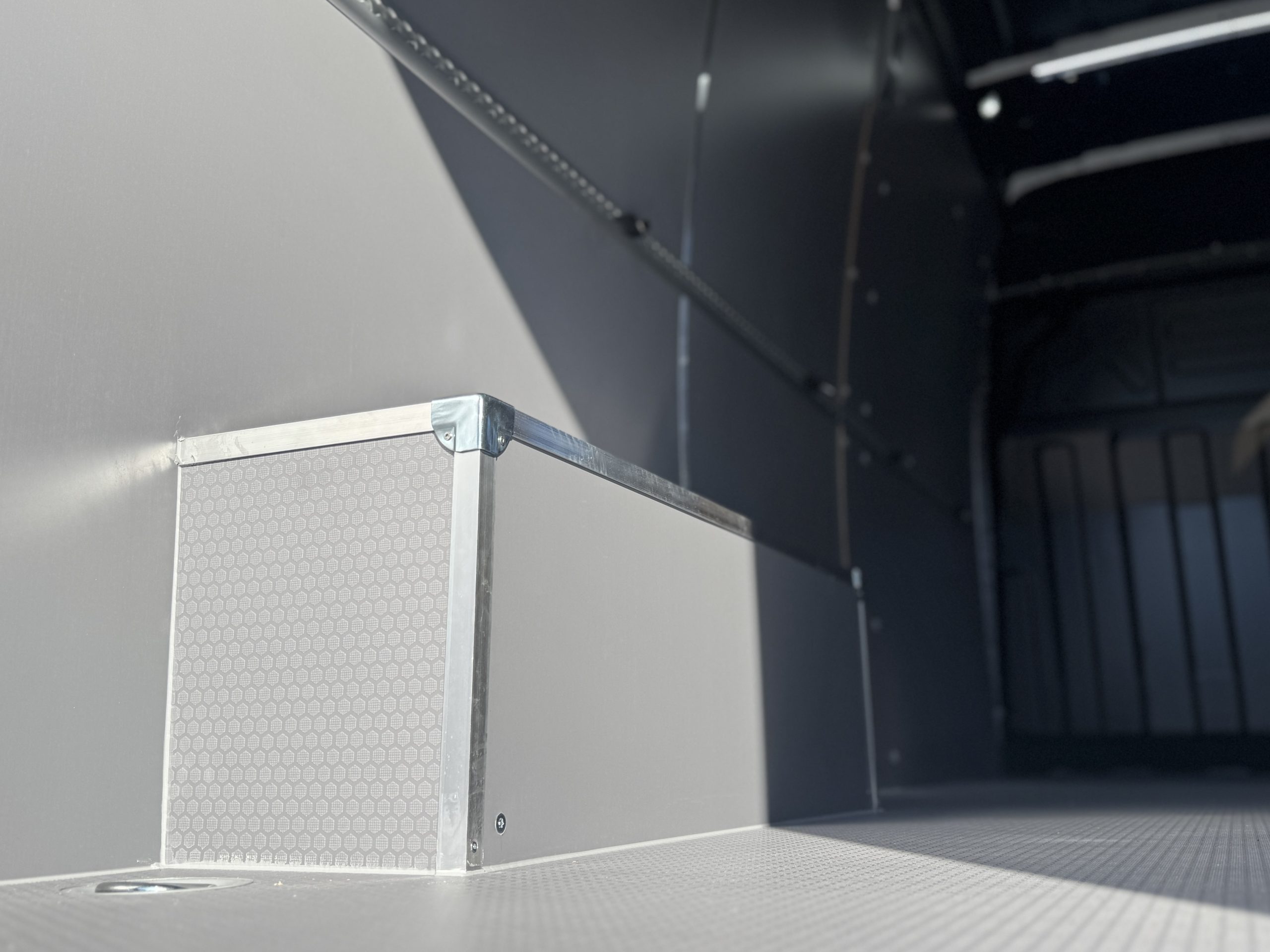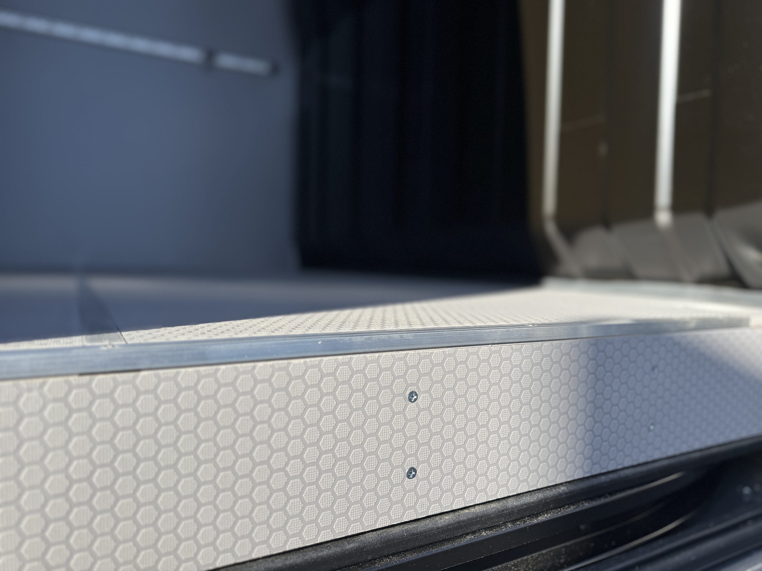 • Próg drzwi tylnych powiększyliśmy, dzięki czemu zwiększyliśmy powierzchnię użytkową przestrzeni ładunkowej – wykonany z sklejki HEXA.
