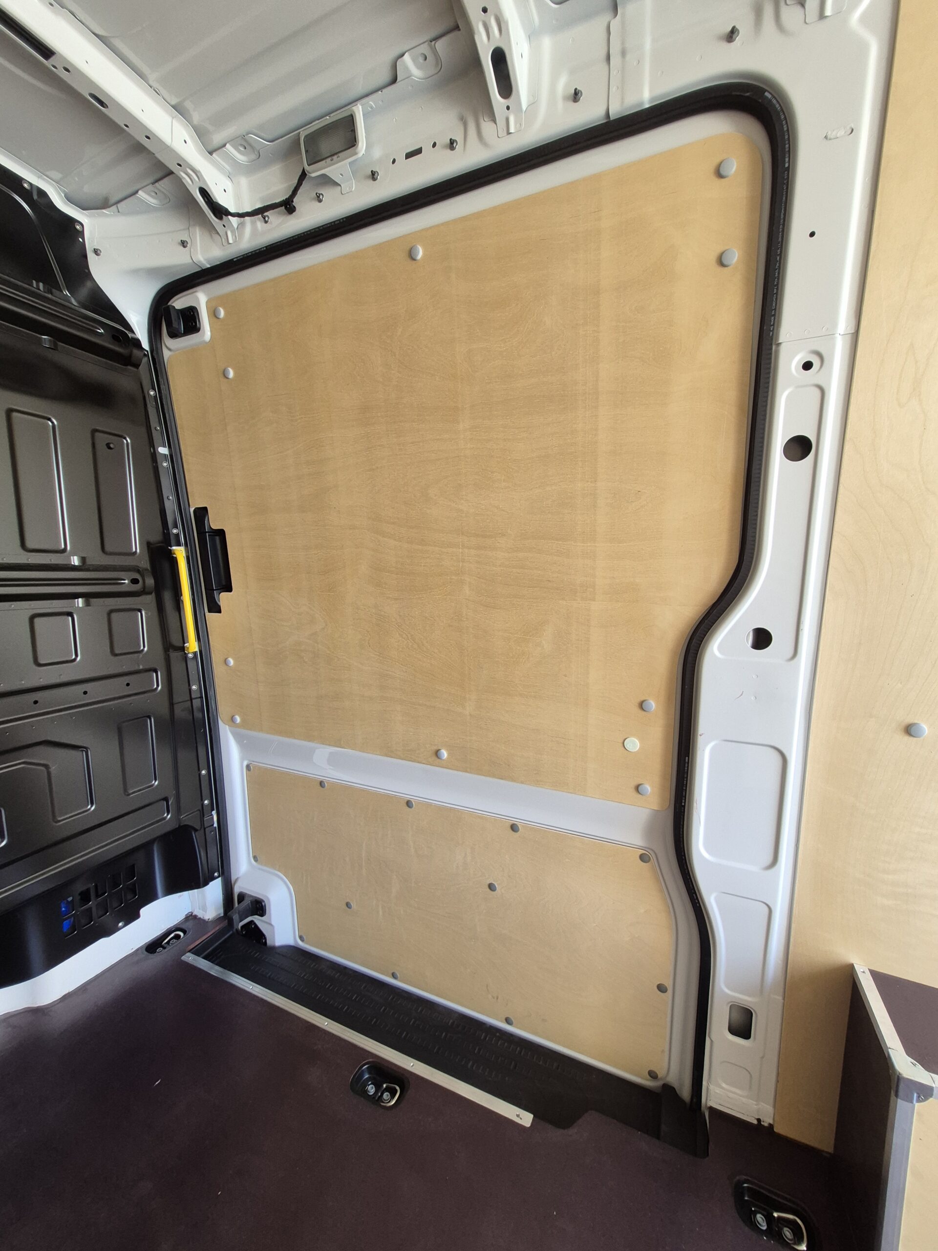 Dla tej wersji Craftera wykonaliśmy skan wnętrza, aby zaprojektować nowe panele drzwi bocznych. Zabudowa składa się z dwóch elementów — górny to duży, solidny panel obejmujący niemal całą powierzchnię drzwi, zapewniający dodatkową ochronę i stabilność.