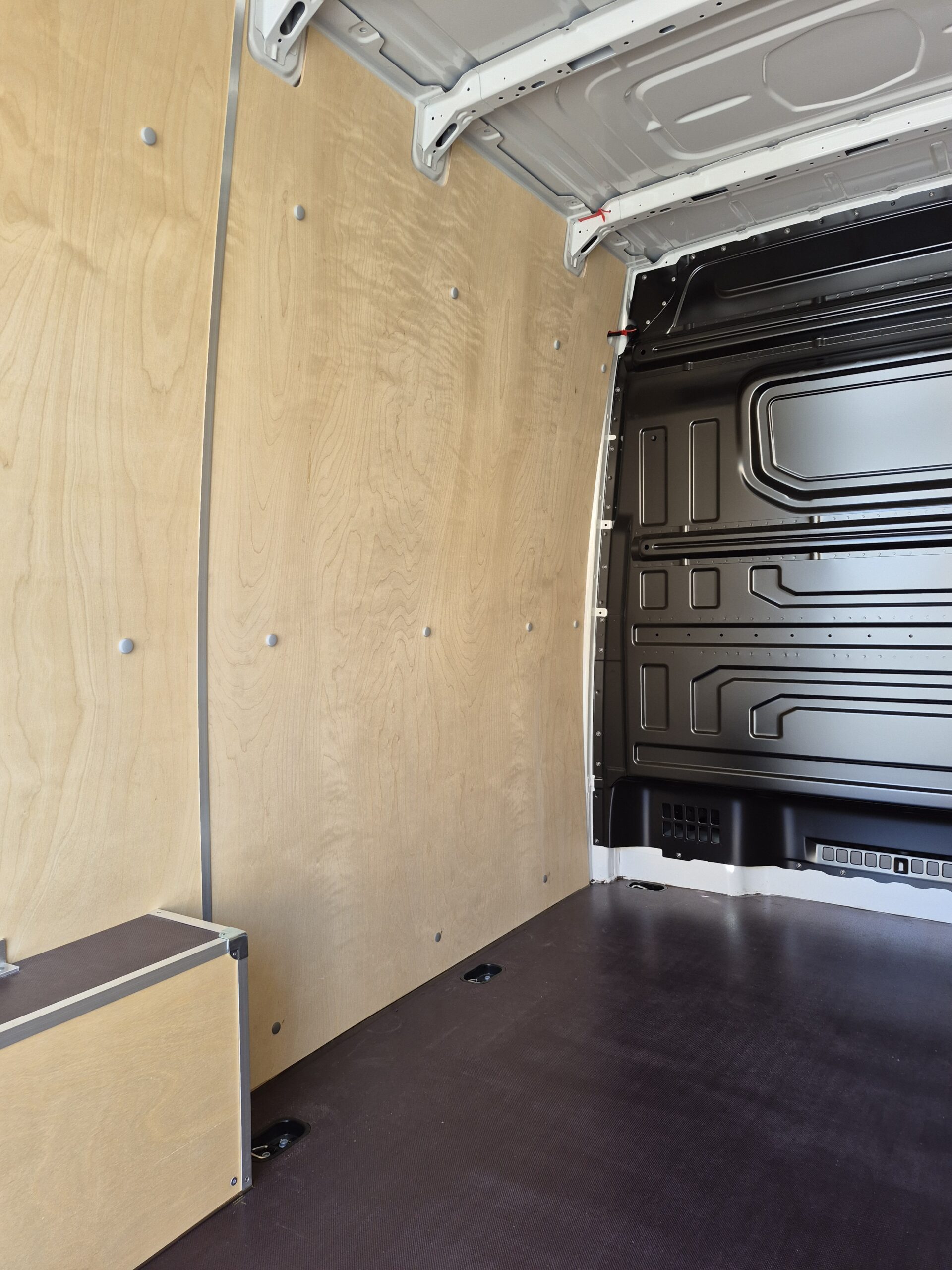 W AMGX precyzyjnie dopasowujemy zabudowy do każdego modelu. Tym razem przygotowaliśmy zabudowę do nowego Volkswagena Craftera L2H2, zachowując naszą standardową konfigurację — sklejka liściasta 6,5 mm na ścianach oraz podłoga 12 mm.