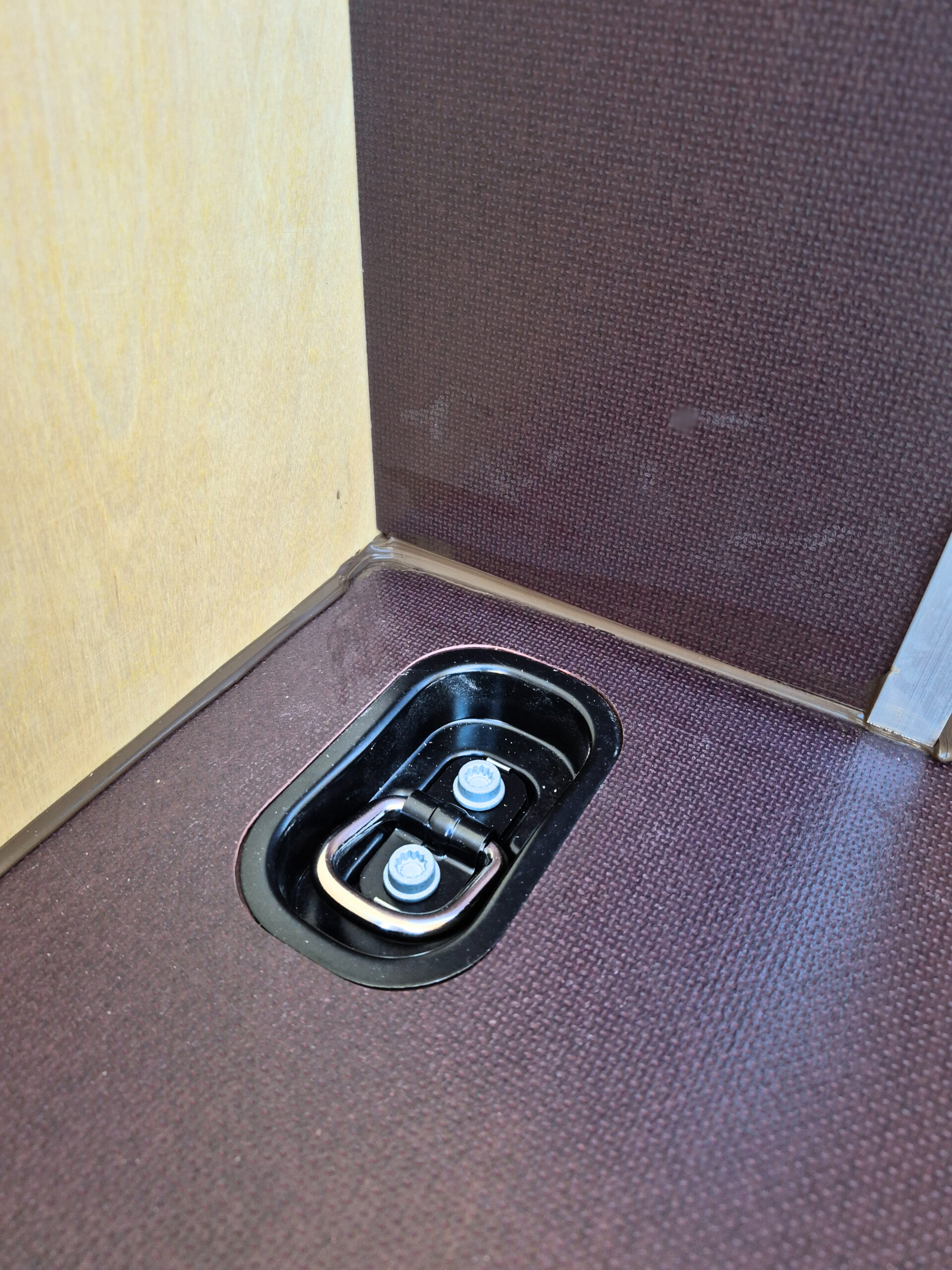 - Podłoga została wykończona aluminiowymi listwami progowymi zarówno przy drzwiach bocznych, jak i tylnych.