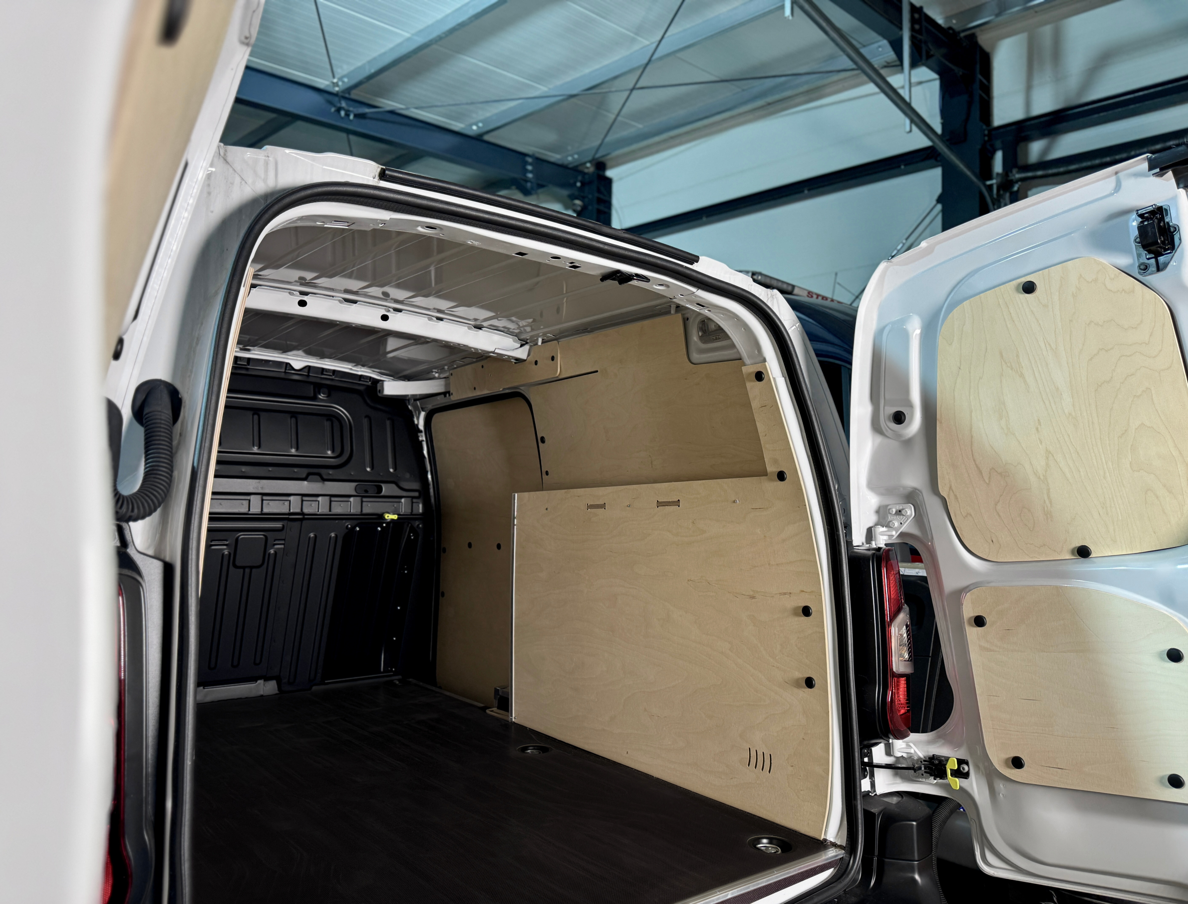 Zabudowa do Peugeot Partner Long dla branży instalacyjnej. Rozwiązanie zapewnia trwałość, funkcjonalność oraz optymalne wykorzystanie przestrzeni roboczej.