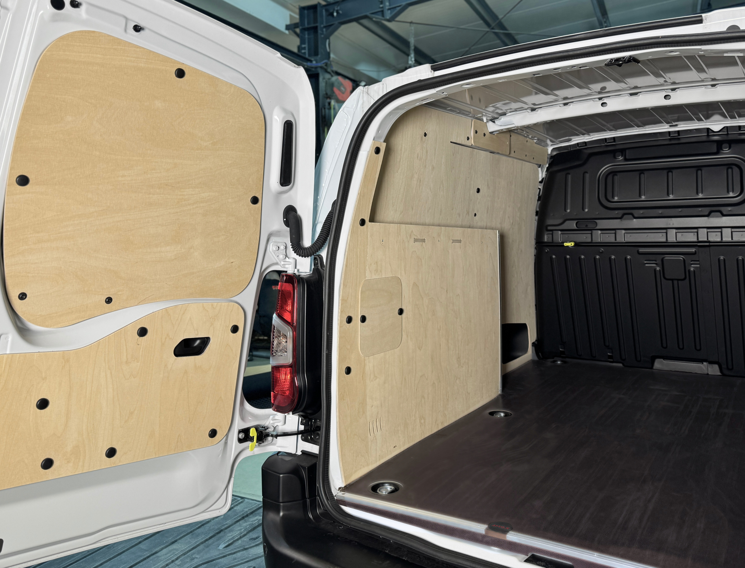 Zabezpieczone sklejką liściastą o grubości 6,5 mm. Zwiększa trwałość przestrzeni ładunkowej.