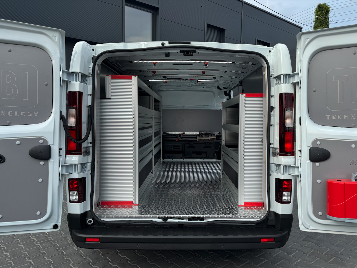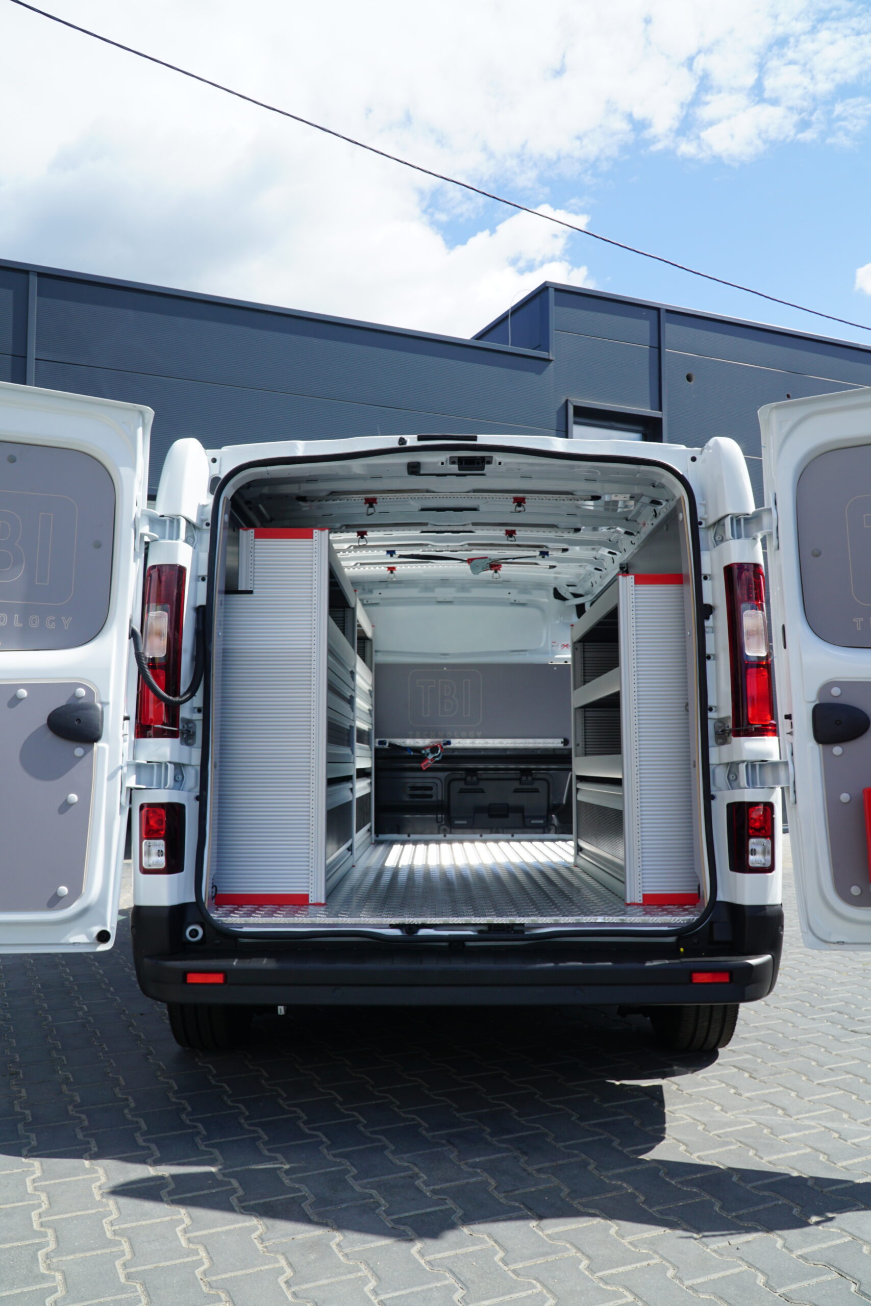 Zrealizowana zabudowa Renault Trafic L2H1 dla firmy TBI z Raciborza to funkcjonalne i trwałe rozwiązanie, dostosowane do intensywnej pracy serwisowej.
