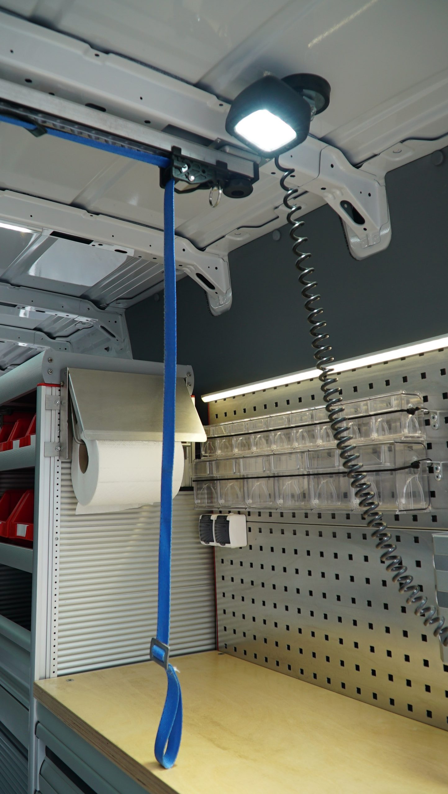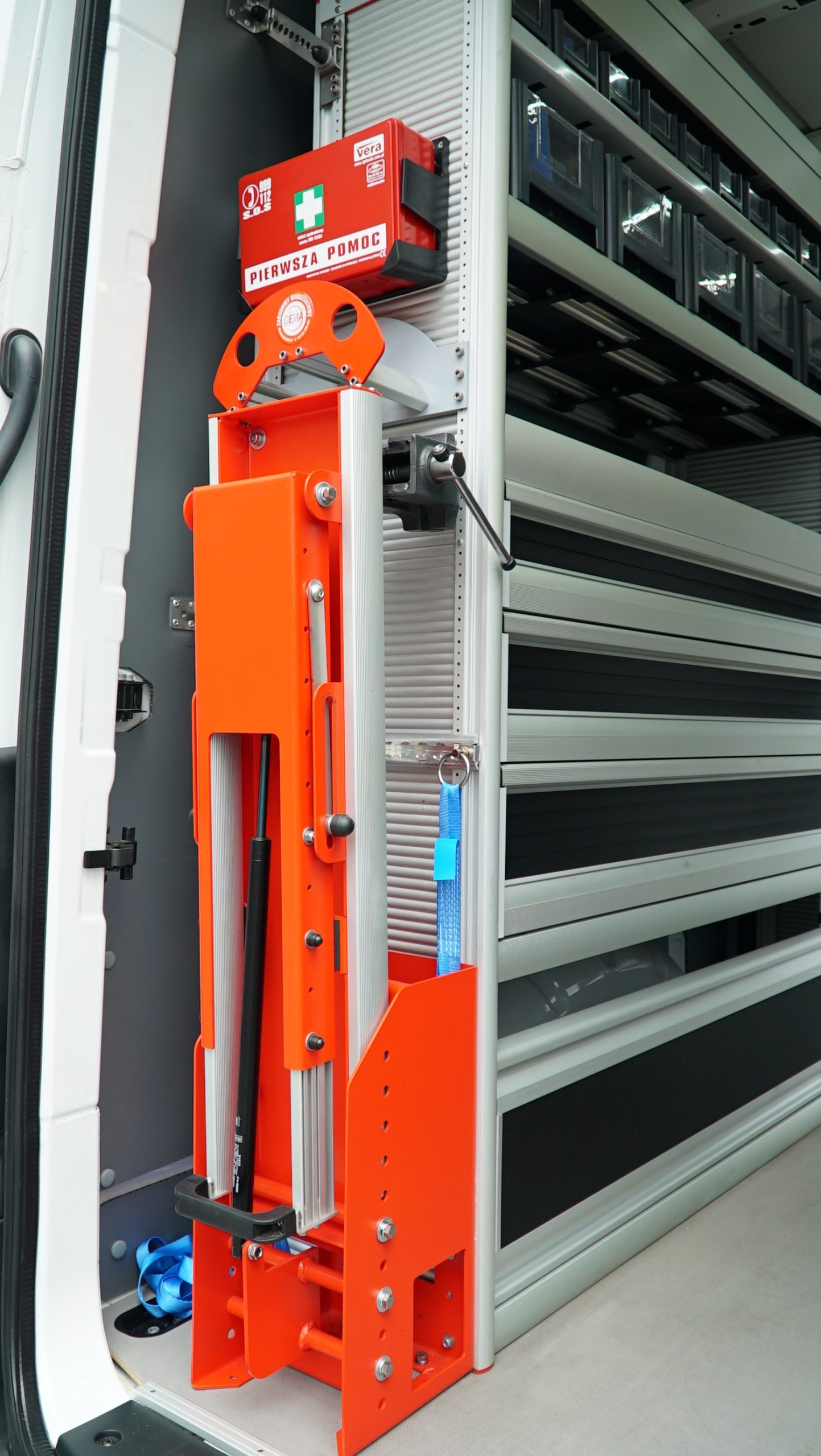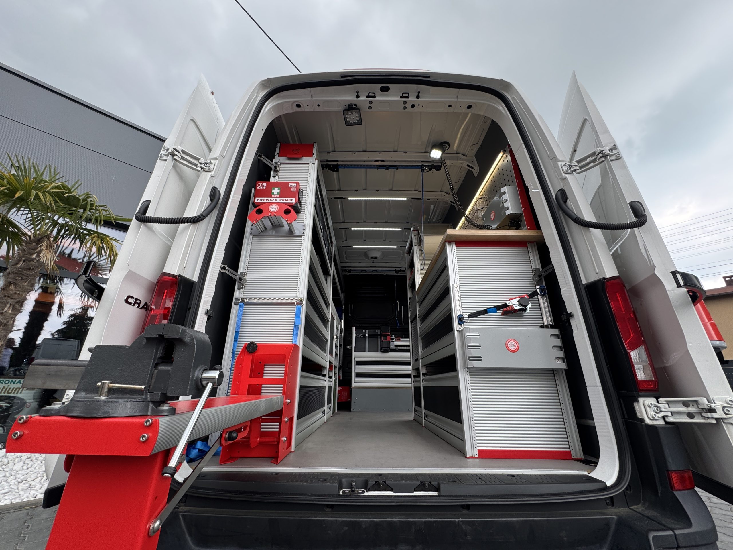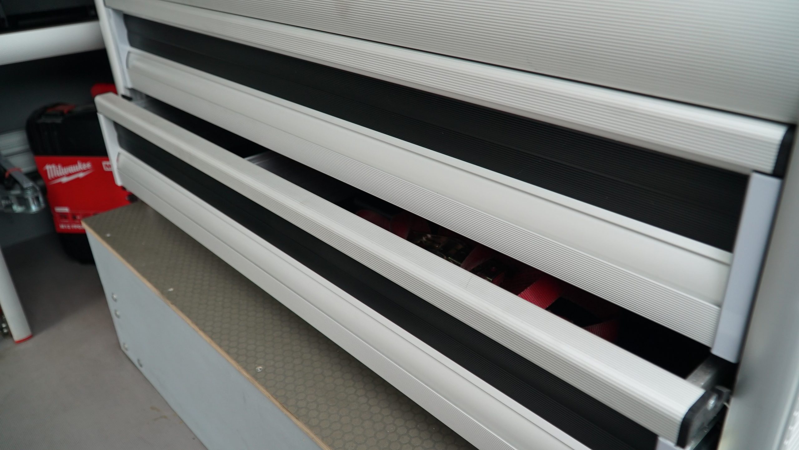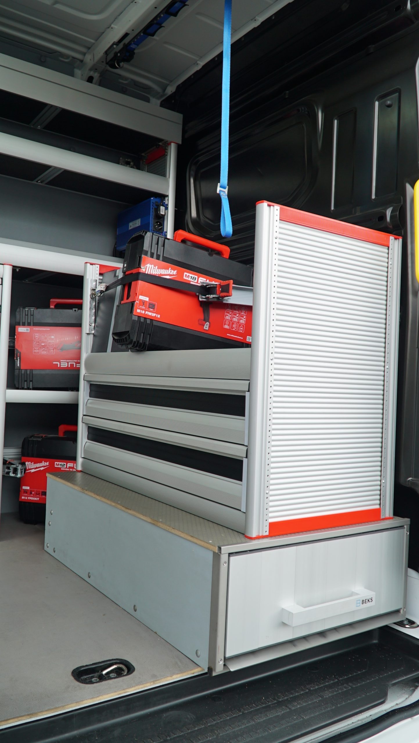 Zabudowa GEMA® została zaprojektowana tak, aby w pełni wykorzystać przestrzeń wewnątrz pojazdu. Regulowane półki i szuflady pozwalają na dowolne konfigurowanie wnętrza, a solidne separatory chronią narzędzia przed uszkodzeniem podczas transportu.